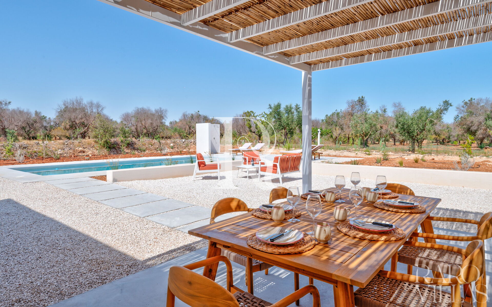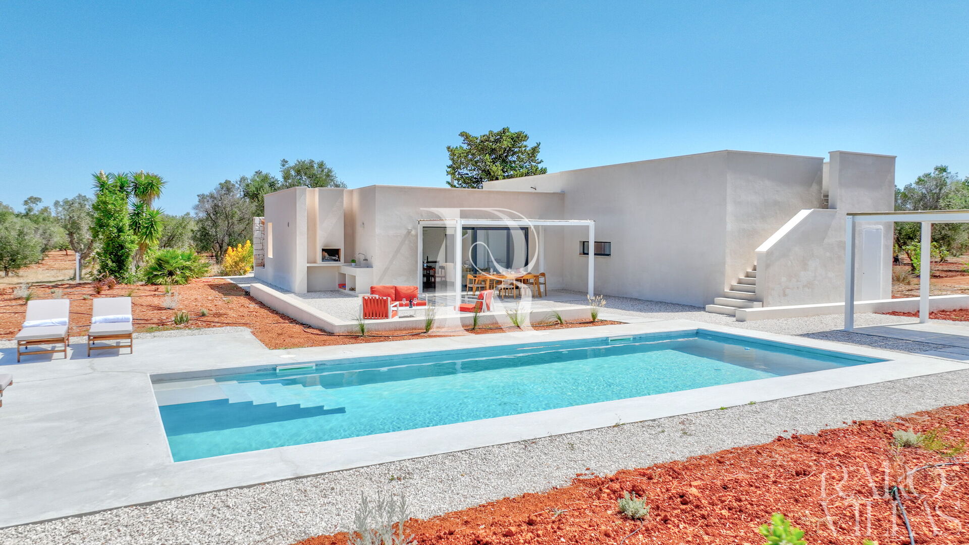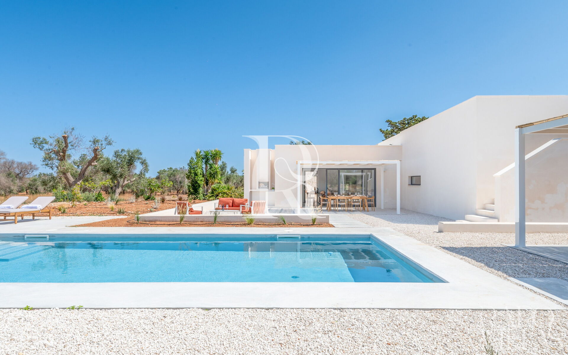 - Una villa dallo stile mediterraneo e contemporaneo con piscina privata in un contesto tranquillo di campagna, vicino al mare.