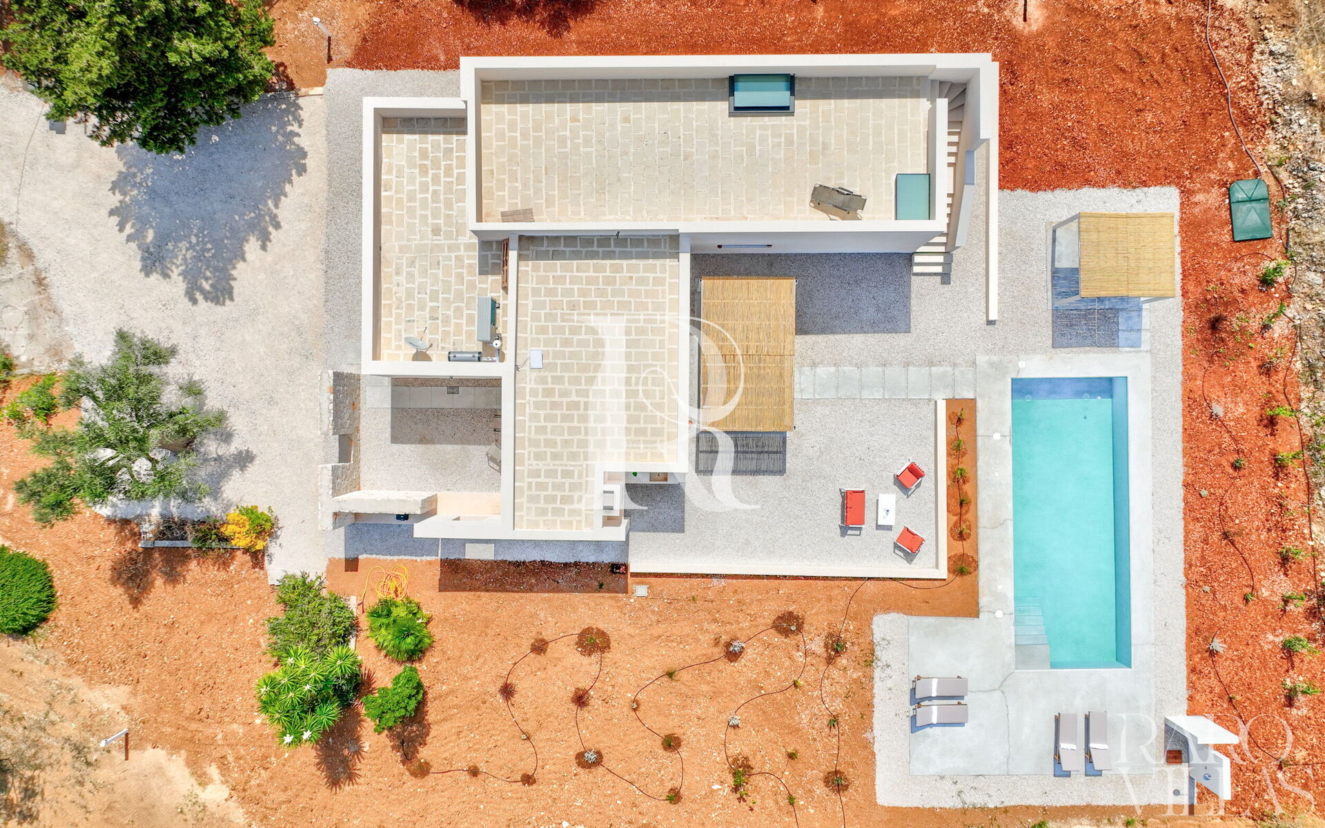 Patio 1 (18,5 m²): Attrezzato con un tavolo da pranzo per 8 persone, è il luogo ideale per le cene al fresco.Patio 2 (26,1 m²): Arredato con mobili da giardino, è perfetto per un caffè mattutino o un aperitivo serale.