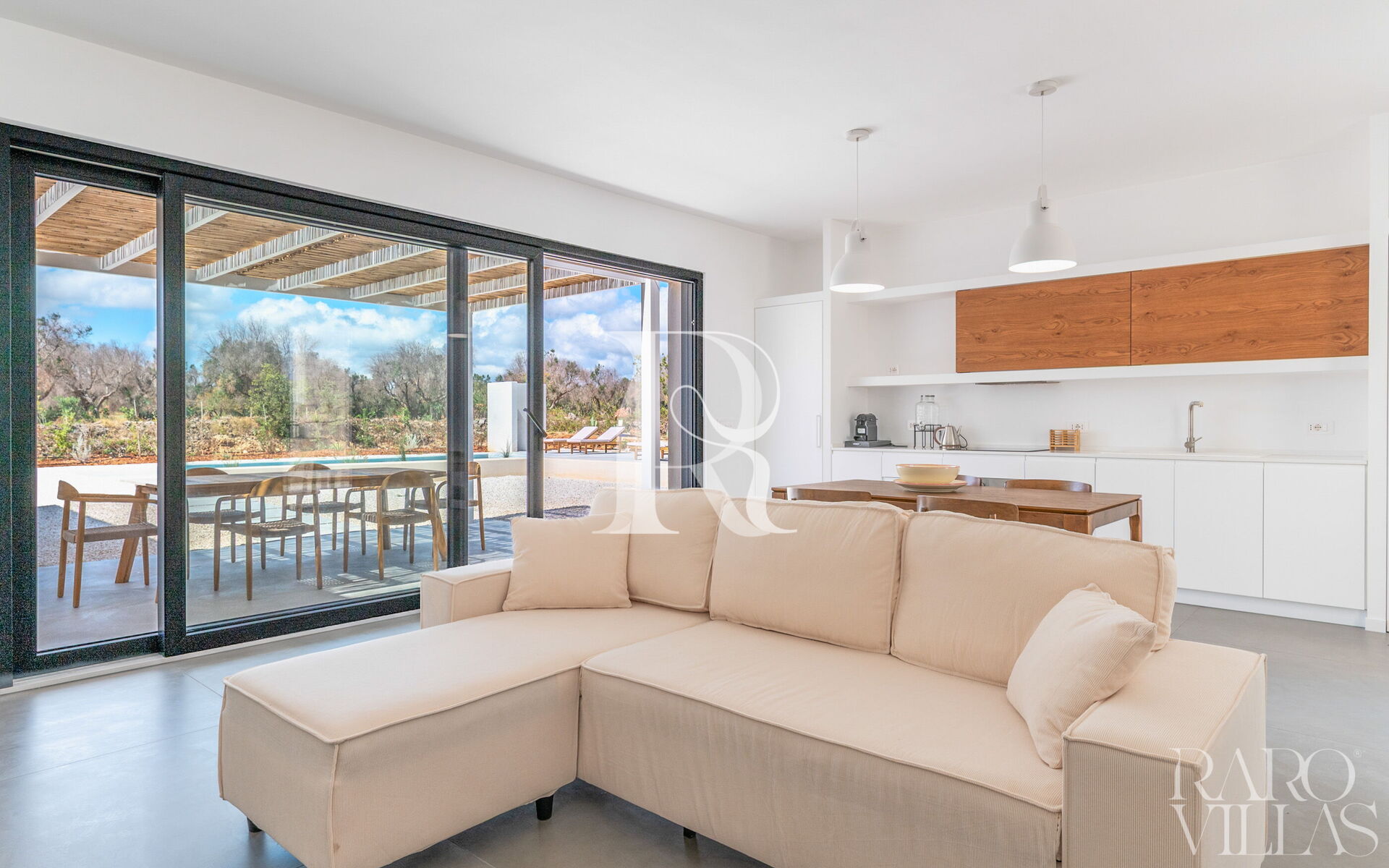 Immagina la tua vacanza ideale in Puglia a Villa Casa Vita Bella, una moderna oasi di lusso e relax immersa nello stile mediterraneo. Questa villa, caratterizzata da colori bianchi luminosi e linee architettoniche semplici e squadrate, è progettata per massimizzare la luce naturale grazie alle sue grandi vetrate, creando un'atmosfera aerea e serena.Gli Interni: Design e Comfort Moderno