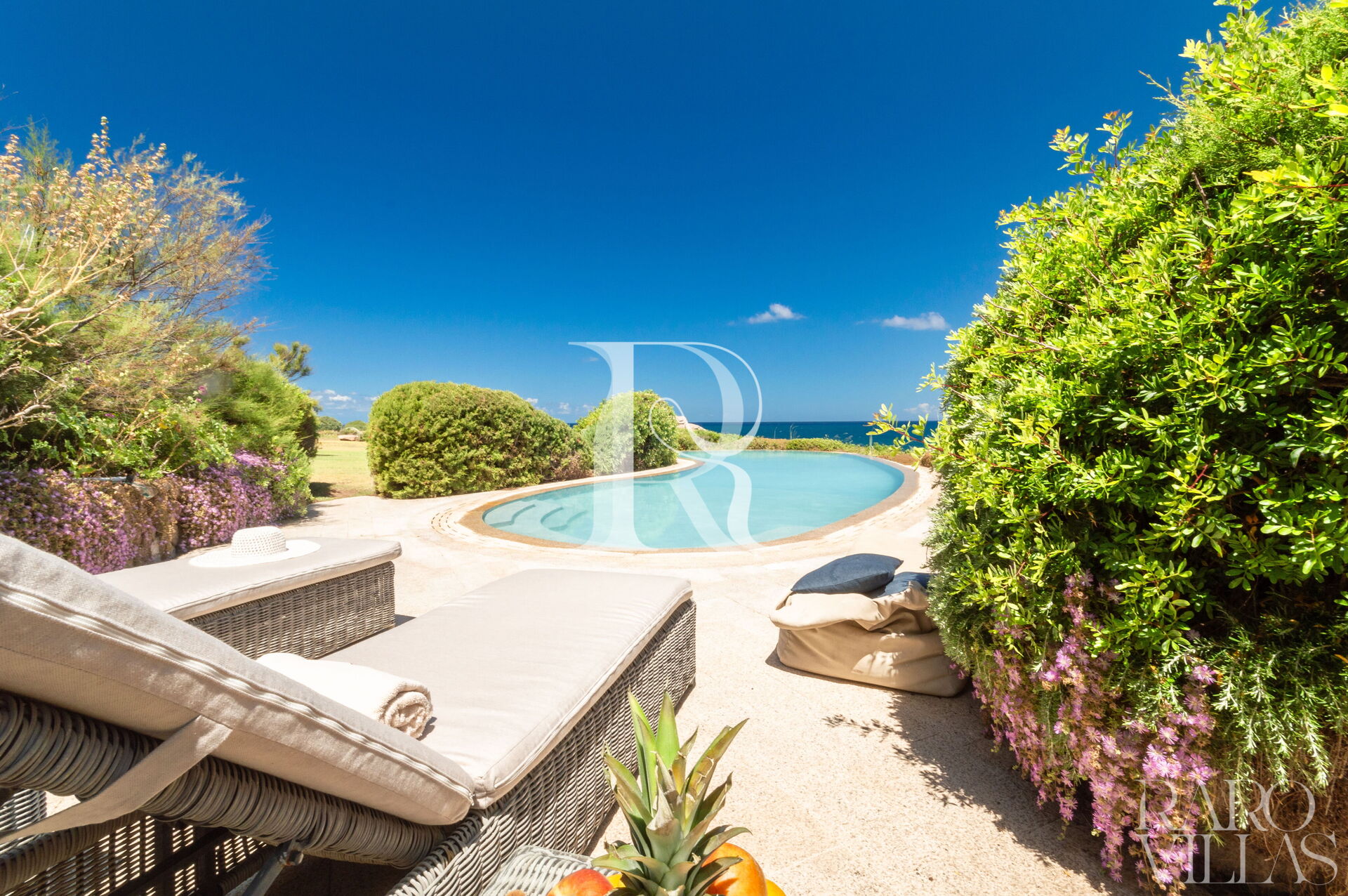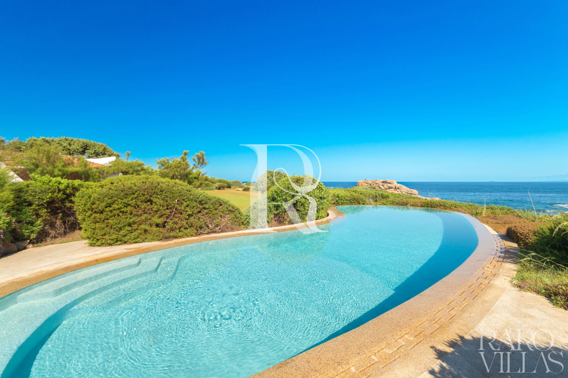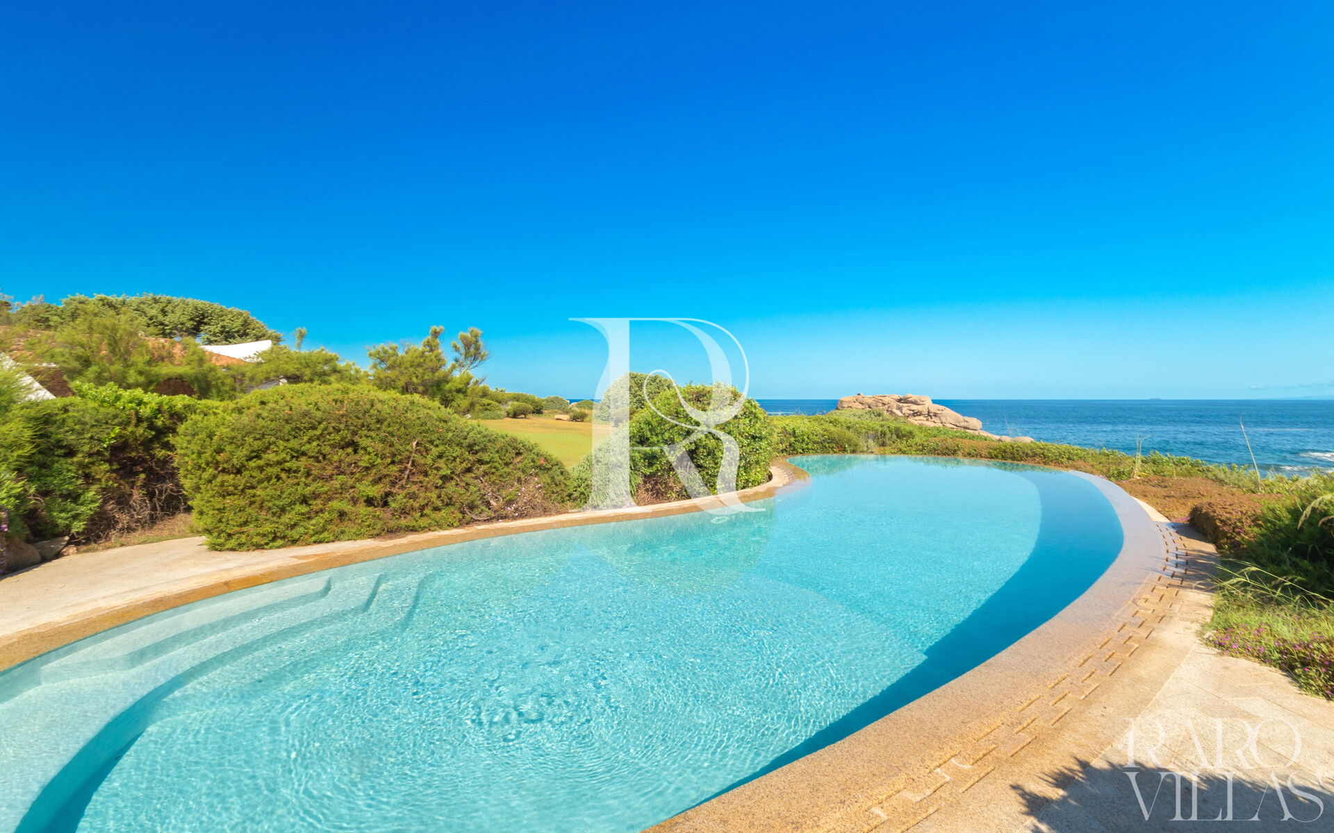 Una splendida piscina a sfioro vista mare, completata da una Jacuzzi riscaldata e un solarium panoramico sul tetto per godere dei tramonti sardi.