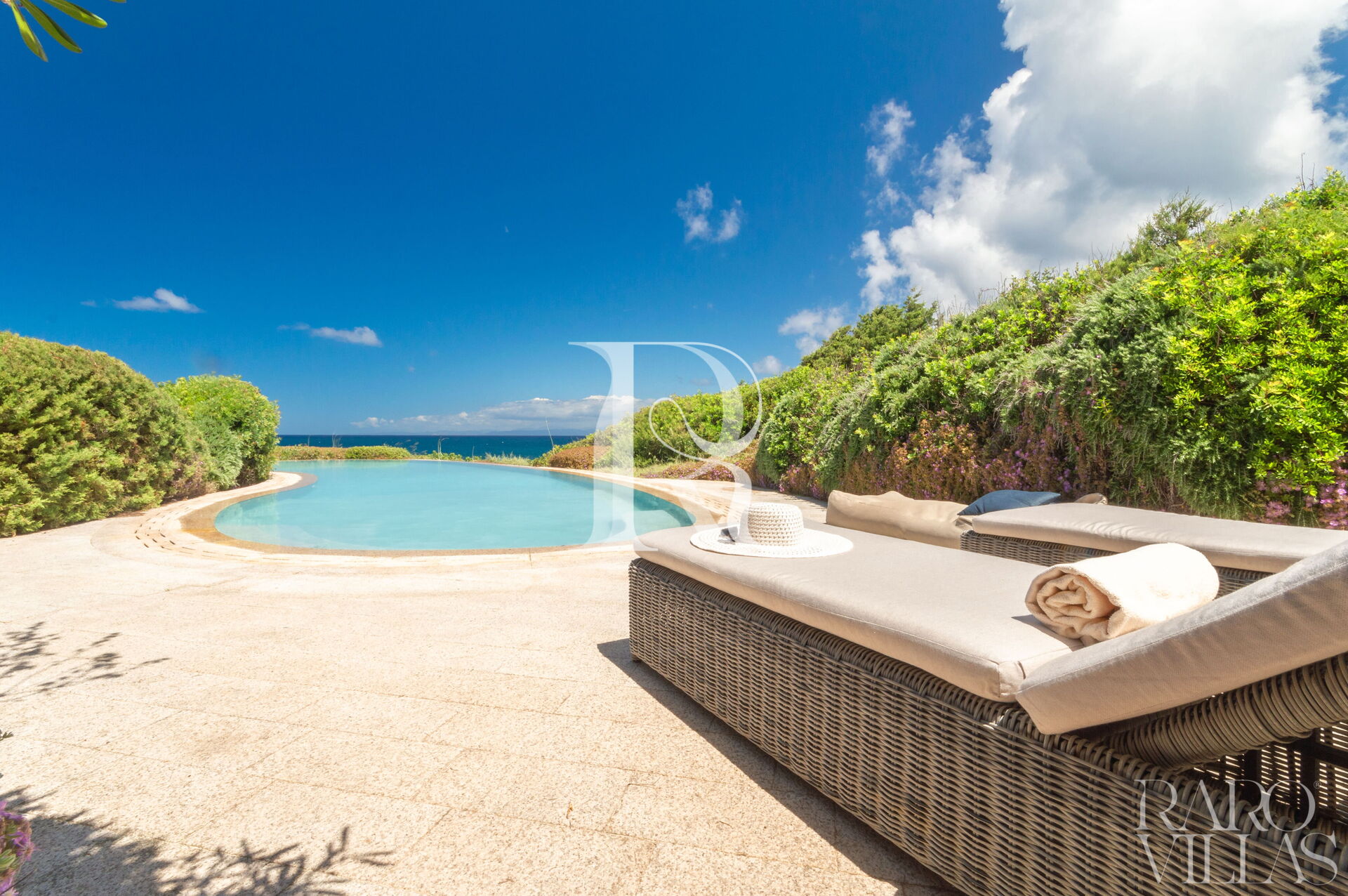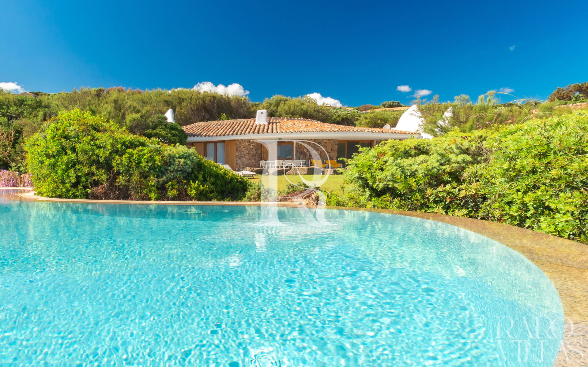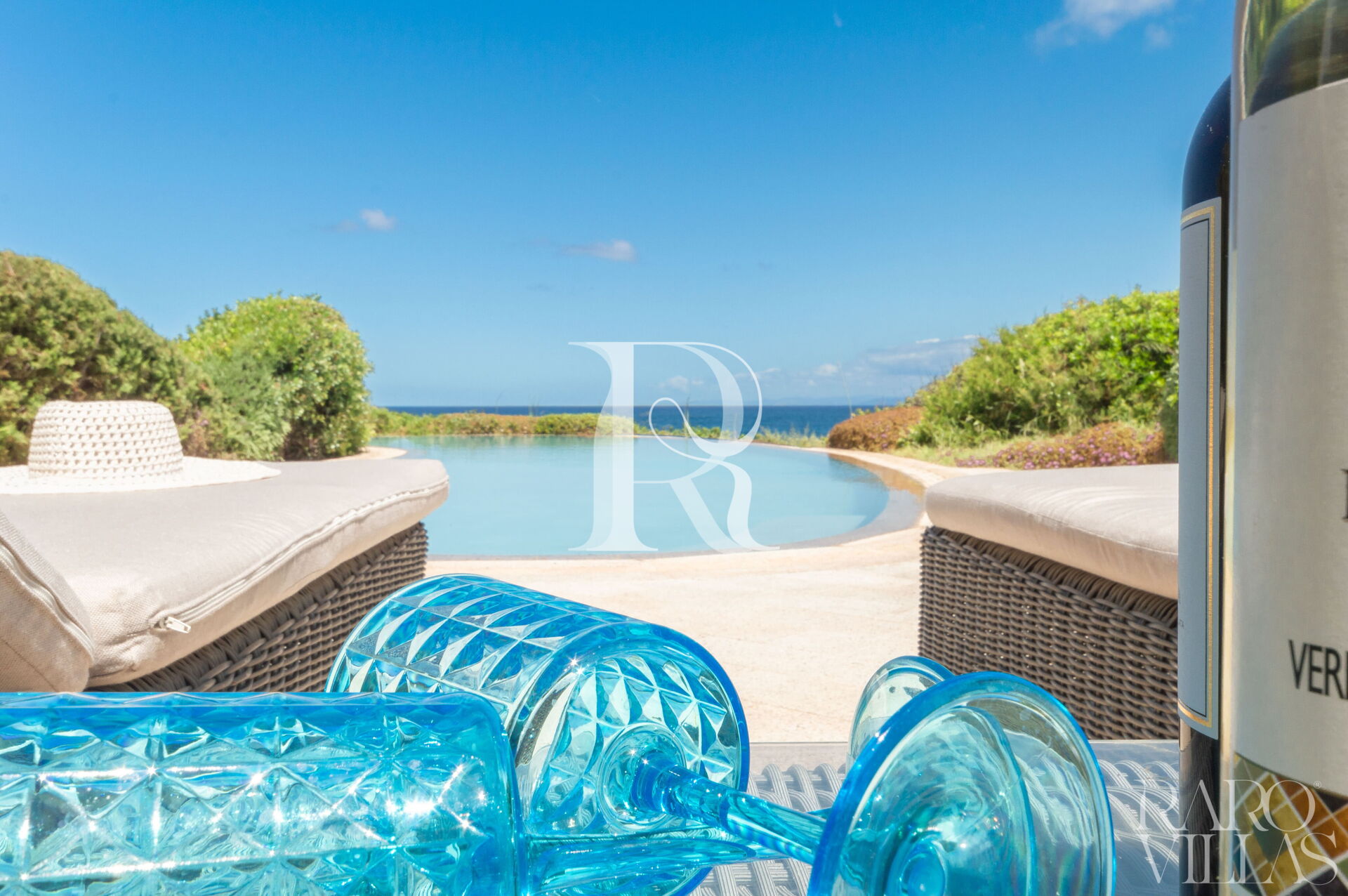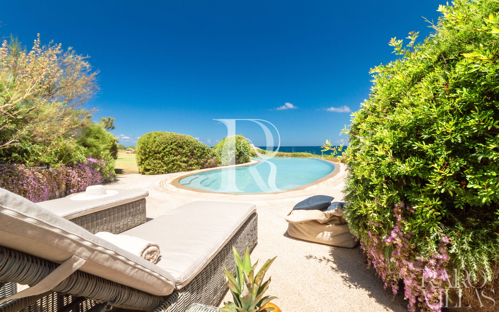 Una splendida piscina a sfioro vista mare, completata da una Jacuzzi riscaldata e un solarium panoramico sul tetto per godere dei tramonti sardi.