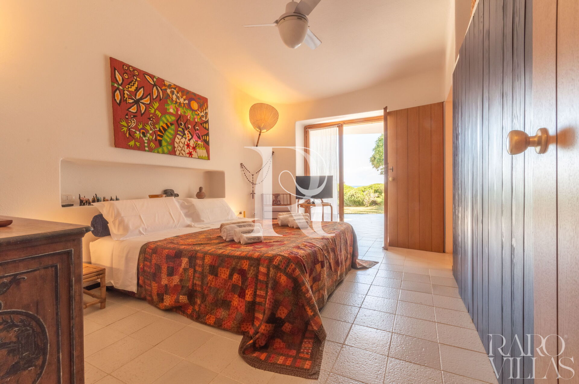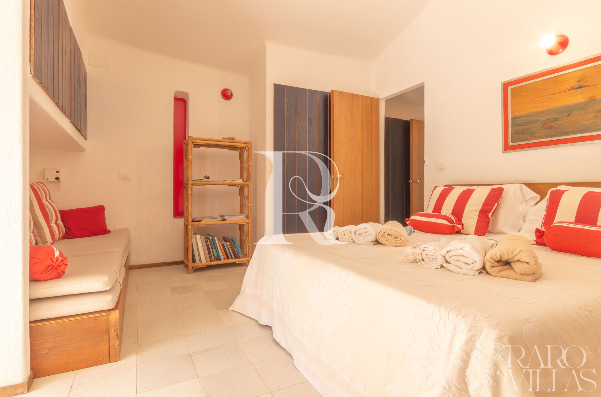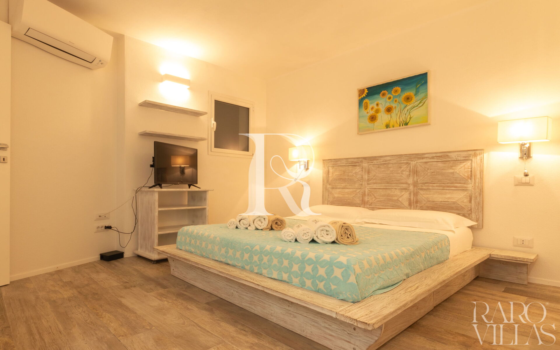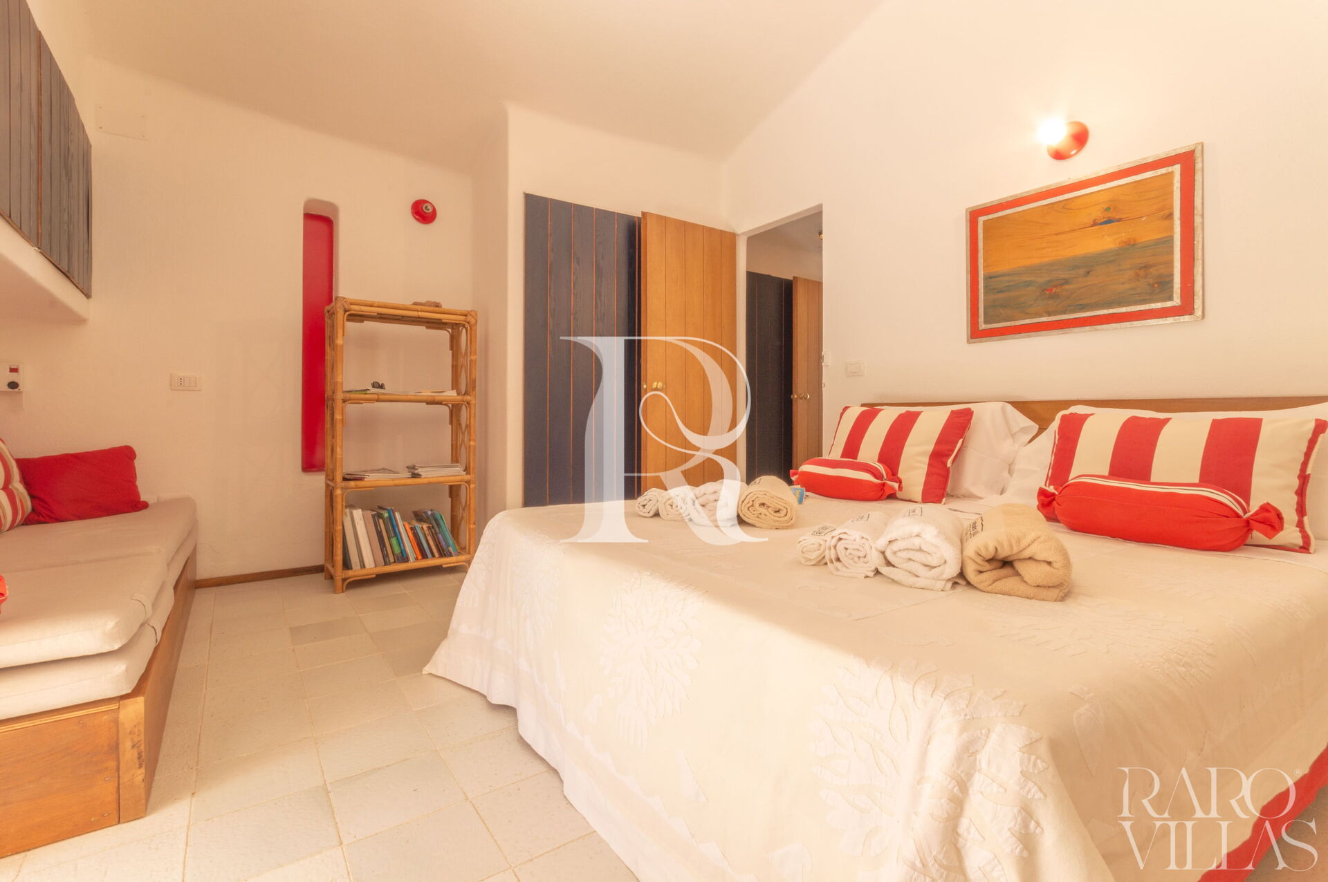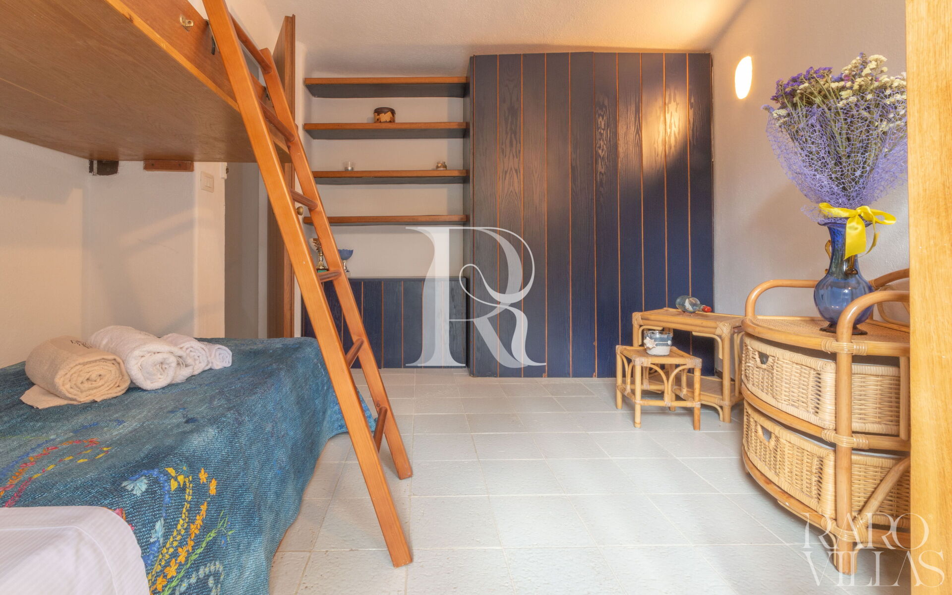 - Camere: 1 camera matrimoniale con AC, bagno ensuite e cabina armadio; 1 camera con doppio letto a castello + 1 estraibile con AC e bagno esterno con doccia.