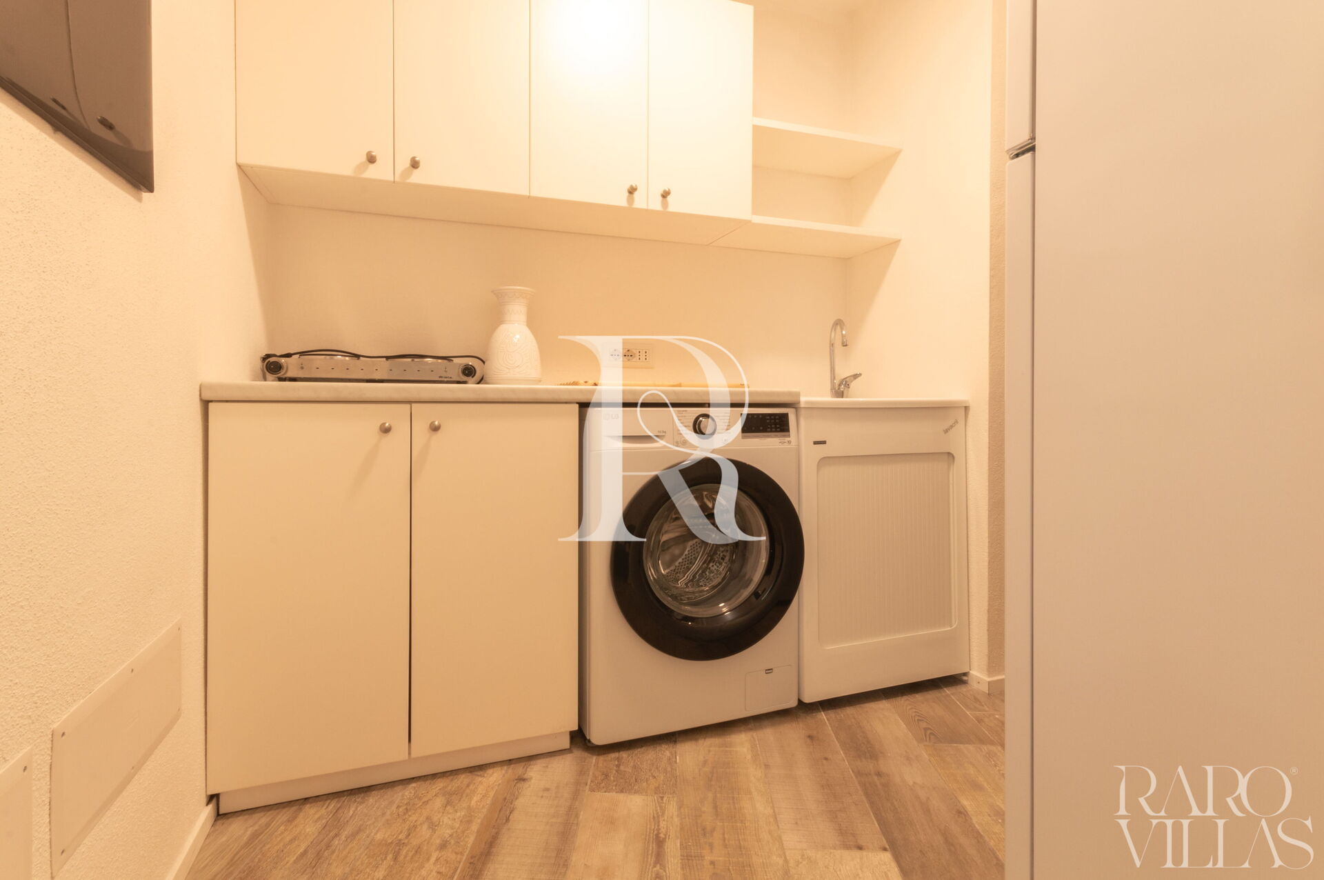 - Area Servizi: Cucinotto con secondo frigorifero e zona lavanderia con lavatrice.