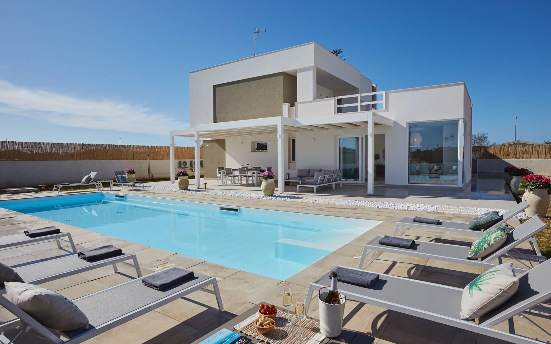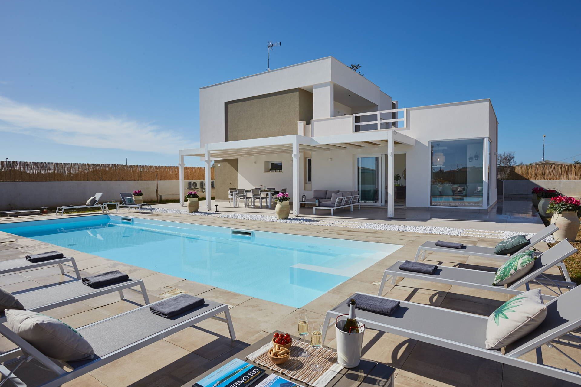 Deliziosa villa con piscina / Arredamento elegante ed in stile moderno / Splendida vista sulla piscina dalle grandi finestre del soggiorno / 10 Posti, 5 Camere da letto, 5 Bagni, Piscina