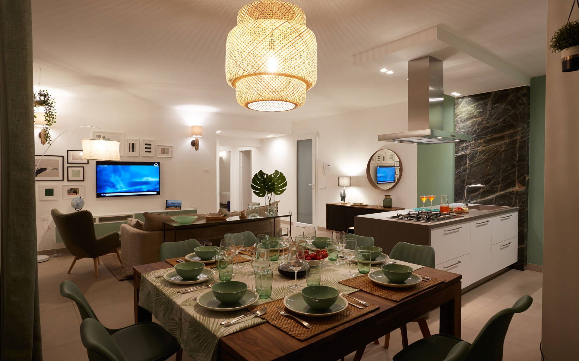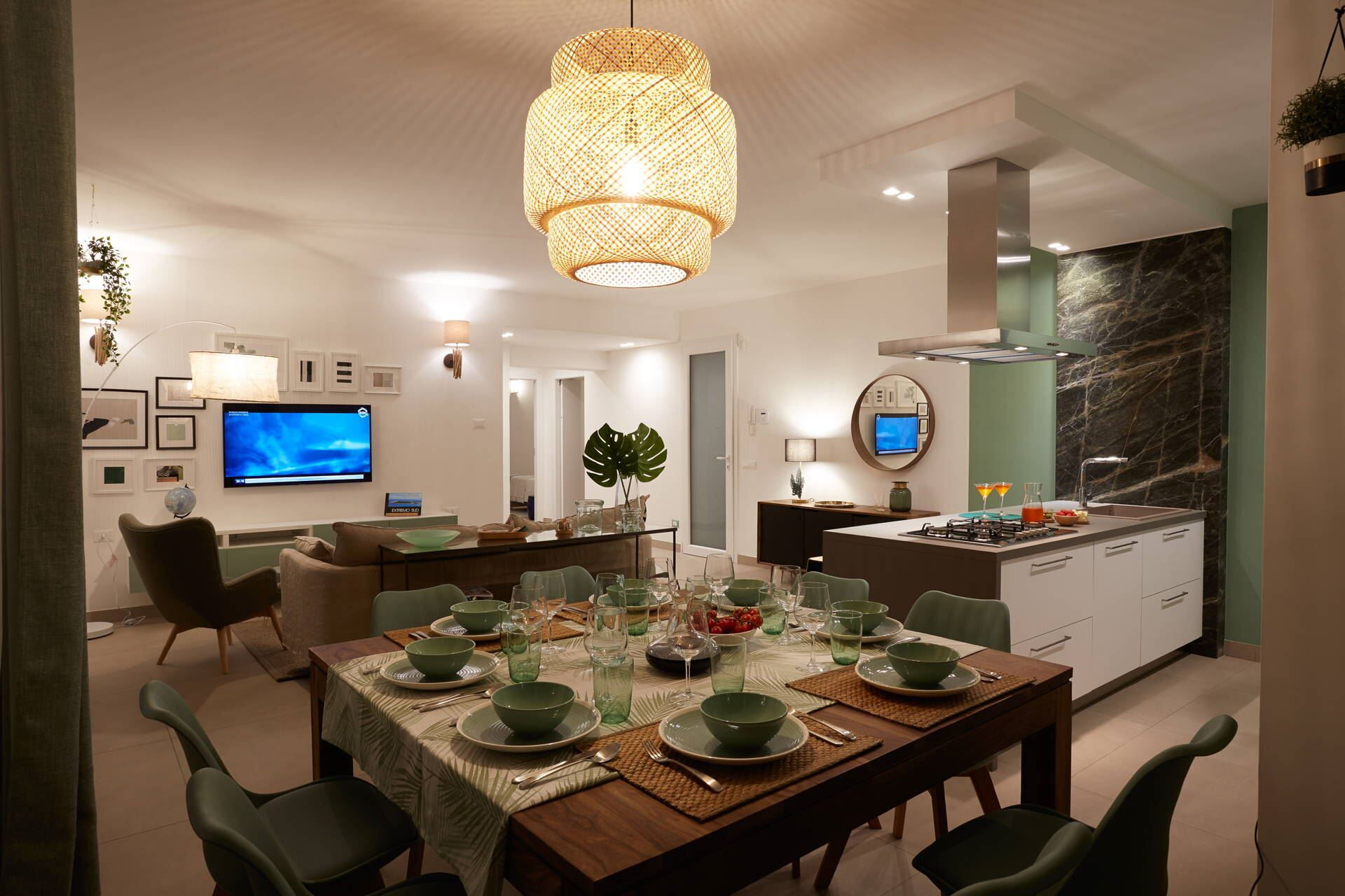 Splendida vista sulla piscina dalle grandi finestre del soggiorno