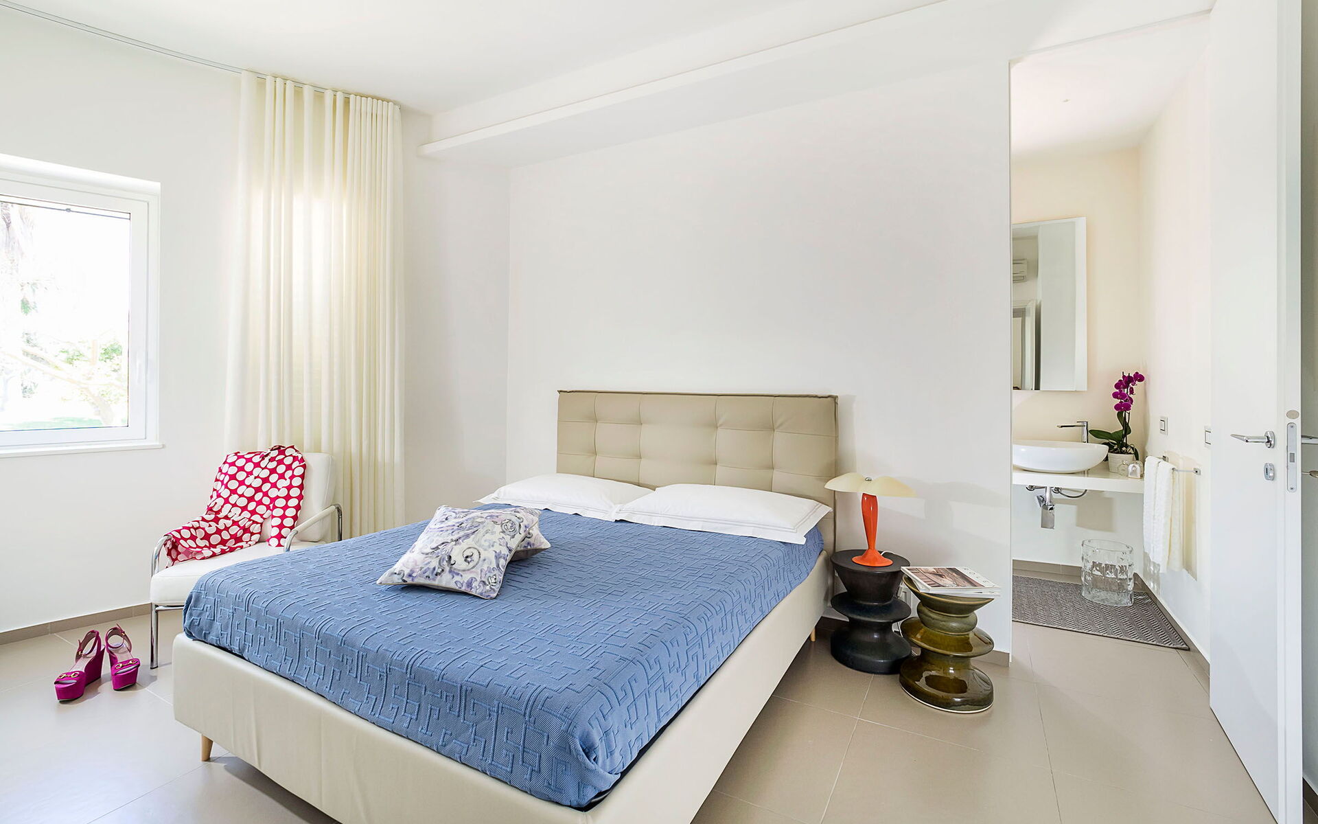 Camera da letto con bagno 2: letto matrimoniale, internet WIFI, zanzariere, tv satellitare, lavandino, wc, bidet, doccia.