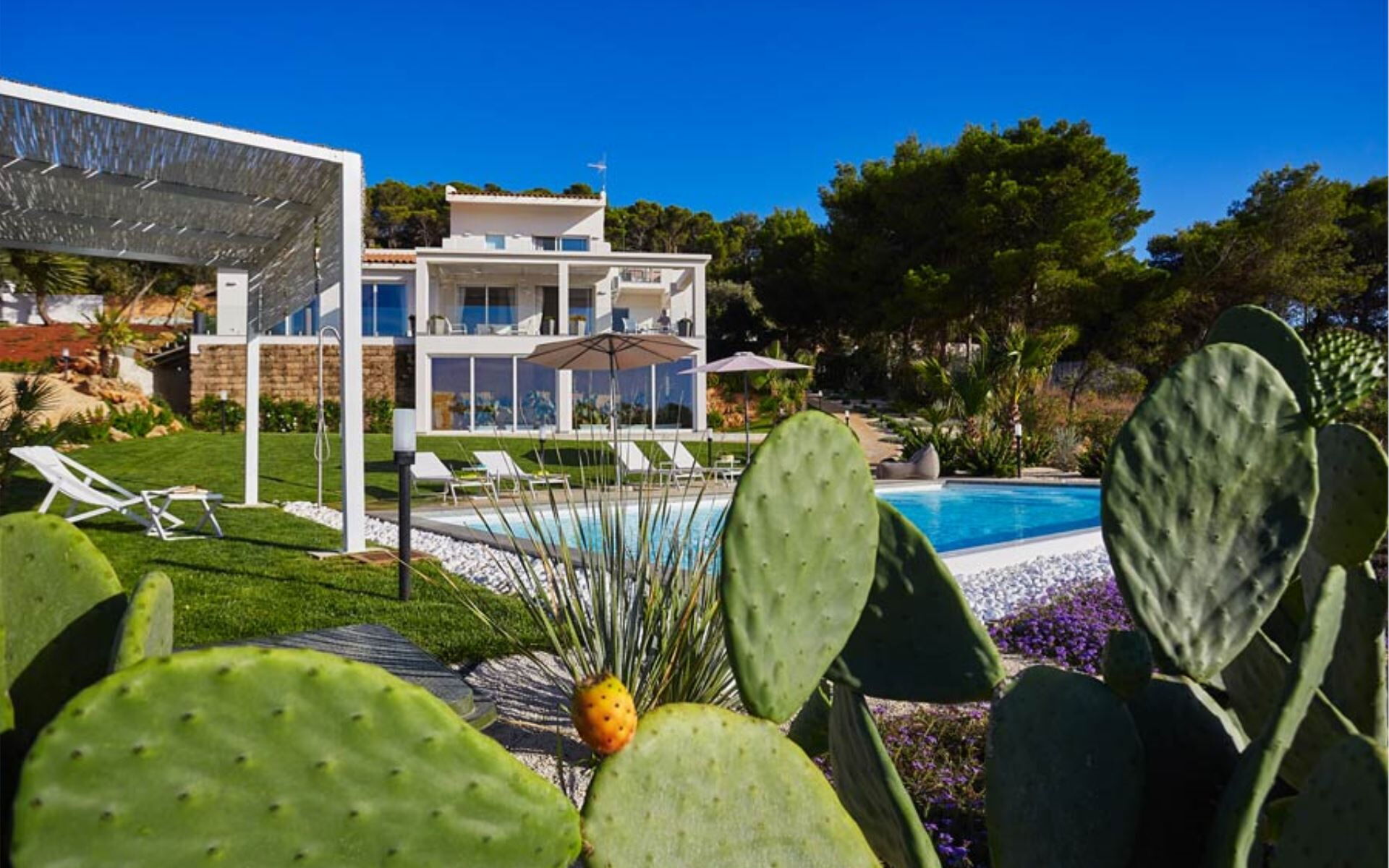 Disposta su più livelli, Villa Nardù è una tenuta dall'architettura moderna e minimalista. Può ospitare fino a 10 persone in 5 camere da letto con 6 bagni.