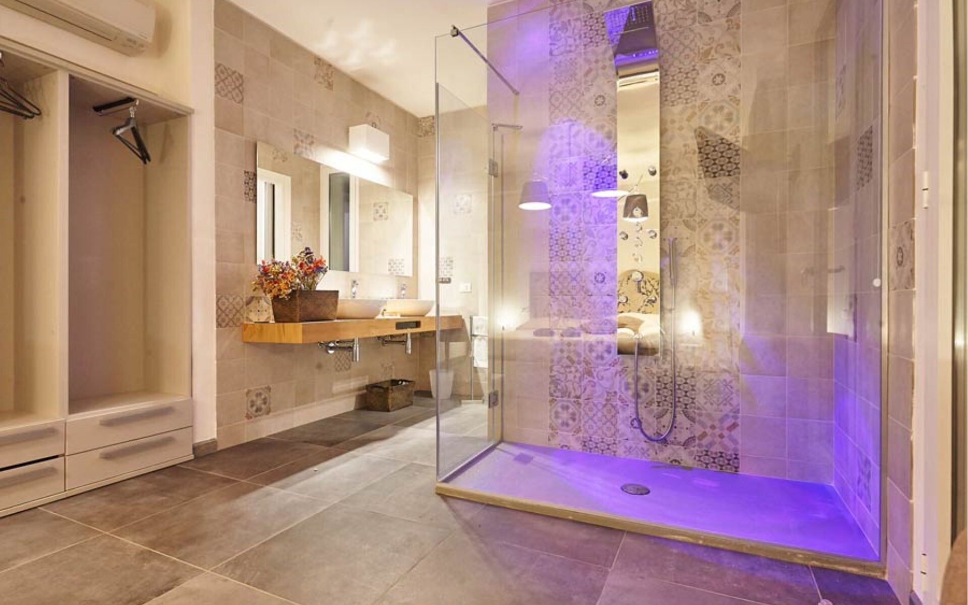 Al piano rialzato si trovano 4 camere da letto matrimoniali en suite, tutte dotate di bagno privato (due con doccia idro-massaggio e due con vasca idro-massaggio una delle quali king size, A/C e TV).