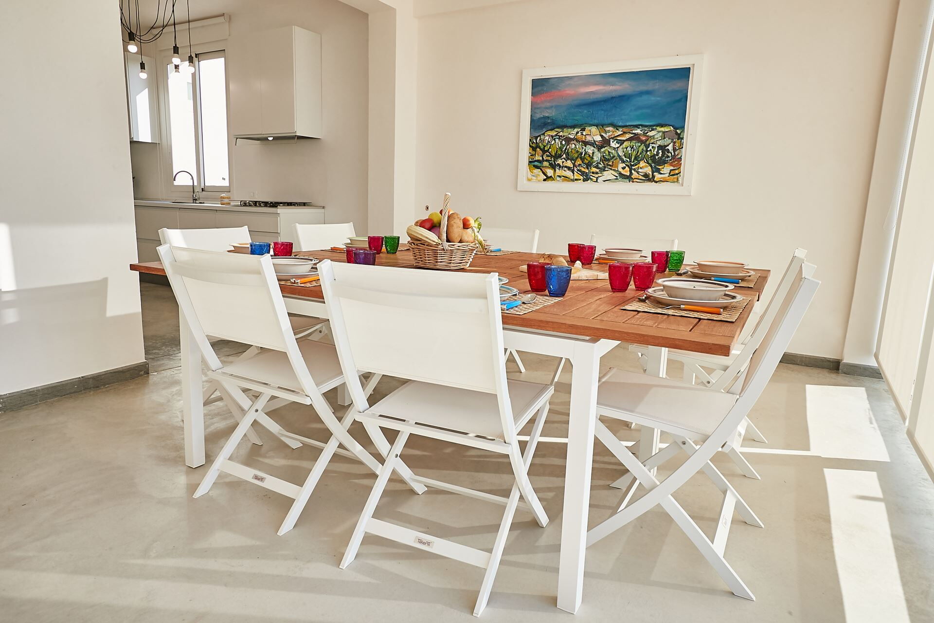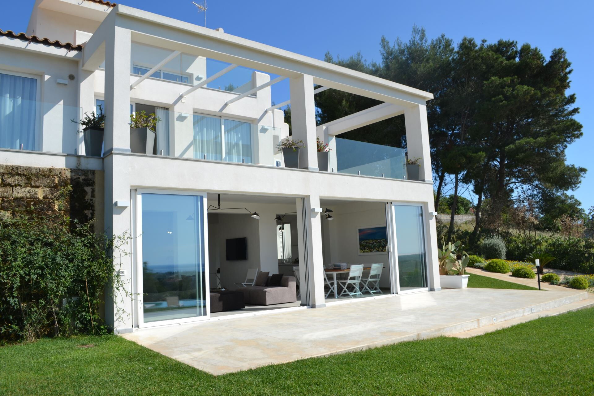 La villa in affitto vi accoglierà nel suo ampio giardino mediterraneo con l'elegante piscina ad uso privato. All'interno si sviluppa su tre piani con un design minimalista e delle finiture di pregio, con ricercati inserti di maiolica siciliana.