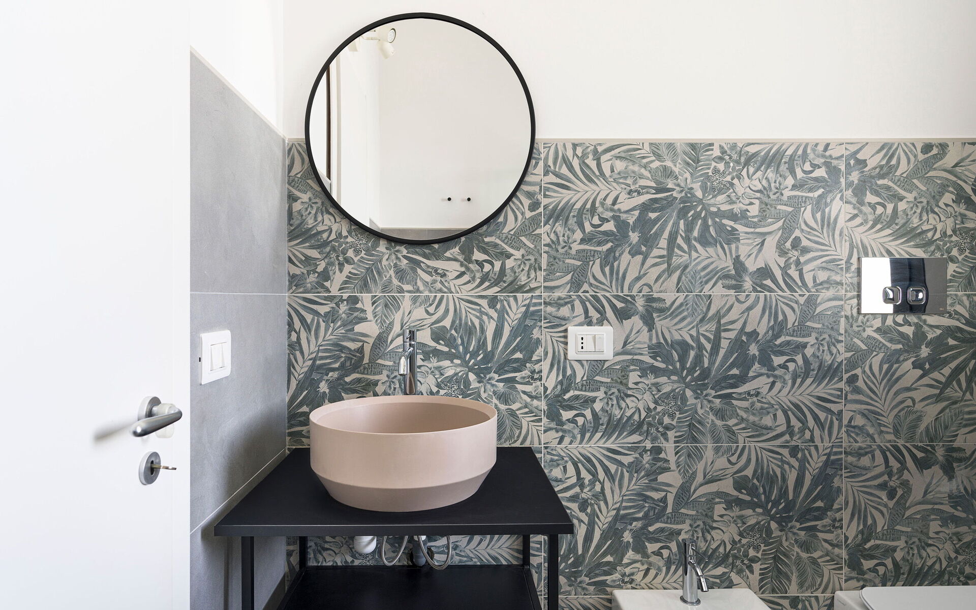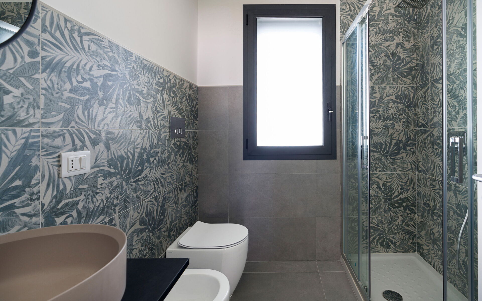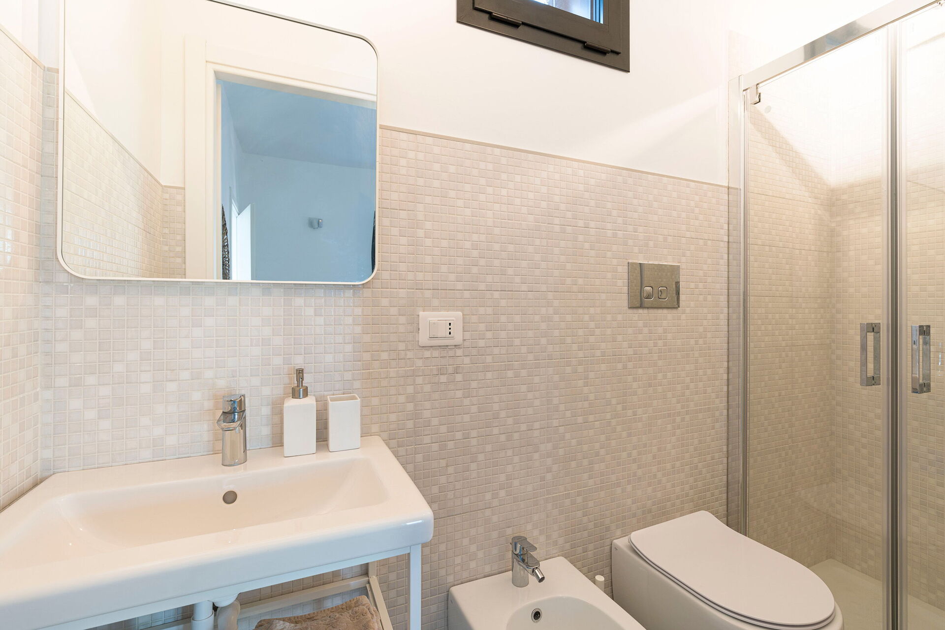 Bagno: lavandino, wc, bidet, doccia, lavatrice.