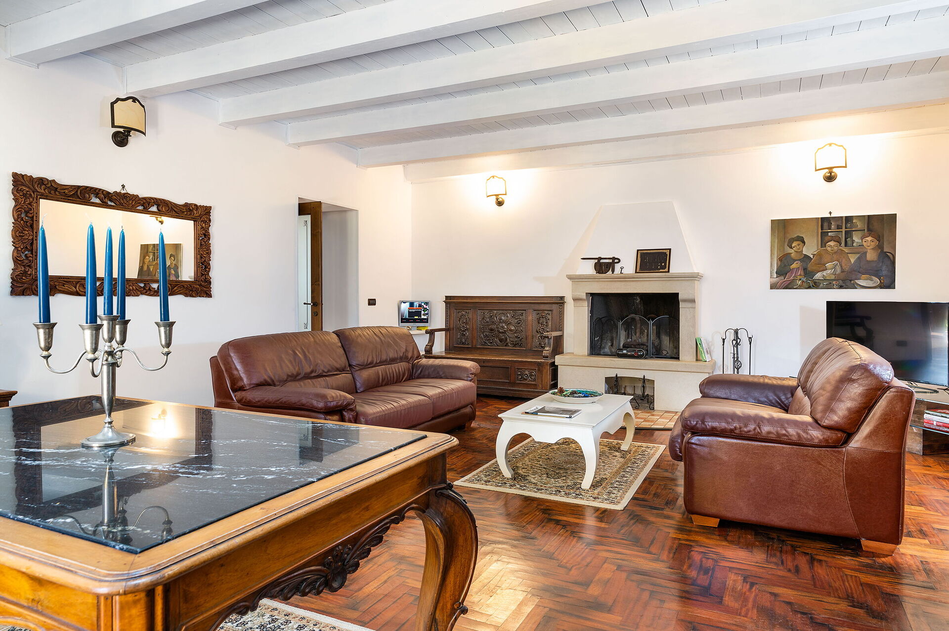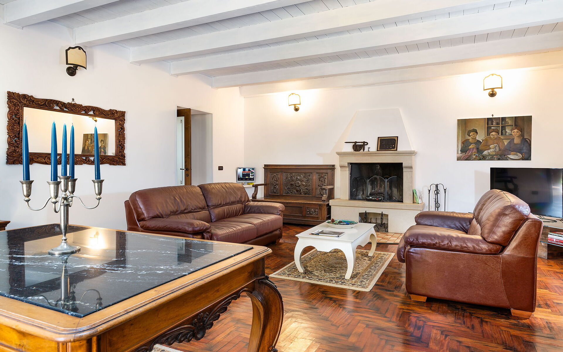 Soggiorno: due divani (persone: 4), scrivania, caminetto, internet WIFI, internet, aria condizionata, tv satellitare, uscita sulla terrazza.