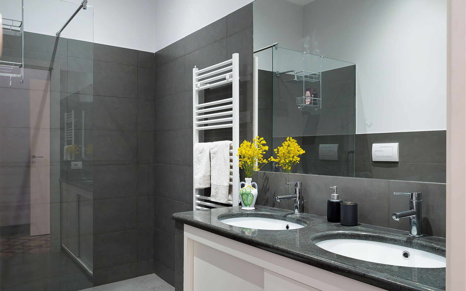 Bagno 1: lavandino, wc, bidet, doccia.
