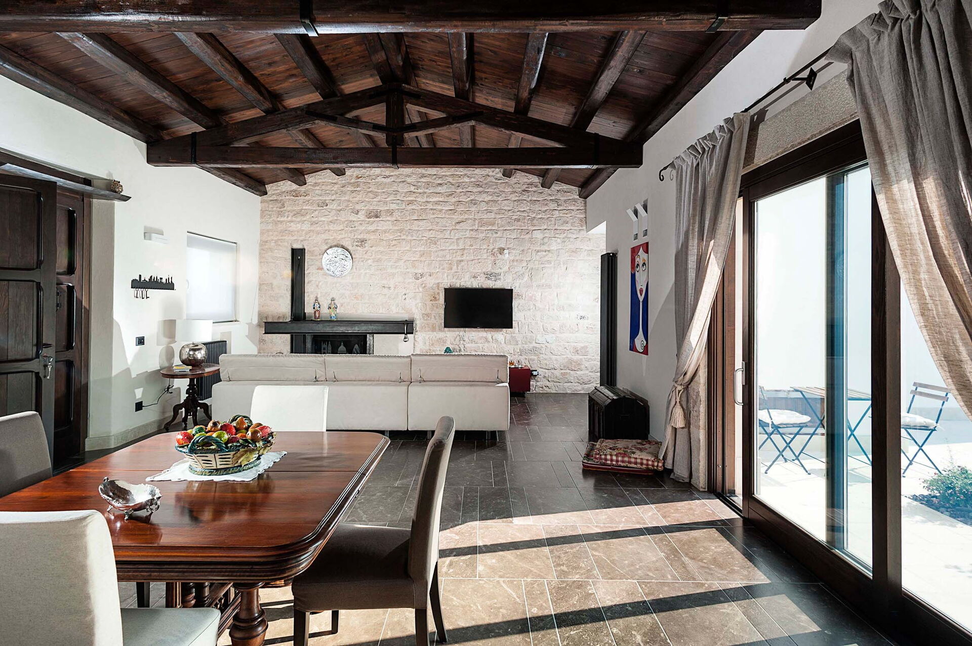 Soggiorno: divano, caminetto, tavolo da pranzo, internet WIFI, internet, aria condizionata, tv satellitare, zanzariere, rilevatore di fumo, rilevatore di co2.