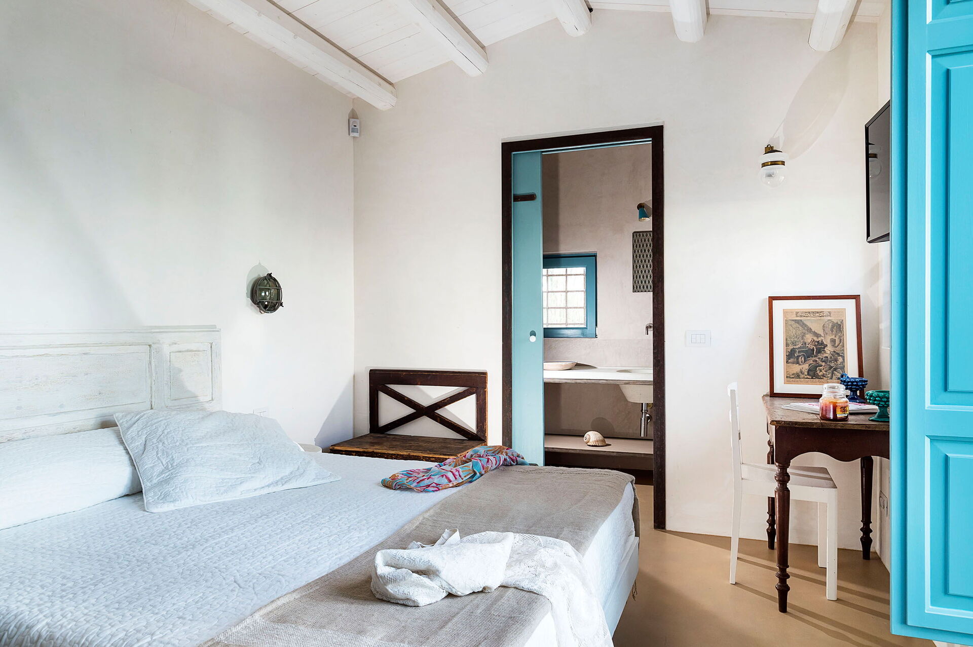 Camera da letto 2: letto matrimoniale (larghezza: 1.6m, lunghezza: 1.9m), internet WIFI, internet, aria condizionata, tv satellitare, televisione, scrivania, uscita sul patio.