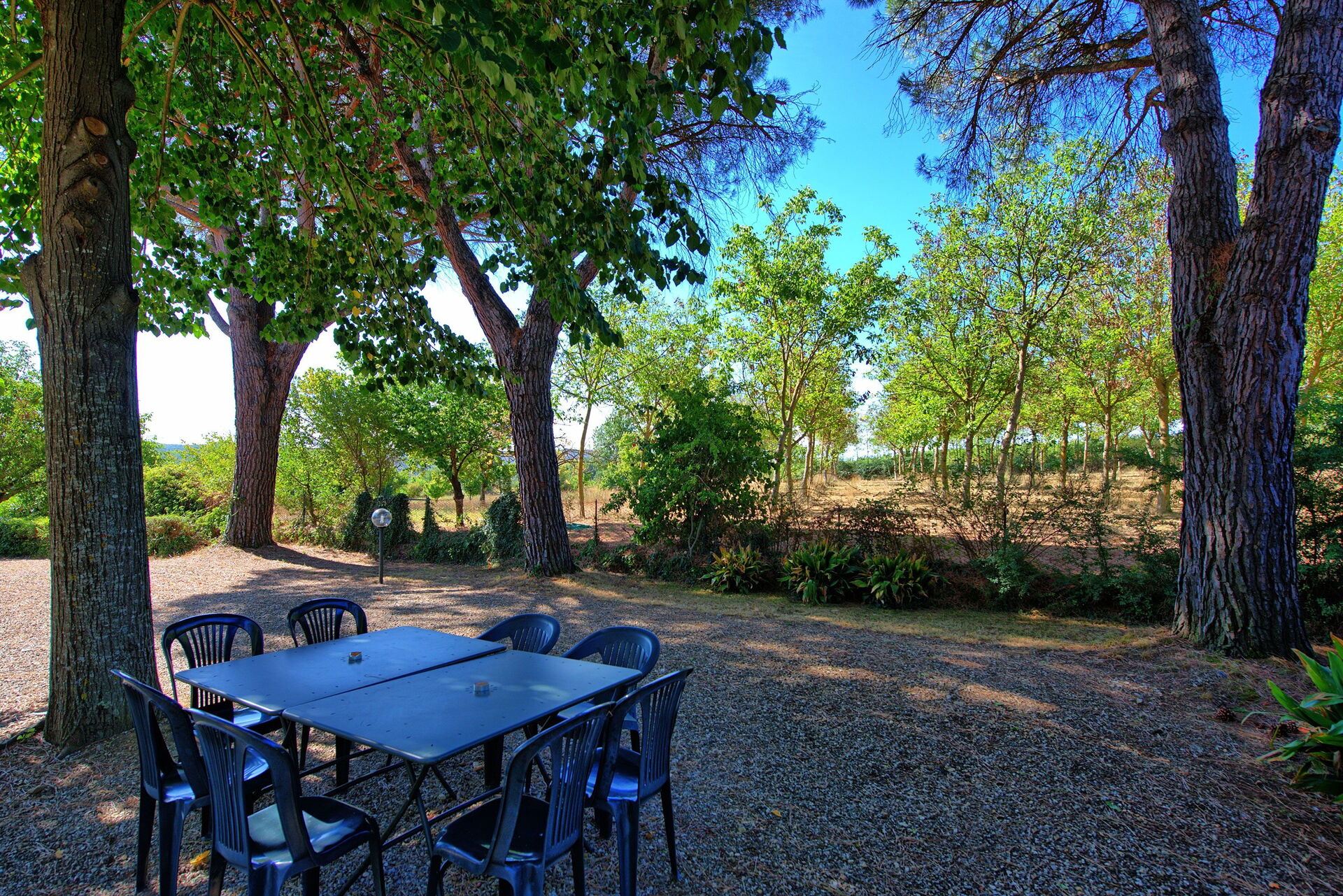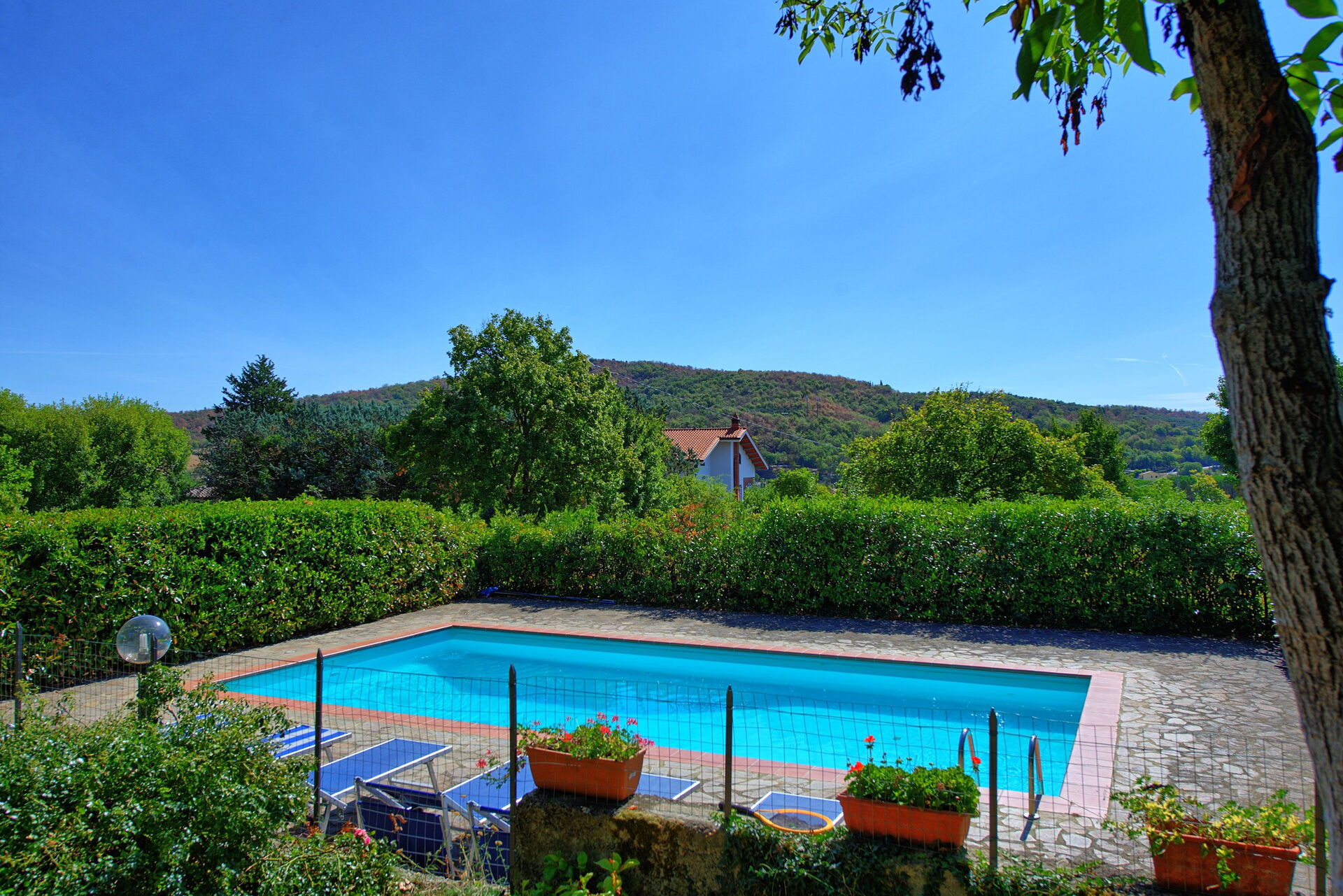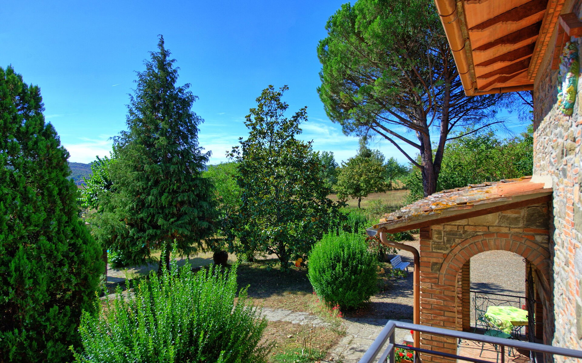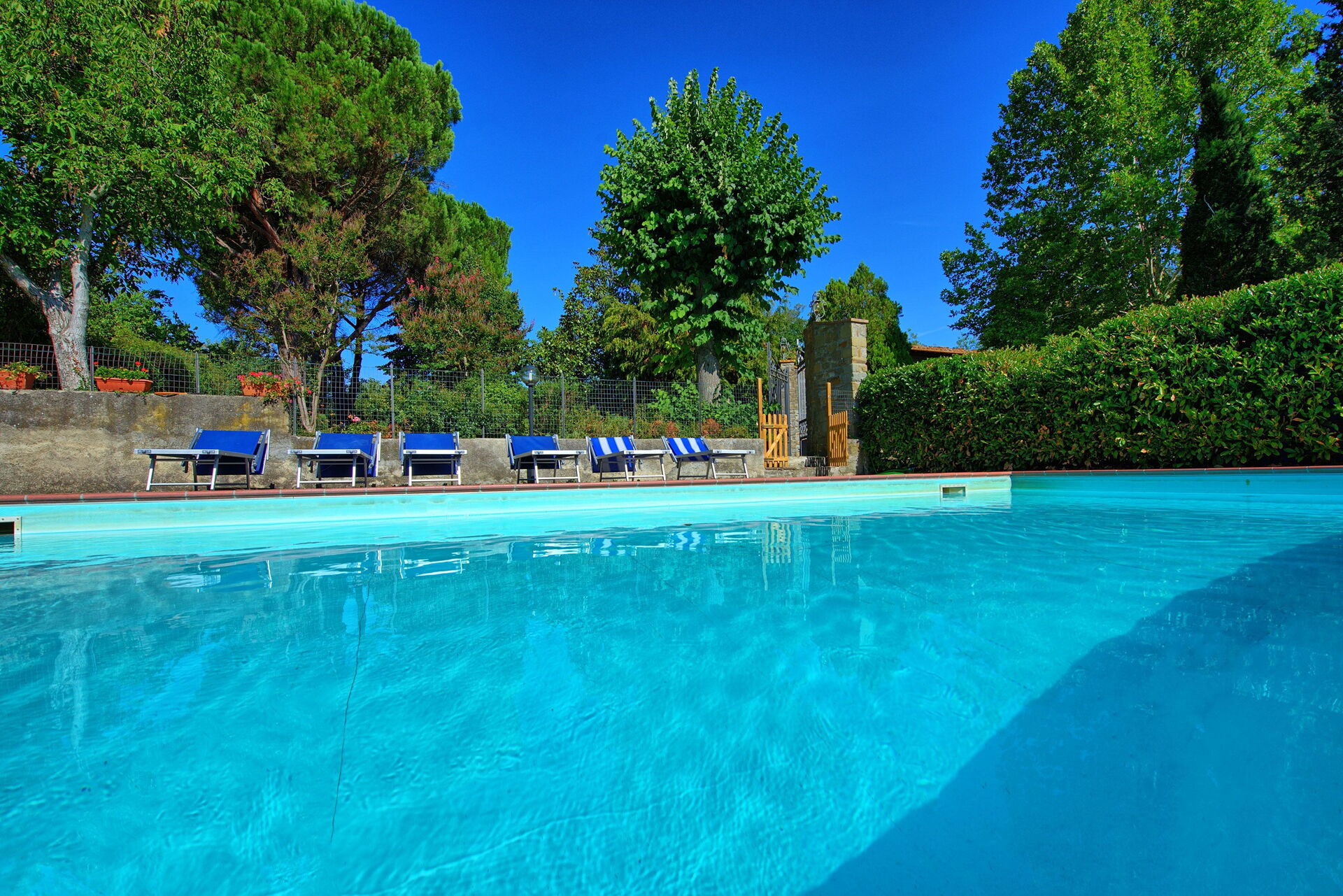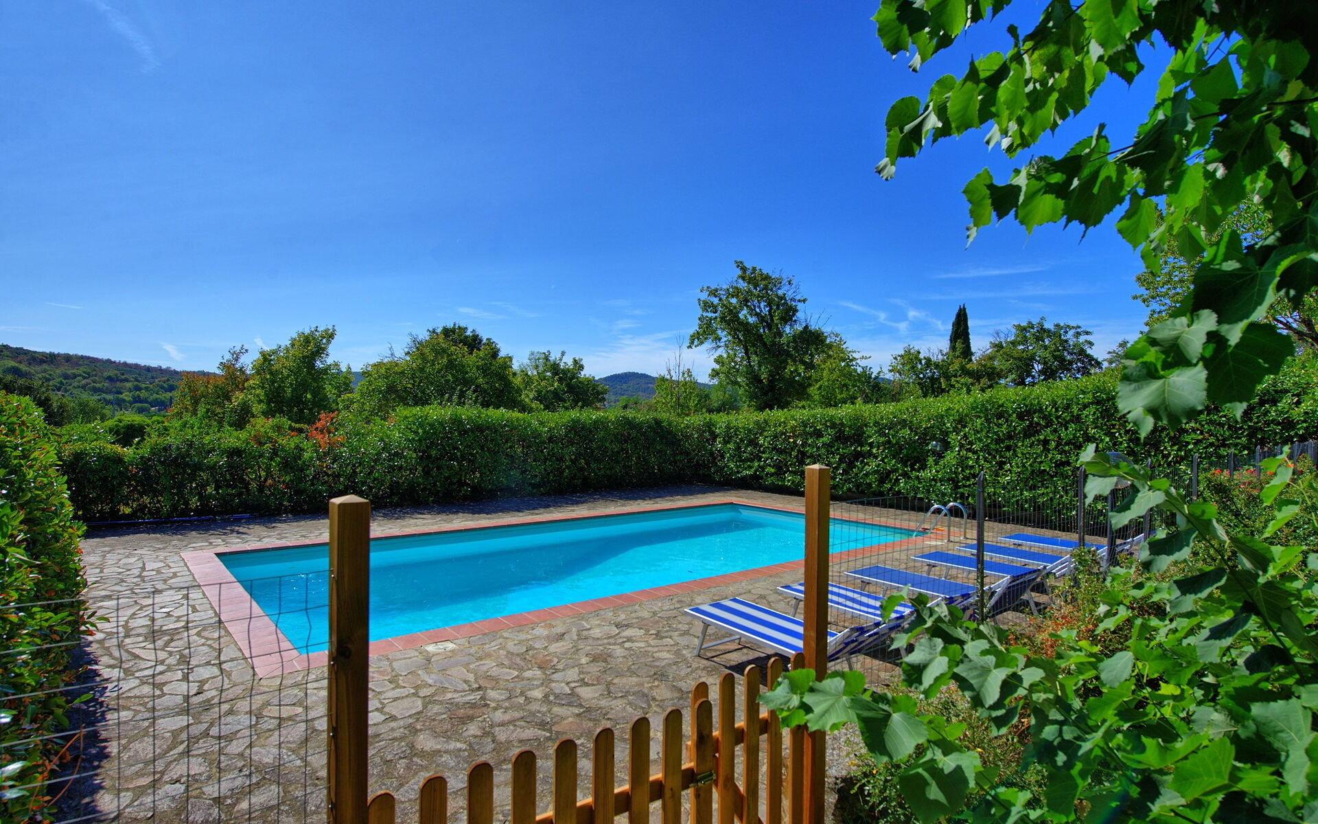 Attorno alla casa si trova un bel parco-giardino completamente recintato ed in parte ombreggiato da alberi secolari con piscina privata e recintata, dotata di solarium con lettini, un luogo fantastico per rilassarsi e prendere il sole nelle calde giornate estive. Vi è inoltre un'area barbecue, dotata di tavoli, sedie e panchine per poter mangiare all'aperto e godersi la vista panoramica sulle colline del Chianti in compagnia di amici e familiari.