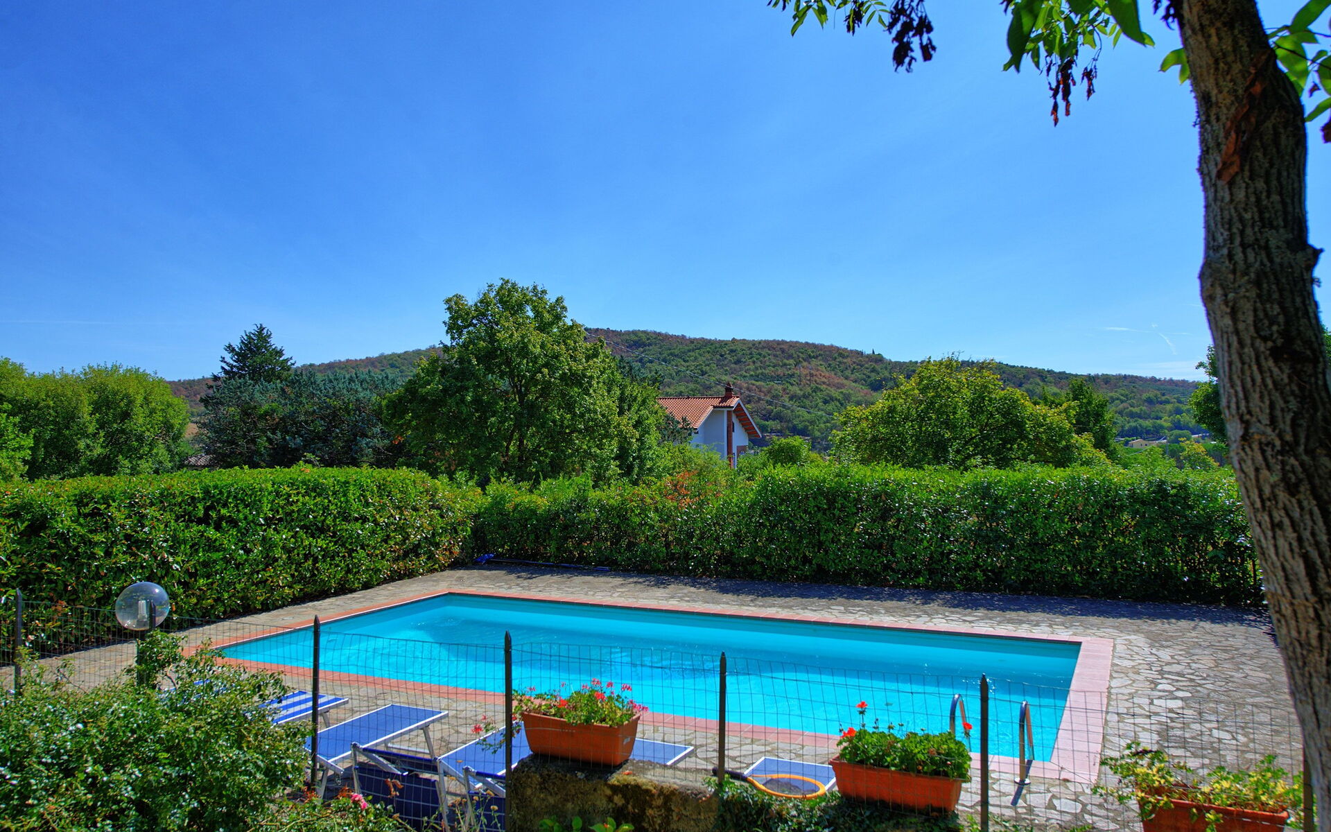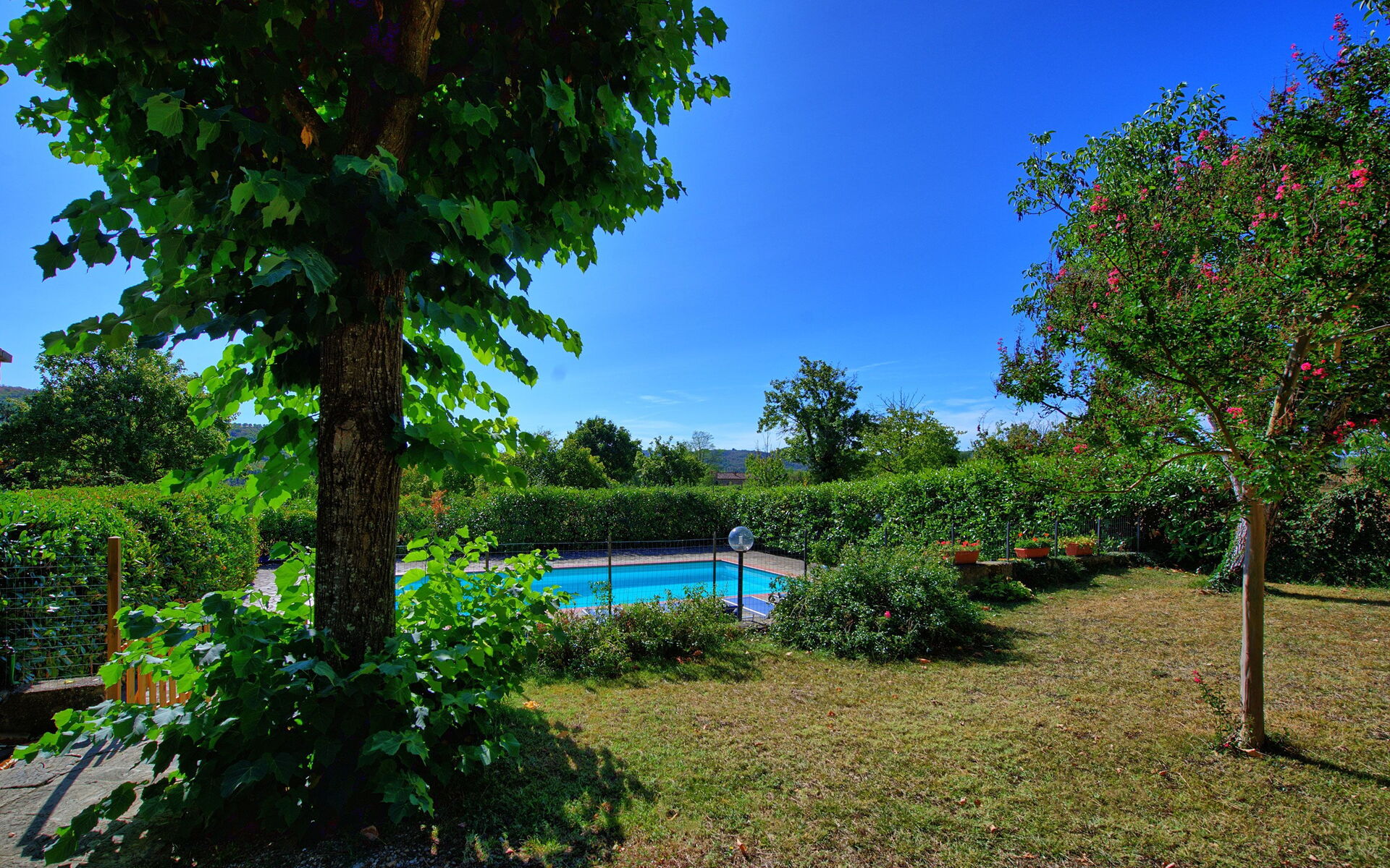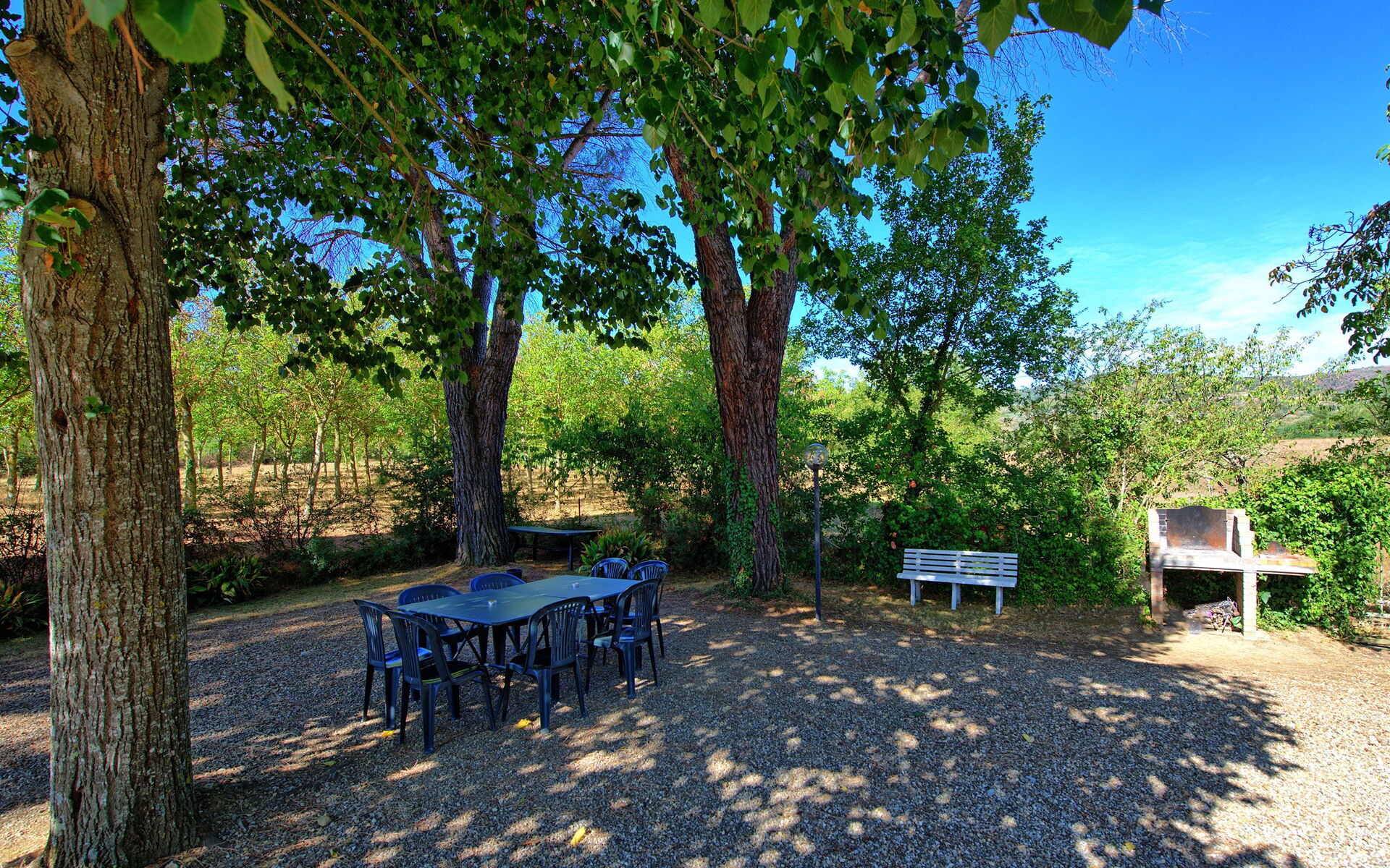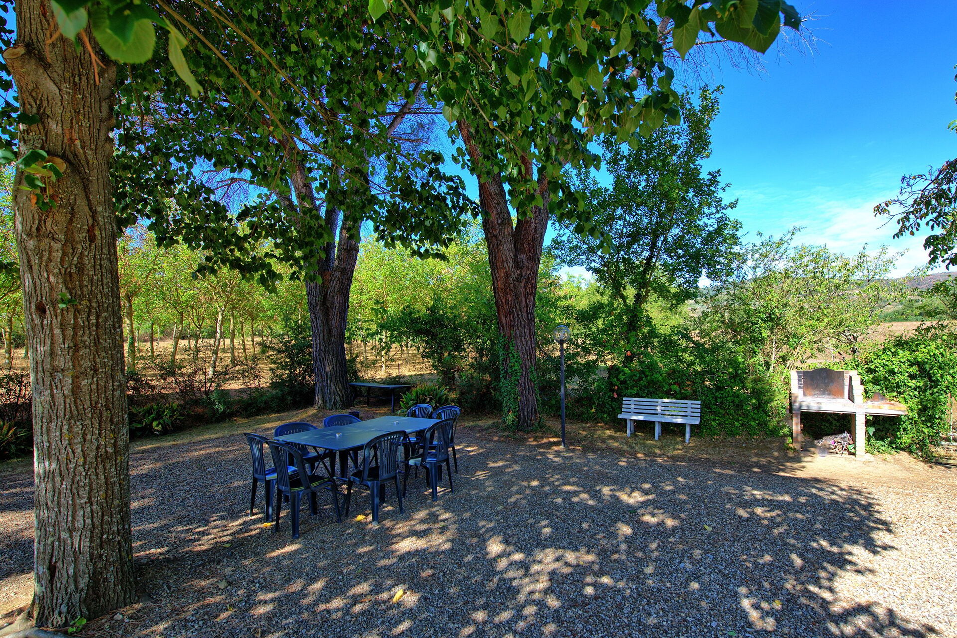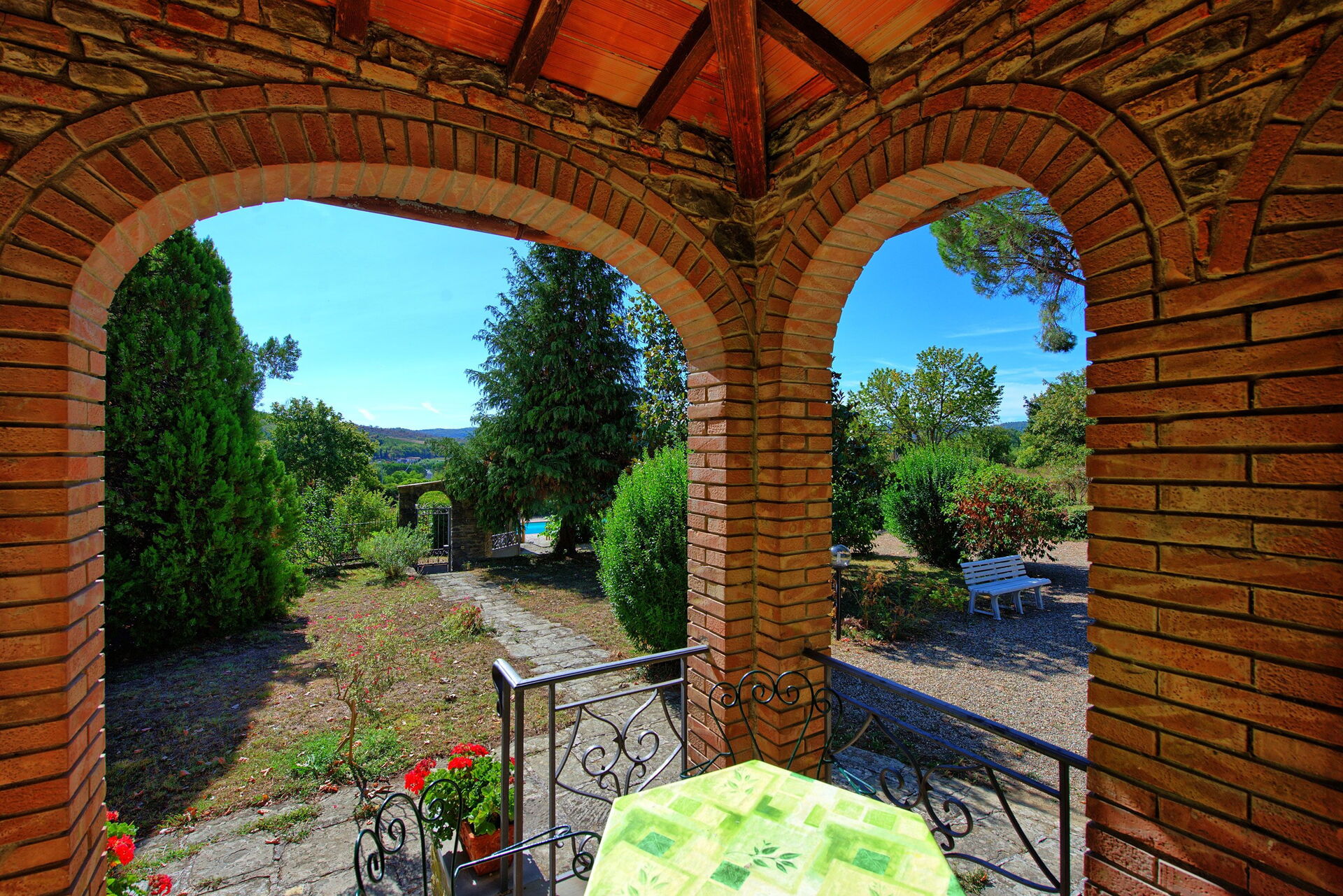 Attorno alla casa si trova un bel parco-giardino completamente recintato ed in parte ombreggiato da alberi secolari con piscina privata e recintata, dotata di solarium con lettini, un luogo fantastico per rilassarsi e prendere il sole nelle calde giornate estive. Vi è inoltre un'area barbecue, dotata di tavoli, sedie e panchine per poter mangiare all'aperto e godersi la vista panoramica sulle colline del Chianti in compagnia di amici e familiari.