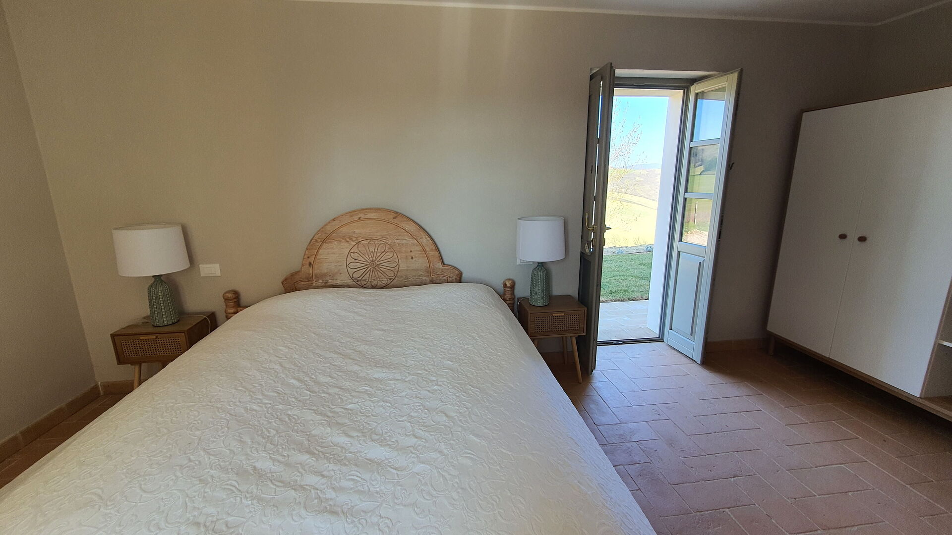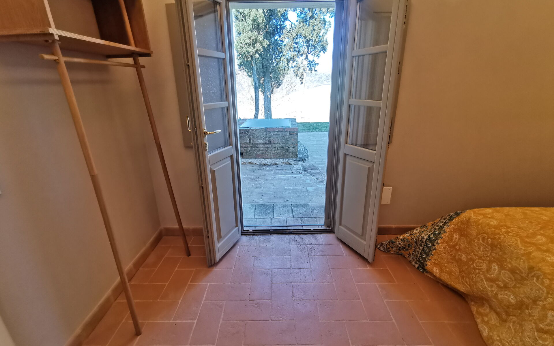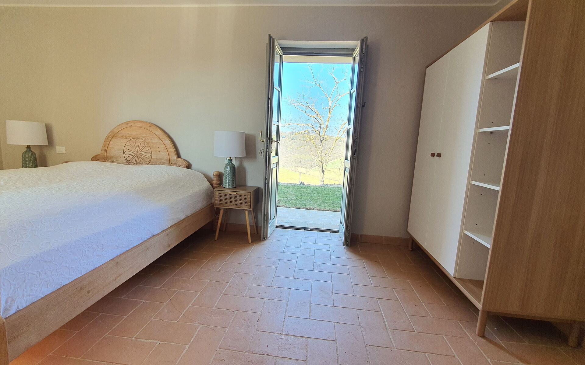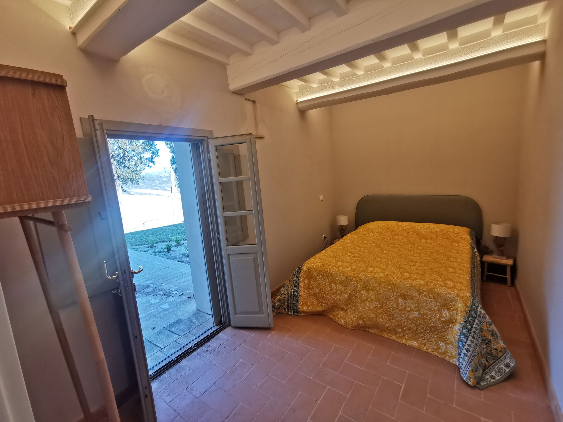 Camera da letto 1 (20 m2): letto matrimoniale (larghezza: 1.6m, lunghezza: 2m), internet WIFI, aria condizionata, uscita sul giardino.