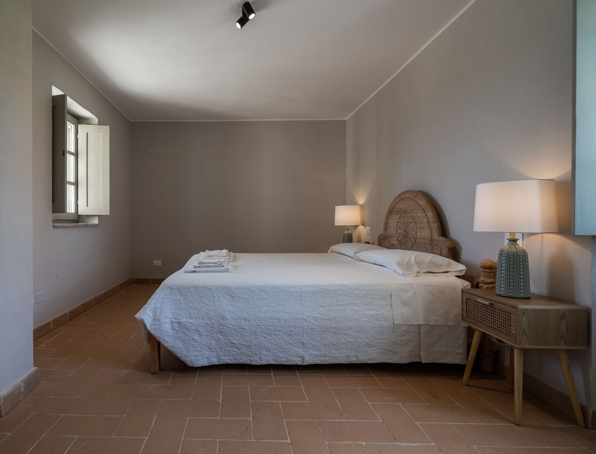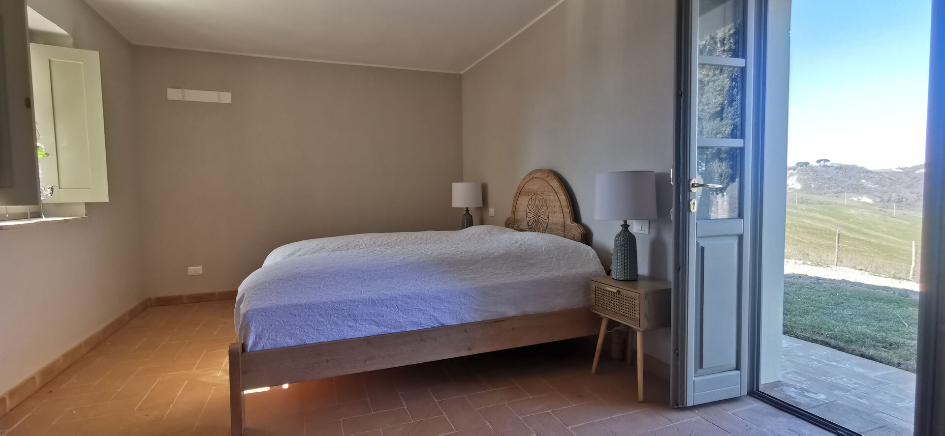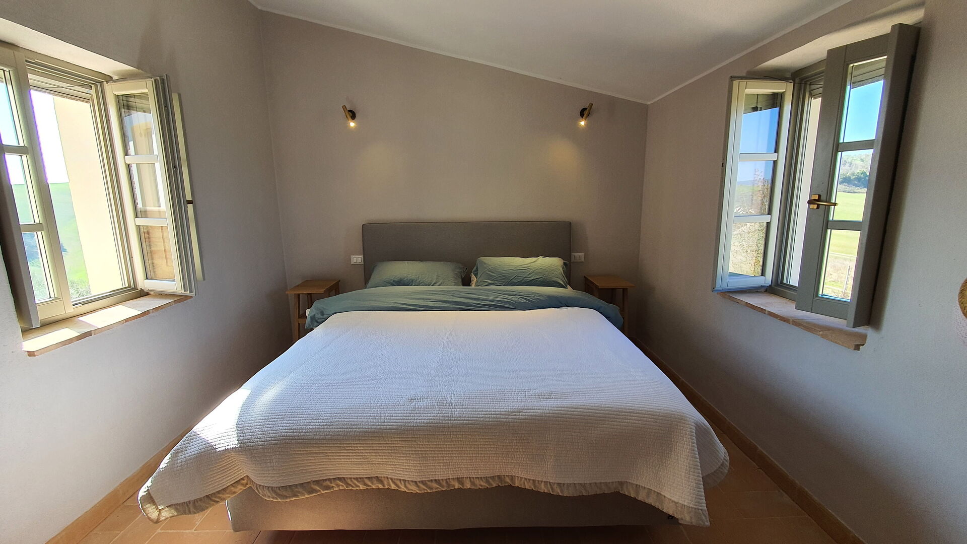 Camera da letto 1 (20 m2): letto matrimoniale (larghezza: 1.6m, lunghezza: 2m), internet WIFI, aria condizionata, uscita sul giardino.