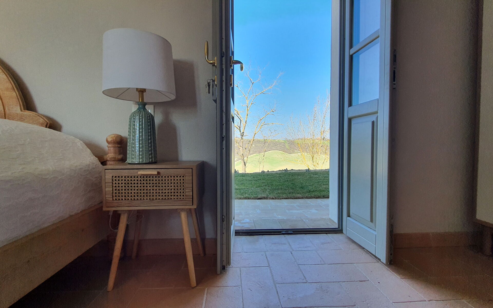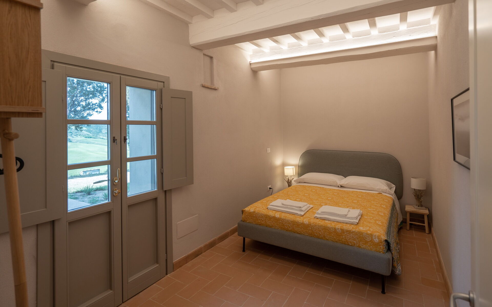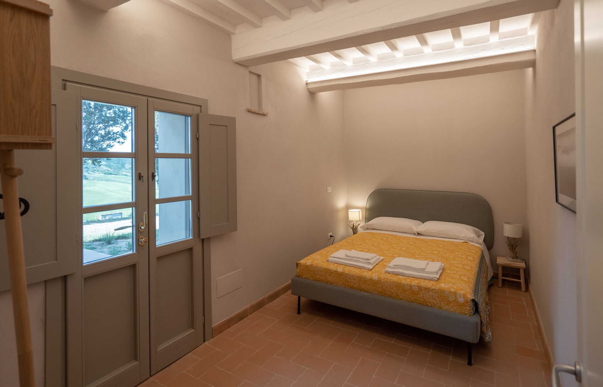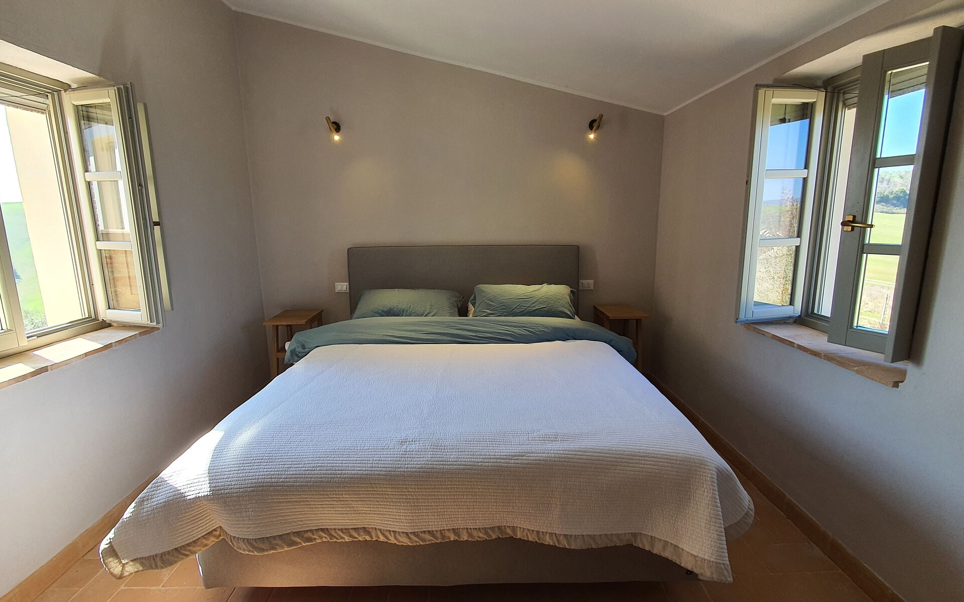 Camera da letto 1 (20 m2): letto matrimoniale (larghezza: 1.6m, lunghezza: 2m), internet WIFI, aria condizionata, uscita sul giardino.