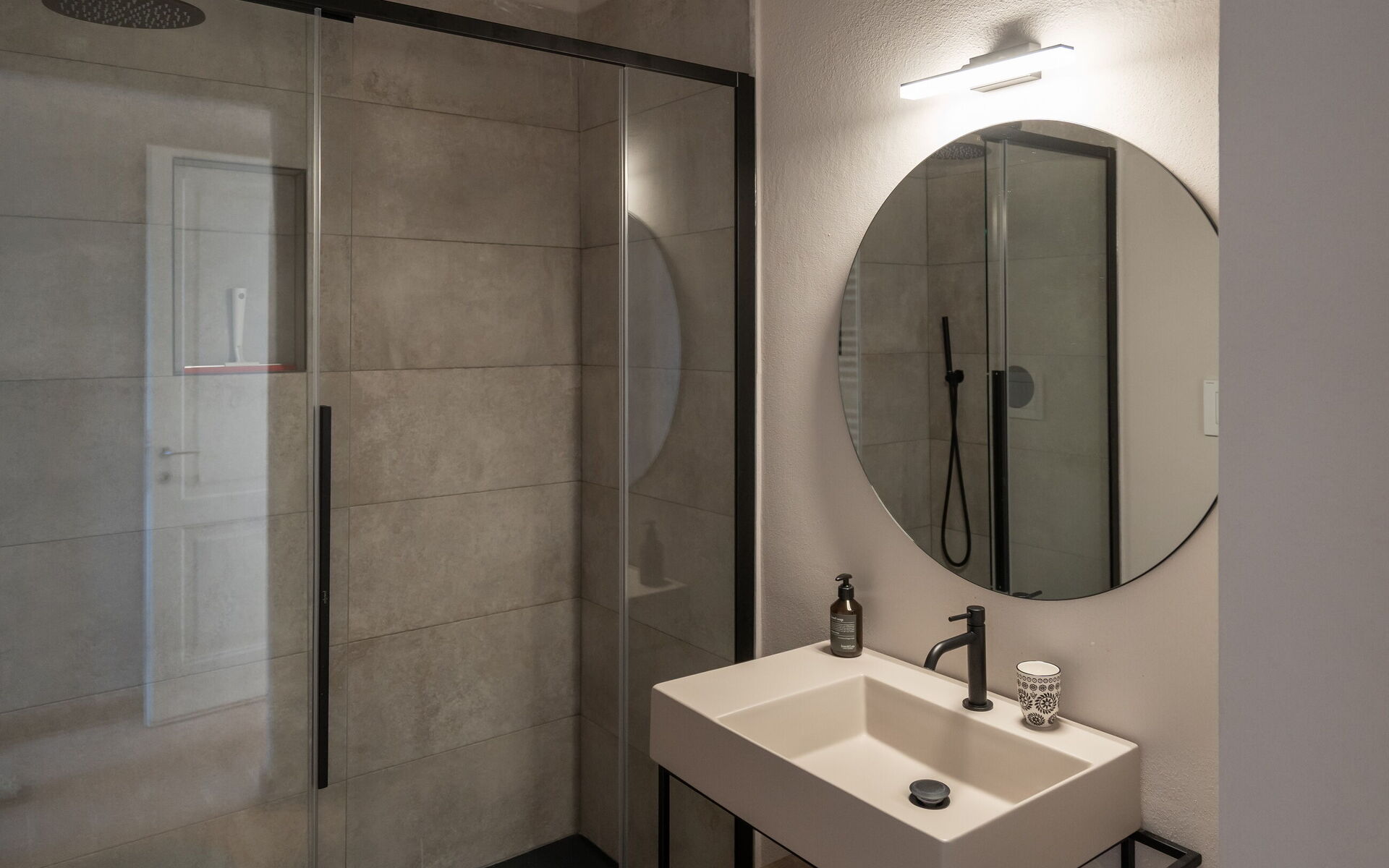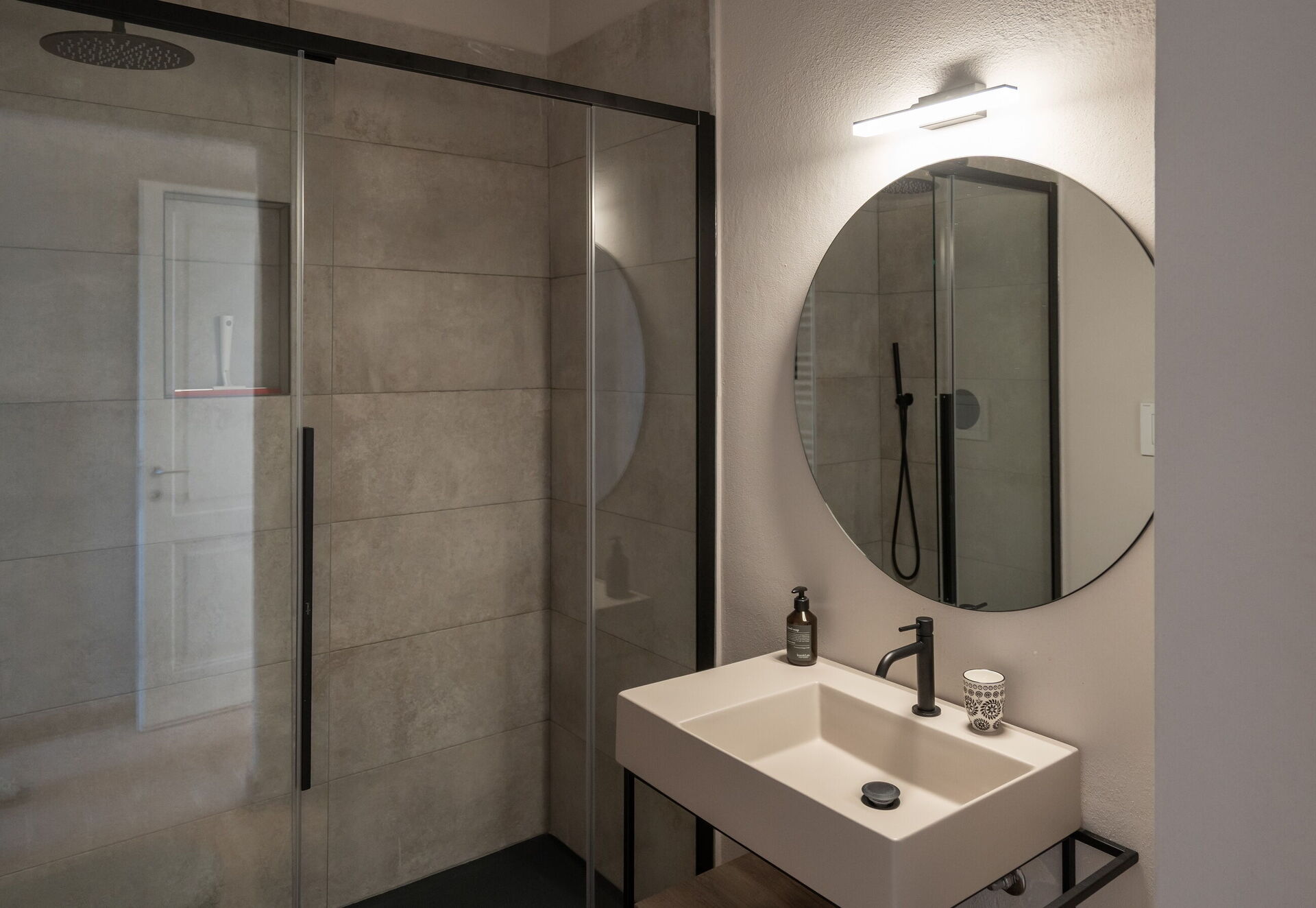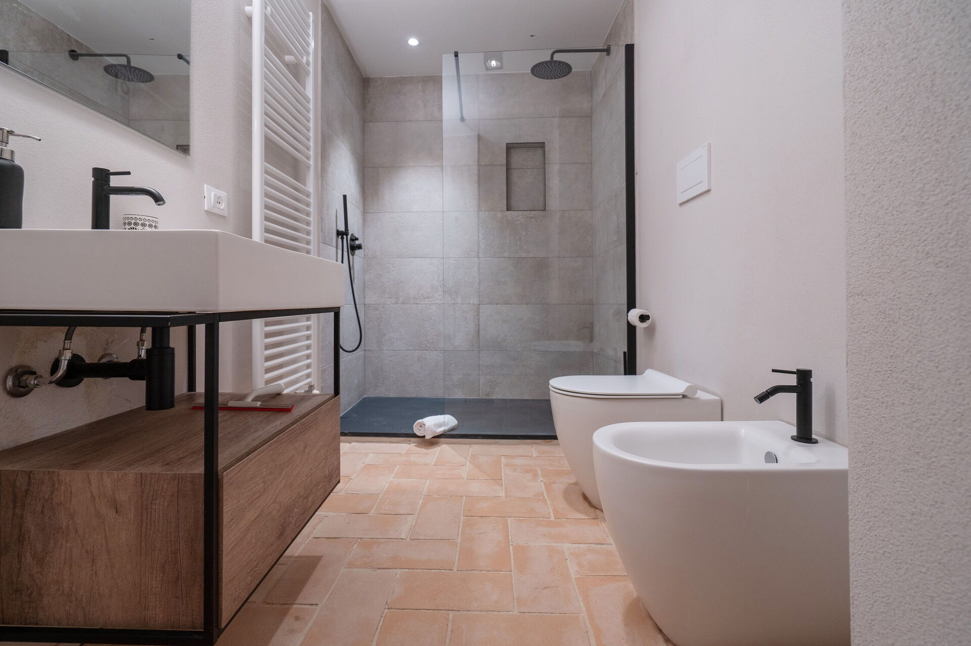 Bagno 1 (10 m2): lavandino, wc, bidet, doccia, asciugacapelli.