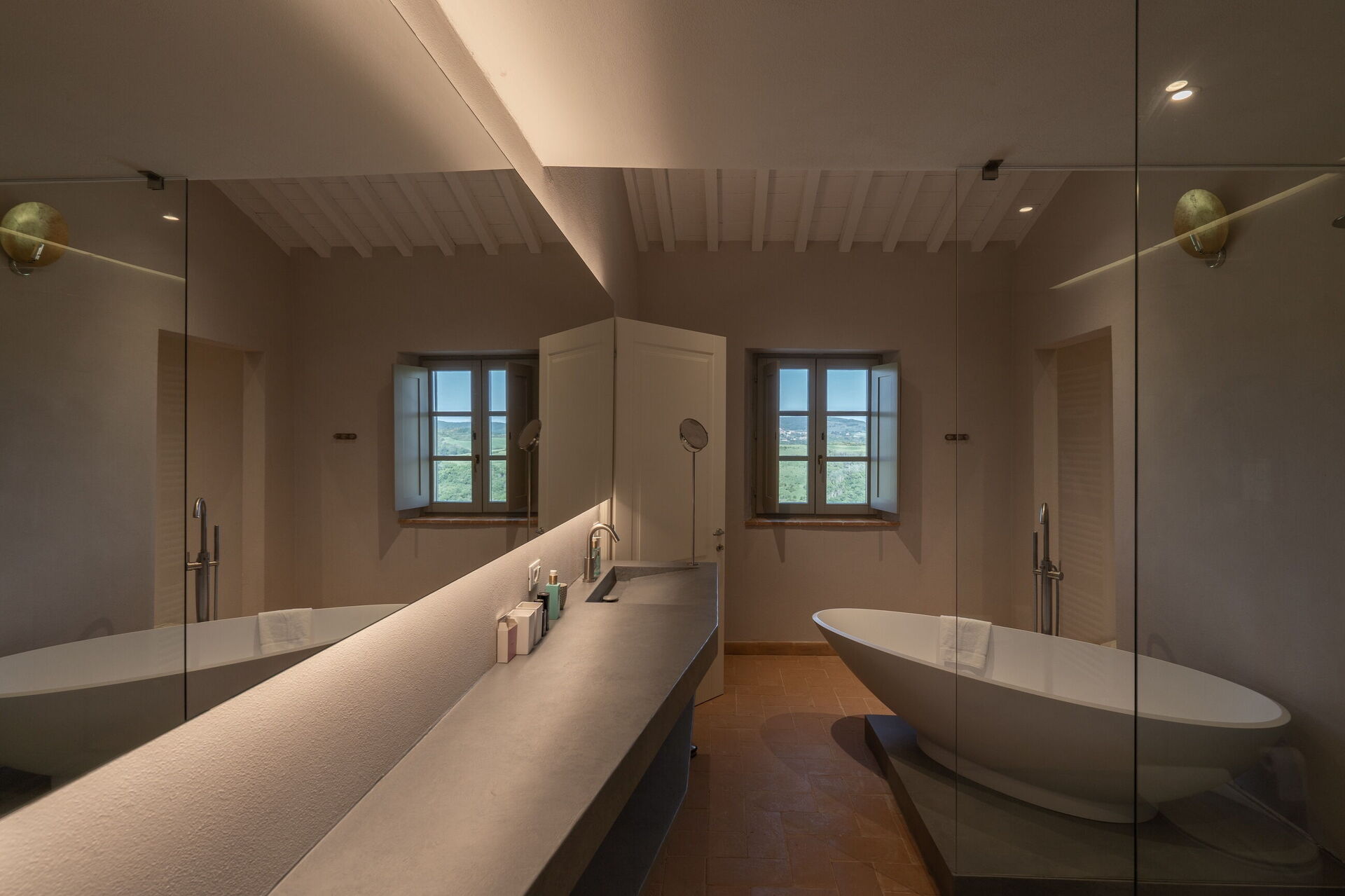Comprende: 2 camere da letto con bagno, 2 camere da letto, bagno, open space, studio.