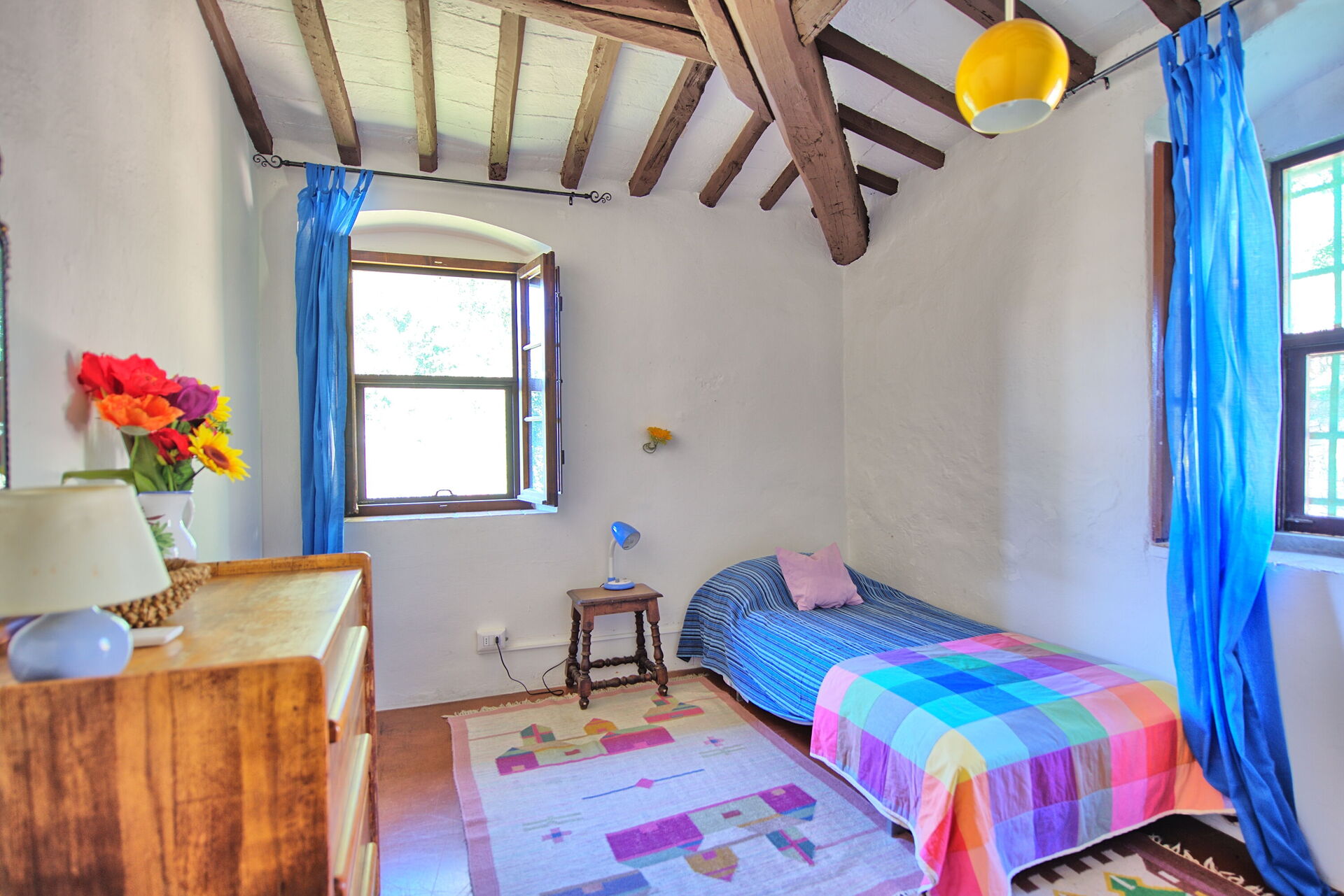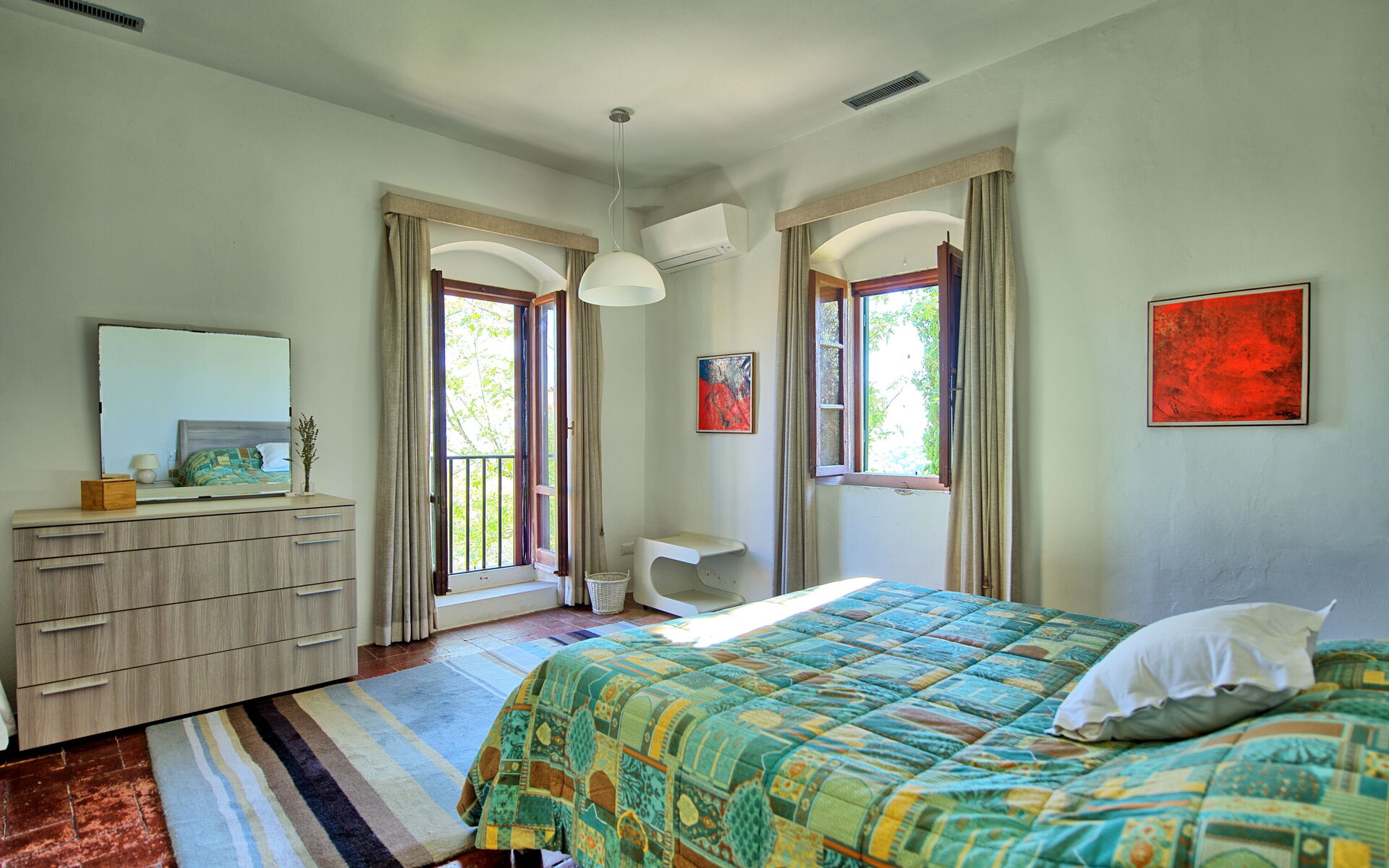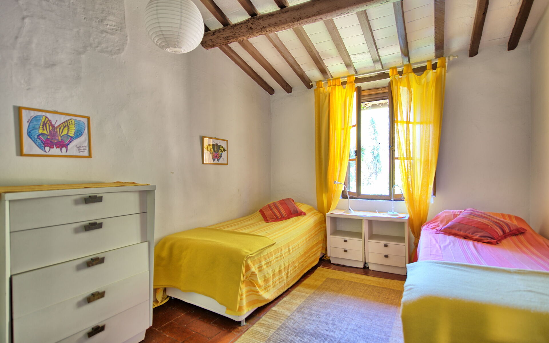 Primo piano: si salgono 12 gradini, si accede ad un pianerottolo, alla sua destra si trova una camera da letto matrimoniale ed una seconda camera con letto alla Francese, queste due camere sono servite dal bagno con doccia che si trova adiacente alle due camere. Nella parte opposta del pianerottolo si trovano una camera da letto matrimoniale con accesso diretto sul giardino (scendendo delle scale); camera da letto con due letti singoli; camera da letto con un letto singolo; le tre camere sono servite dal bagno con doccia che si trova adiacente ad esse.