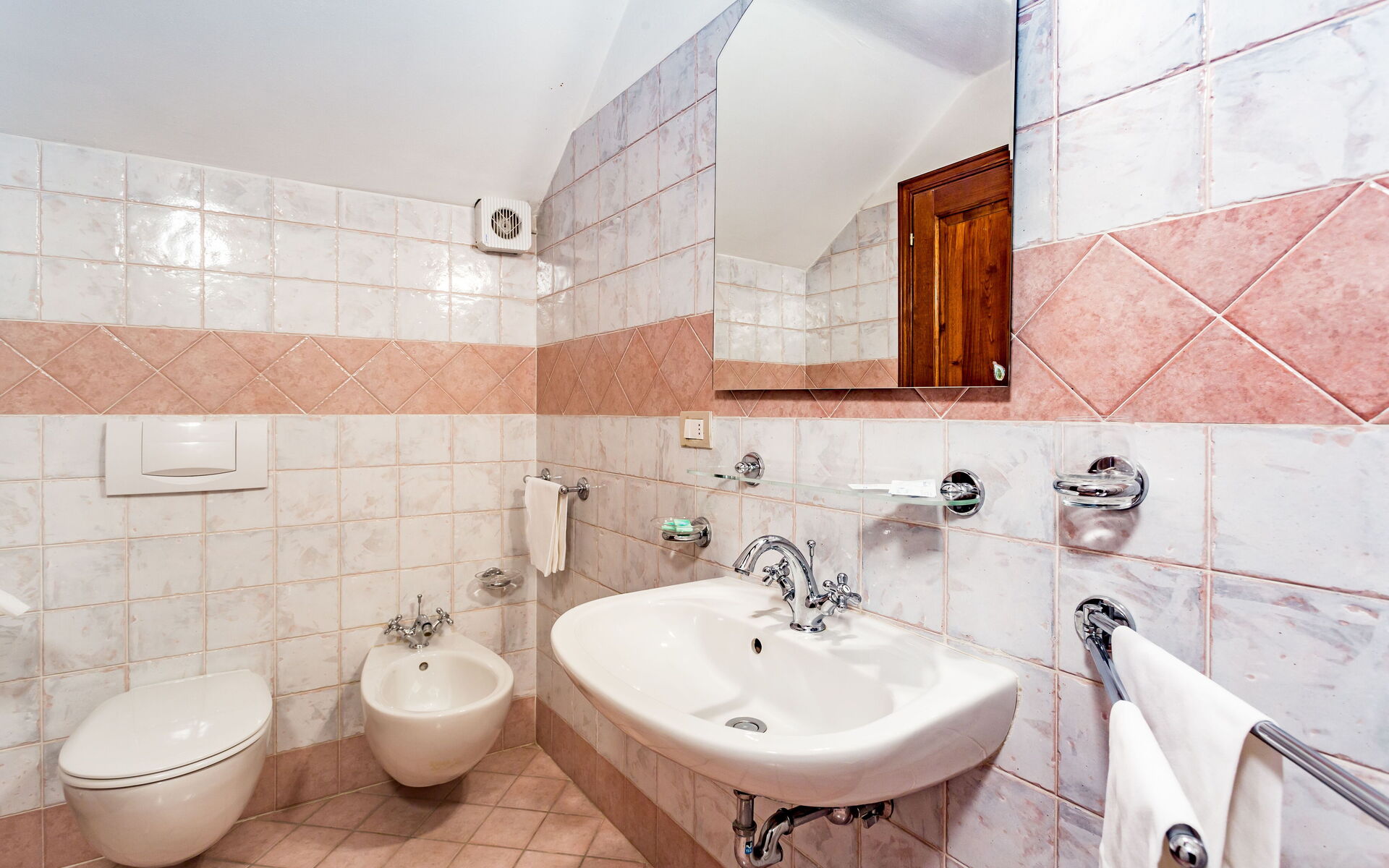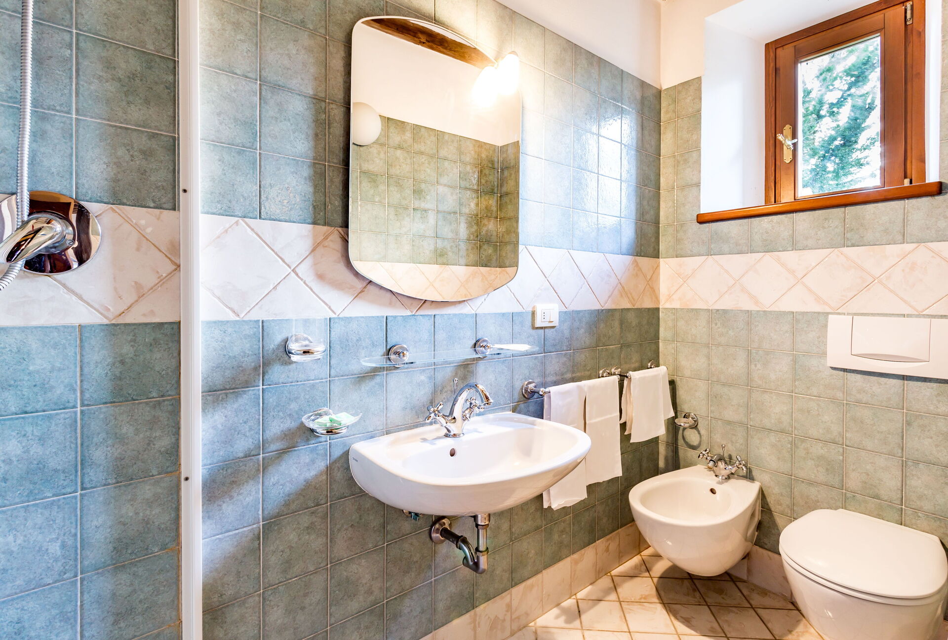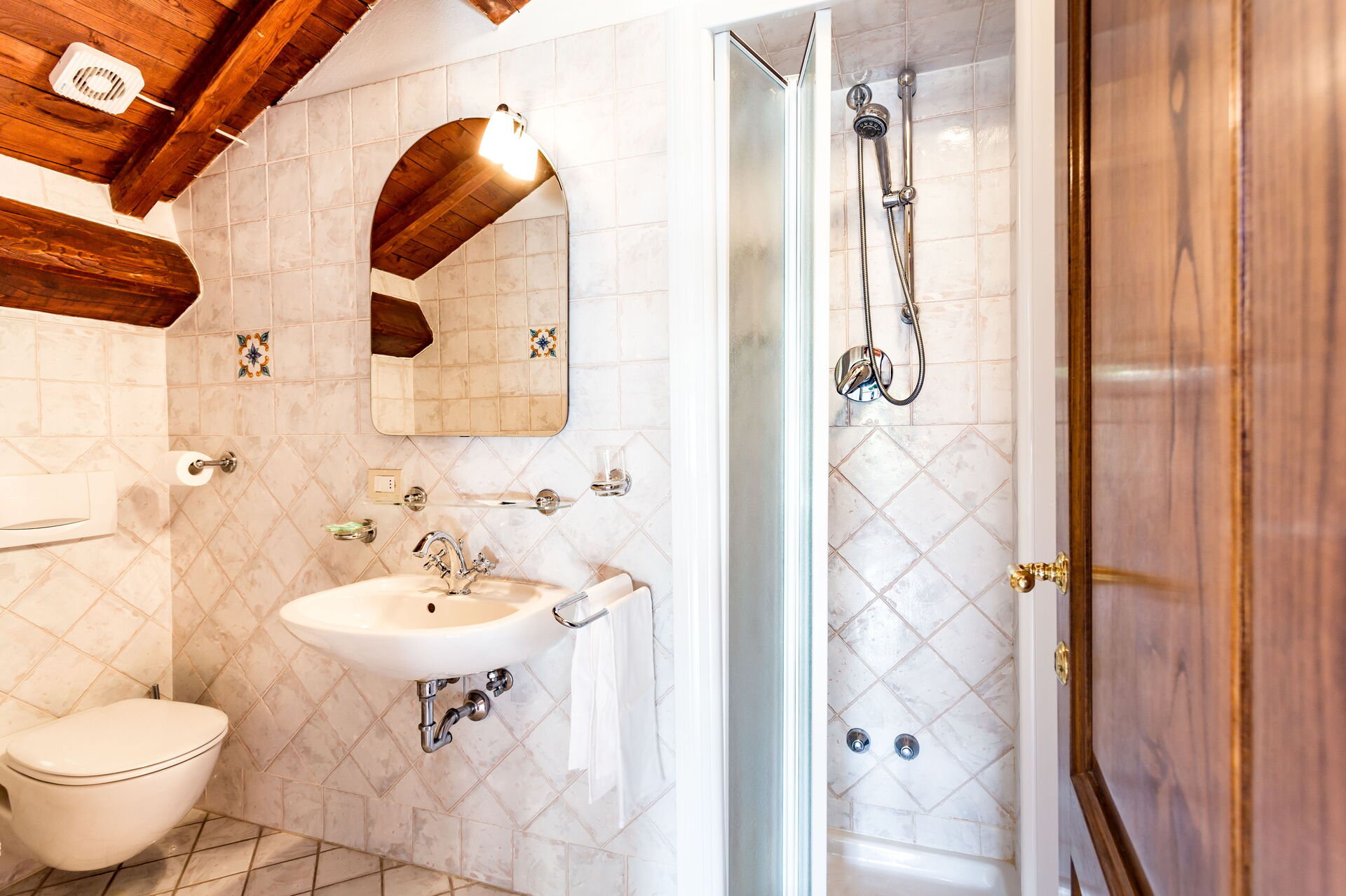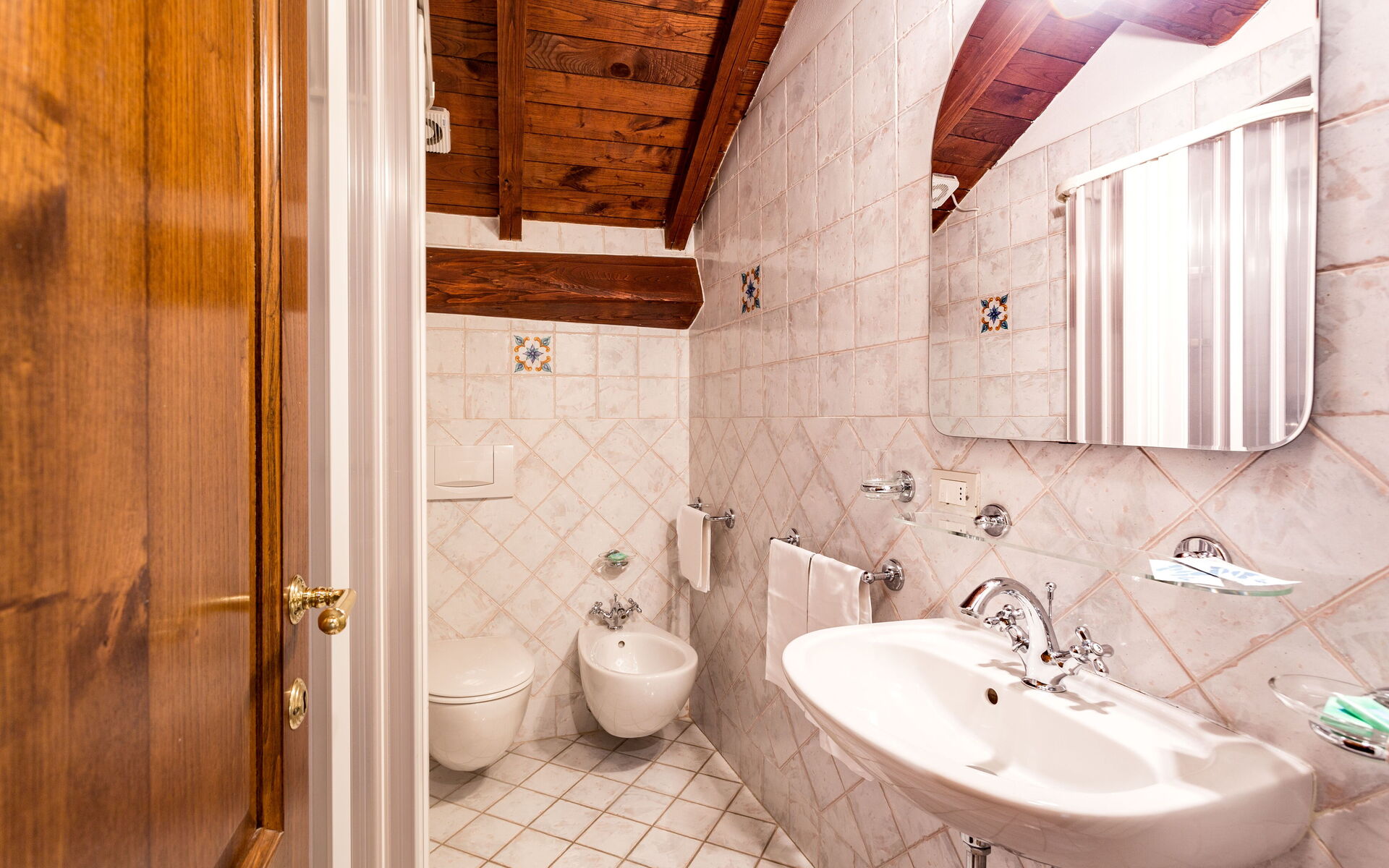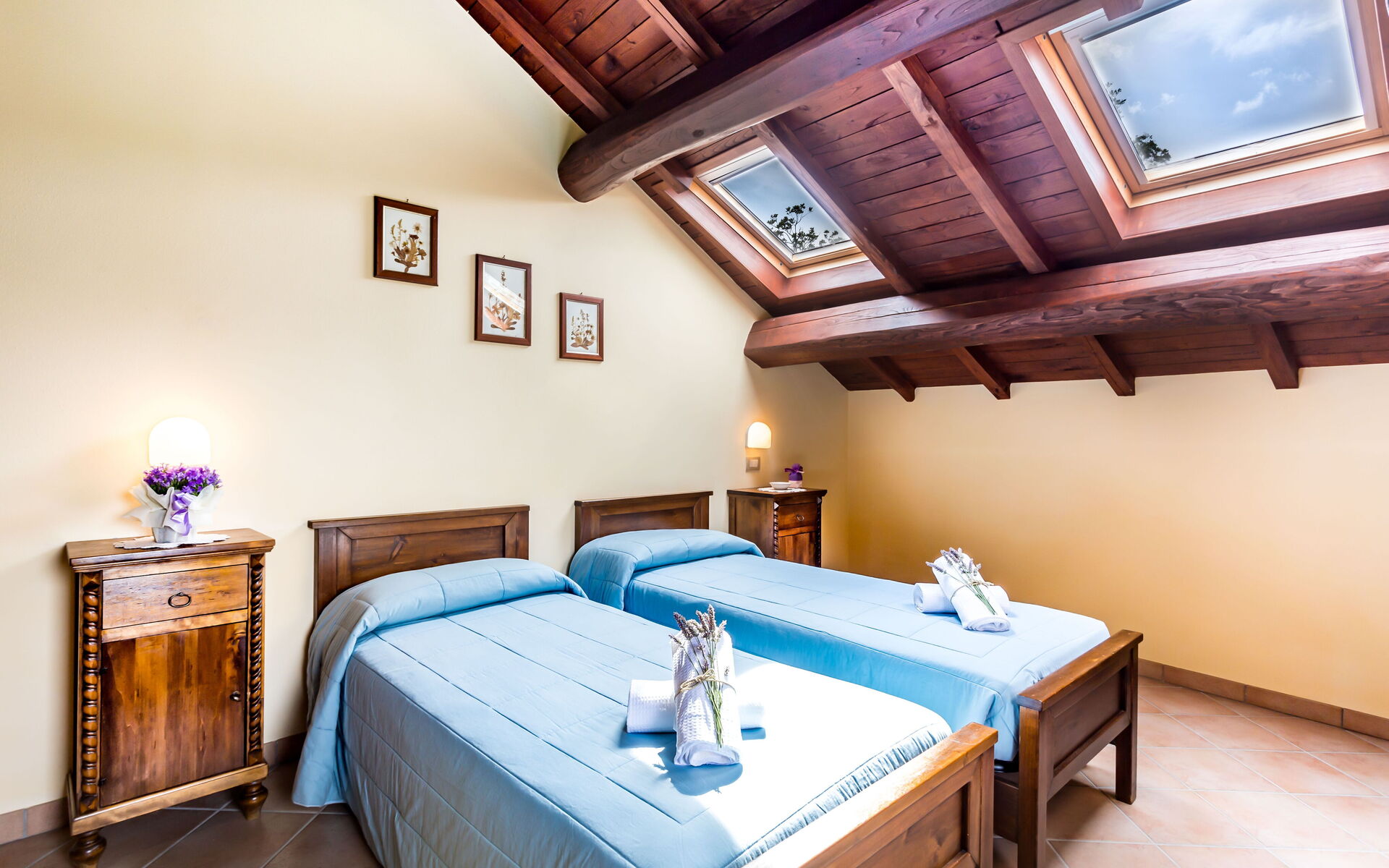 Al piano secondo: 1 camera doppie con letto matrimoniale con bagno con doccia (wc/bidet); 1 camera doppia con 2 letti singoli con bagno con doccia (wc/bidet);