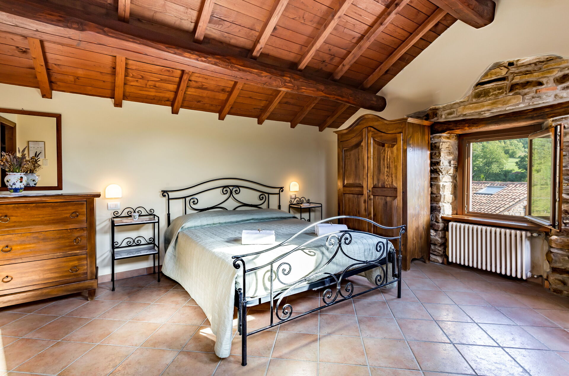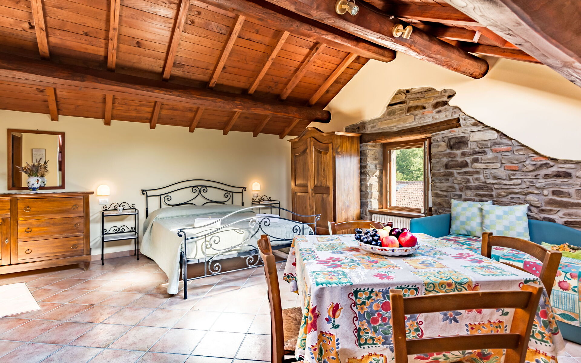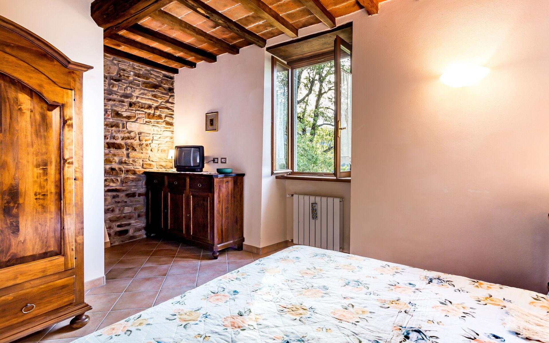 Nella proprietà è situata una colonica con 4 camere doppie (2 con bagno in camera e le altre 2 con un bagno in comune) che può essere utilizzata se i clienti superano il numero massimo della capacità, ma deve necessariamente essere richiesta al momento della prenotazione.