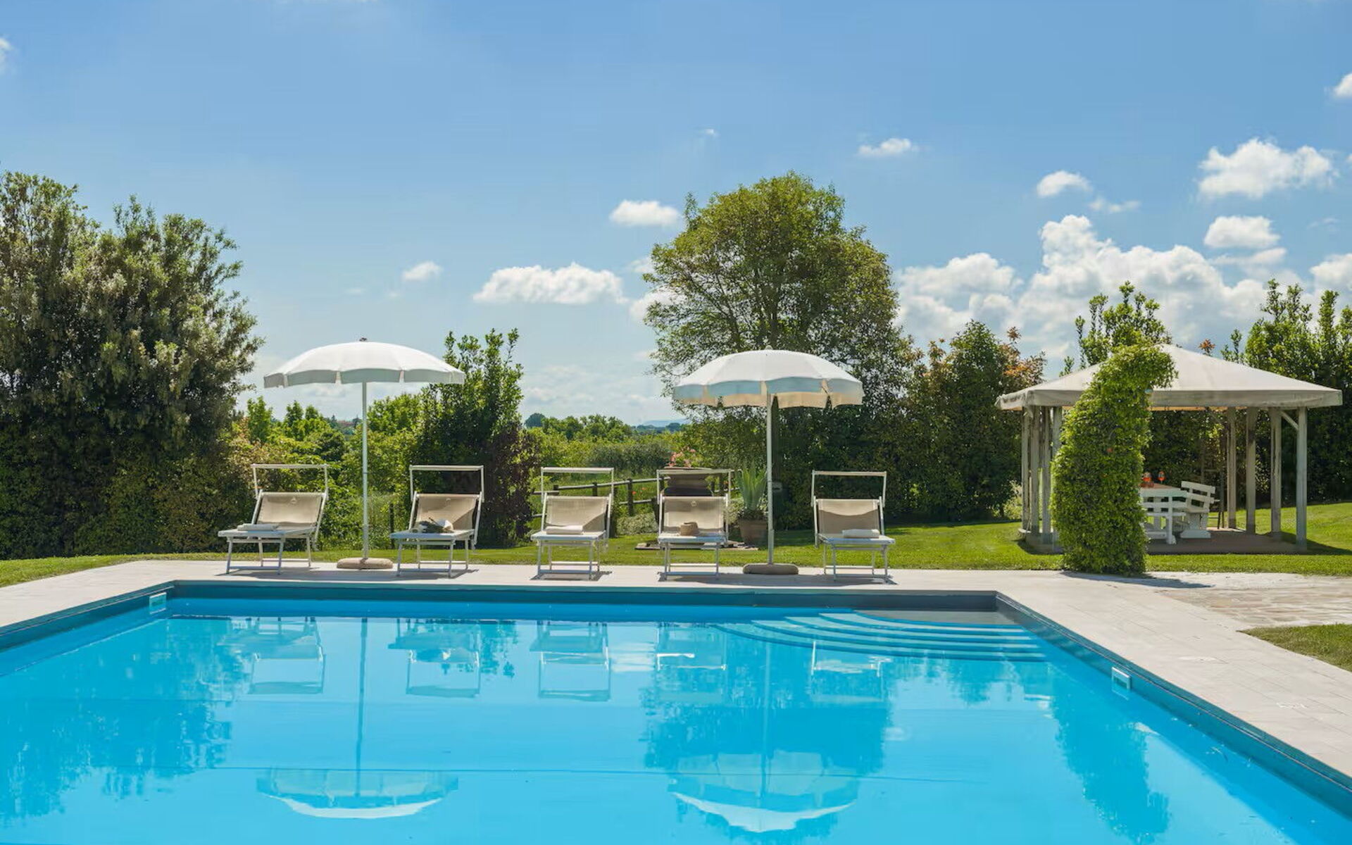 La proprietà è composta da 8 appartamenti (non collegati internamente) e viene affittata ad uno stesso gruppo di ospiti in modo da avere l'uso esclusivo della piscina e degli spazi esterni.