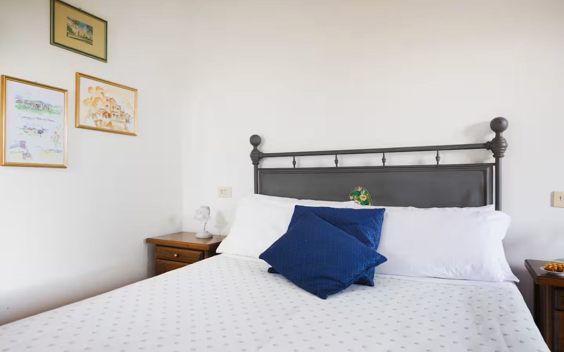 Secondo piano: soggiorno con angolo cottura, camera matrimoniale (aria condizionata), bagno con doccia.