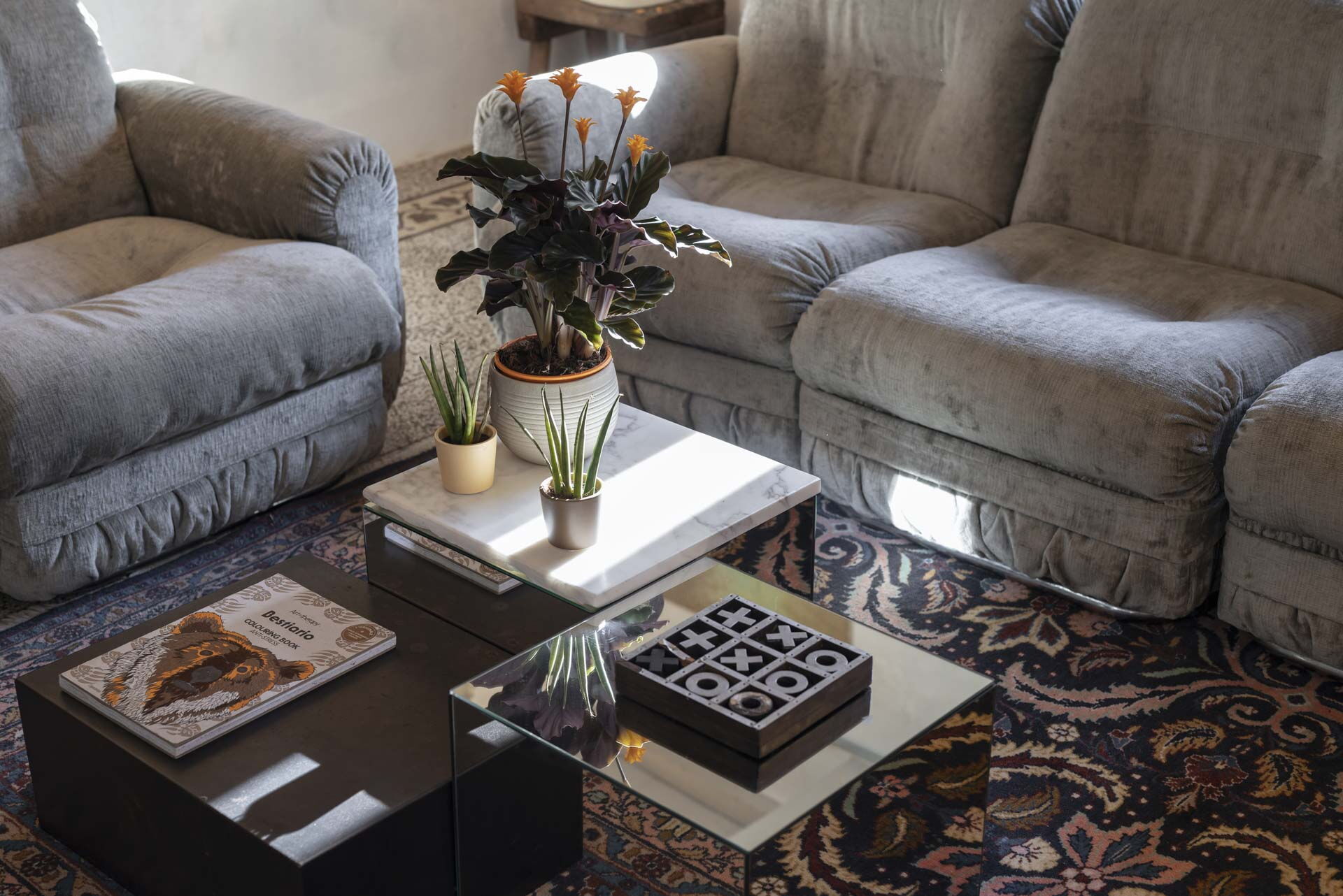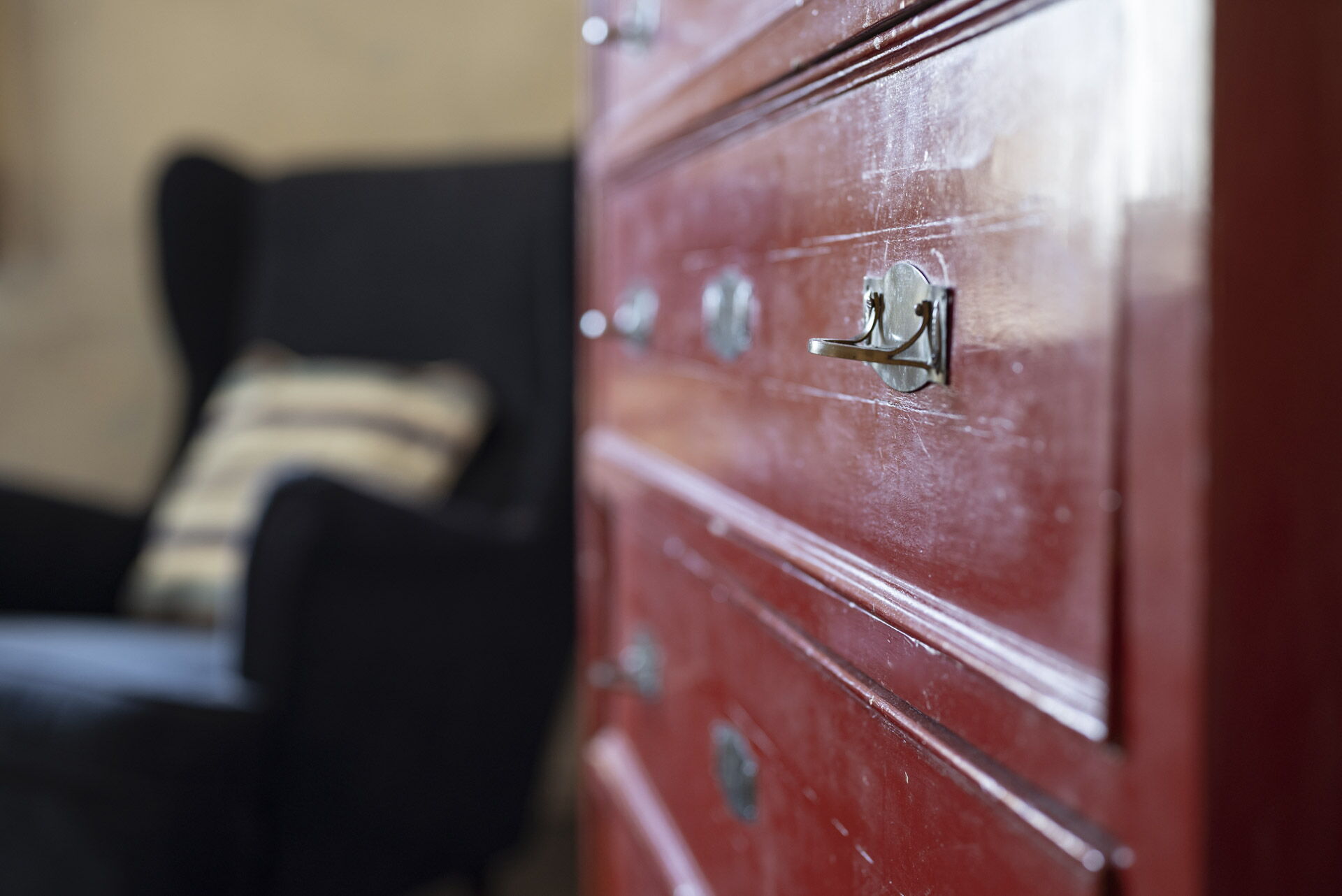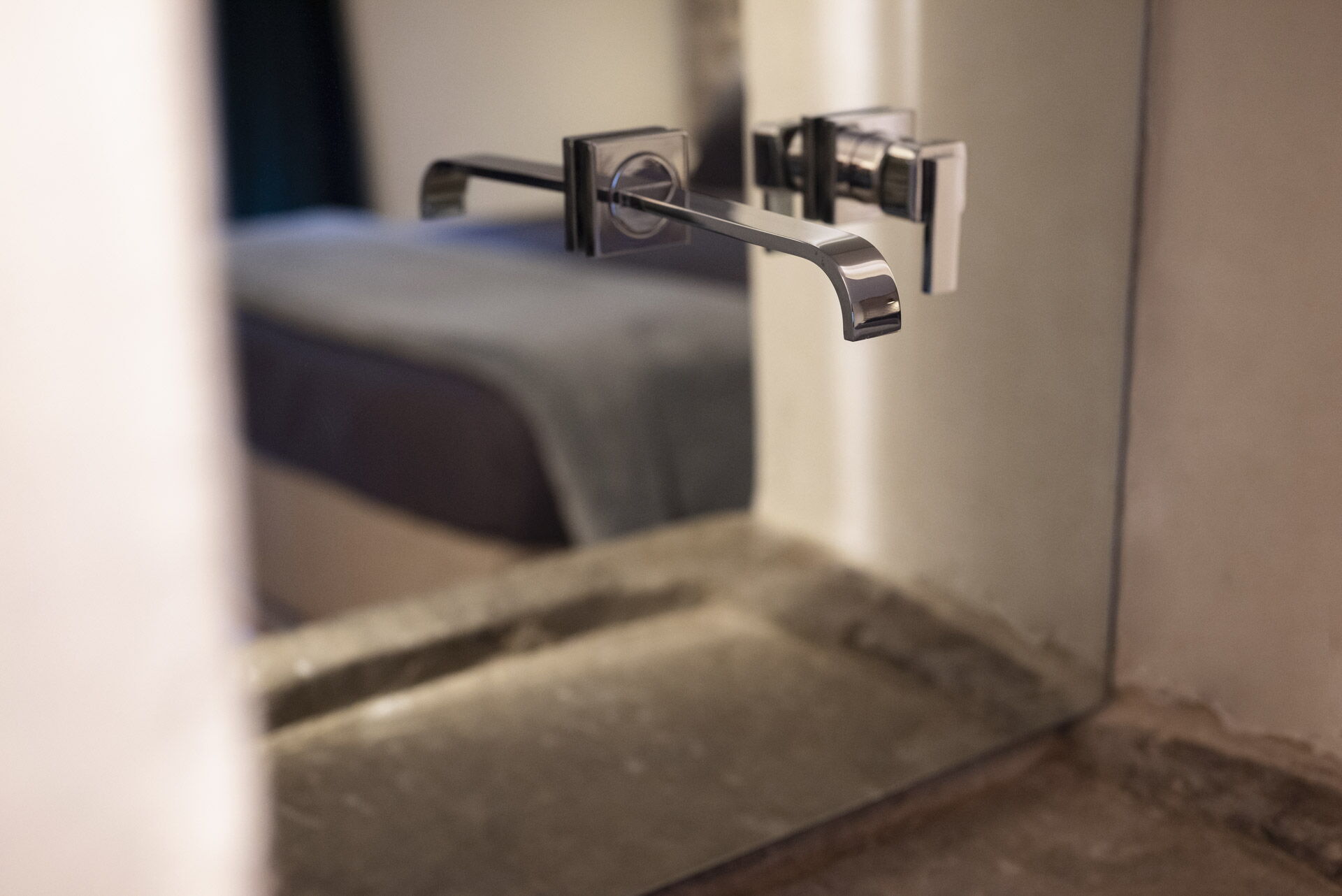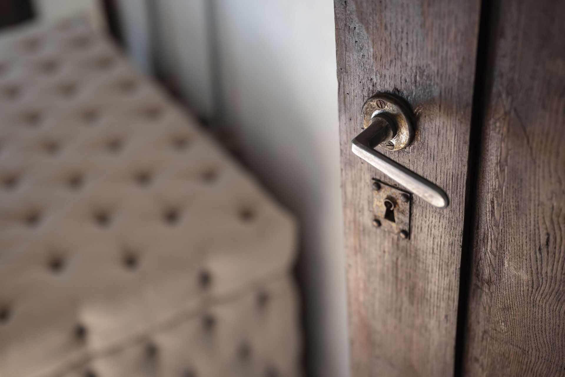 Il primo piano ospita anche la suite matrimoniale, 'Il Baule'. Il letto vanta un pannello in capitonné che copre l'intera parete, intessuto con vecchi telai a mano, e lampade realizzate con bossoli della Prima Guerra Mondiale, un'eredità di famiglia. La camera dispone di un bagno con una doccia particolare. Il lavandino, realizzato in pietra (pietra serena), rimane nella sua posizione originale e le pareti sono adornate con resina di 'pietra scura' coperta di specchi antichi.