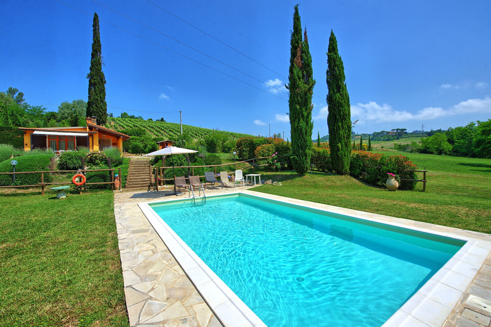 Confortevole casa indipendente con piscina privata situata a breve distanza dal paese di medievale di Certaldo, caratteristico borgo nella provincia di Firenze. La casa è stata ristrutturata nel 2008 ed è molto accogliente e arredata in modo confortevole. Il giardino di circa 1 ettaro ospita anche una bella piscina completamente recintata. A pochi metri di distanza scorre un piccolo fiume ed è presente un grazioso lago per gli amanti della pesca sportiva mentre a circa 500 si trova un maneggio per fare lezioni di equitazione o passeggiate a cavallo.