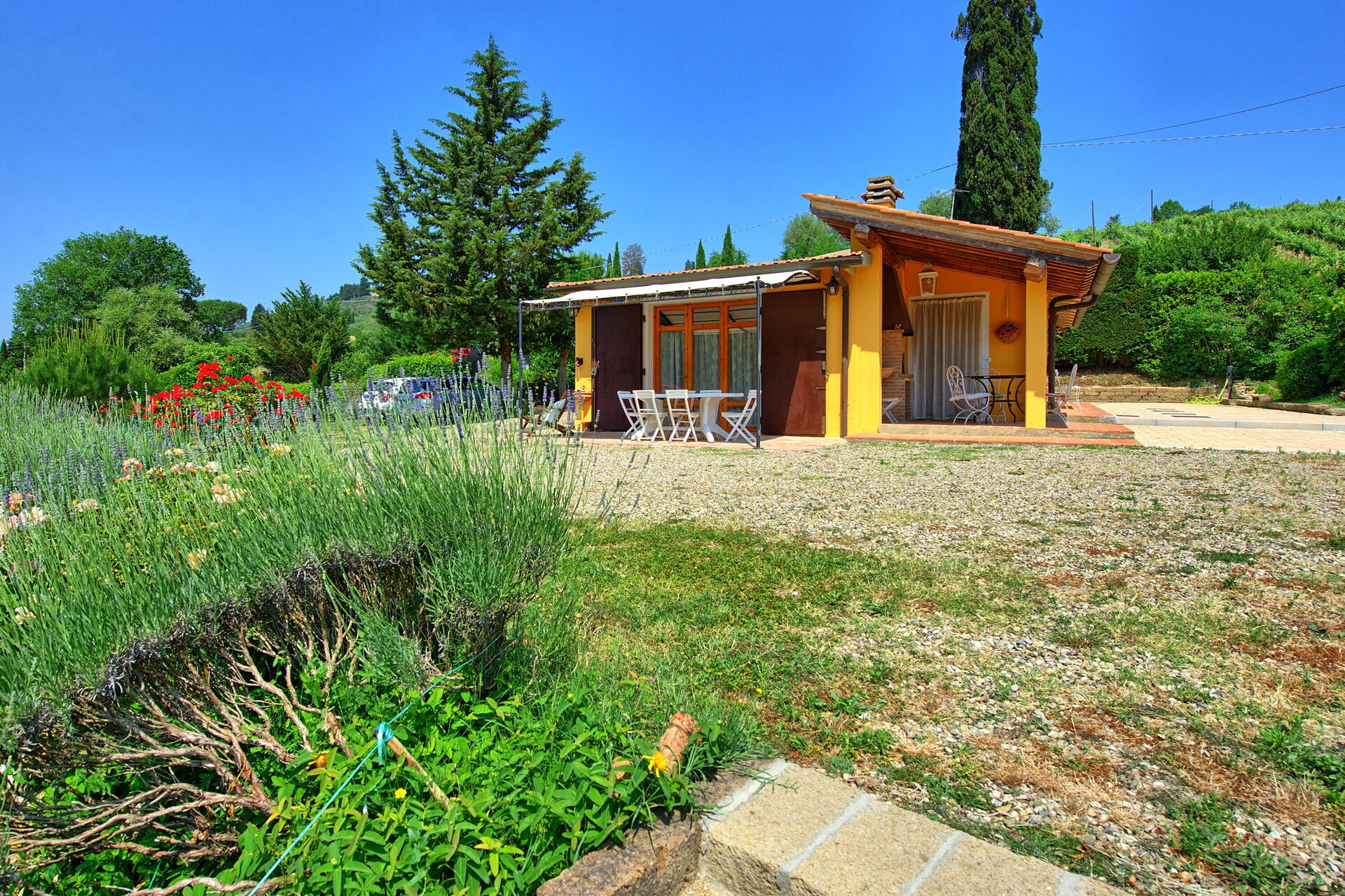 Una strada secondaria che collega i paesi di Certaldo e Marcialla passa dietro alla casa.