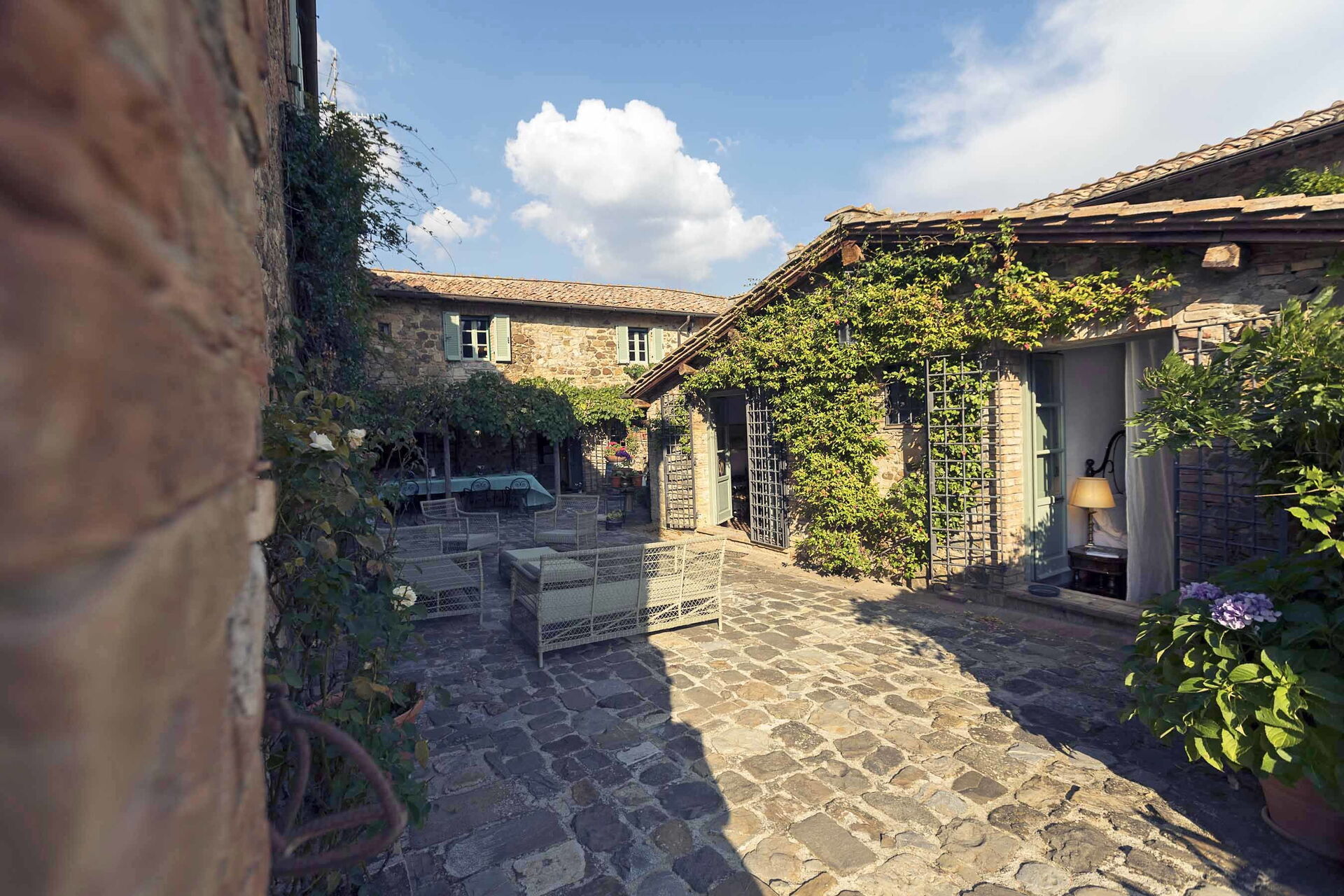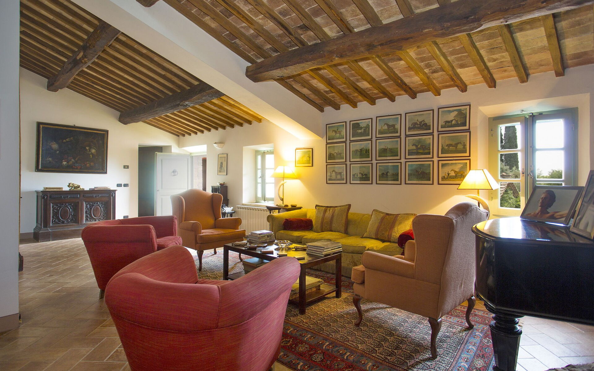Costruito nel '700 come residenza del vicino Castello di Argiano, l'edificio è caratterizzato da una struttura ad U e si sviluppa attorno ad una corte centrale. Gli spazi interni sono accentuati della presenze di soffitti con volte altissime.