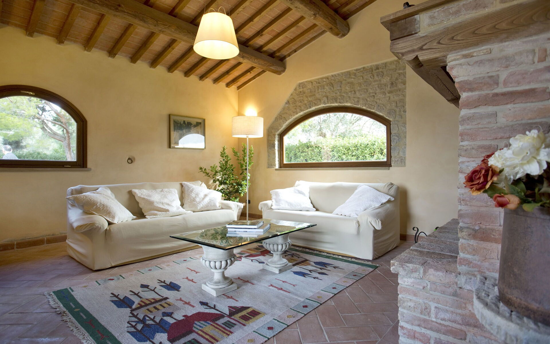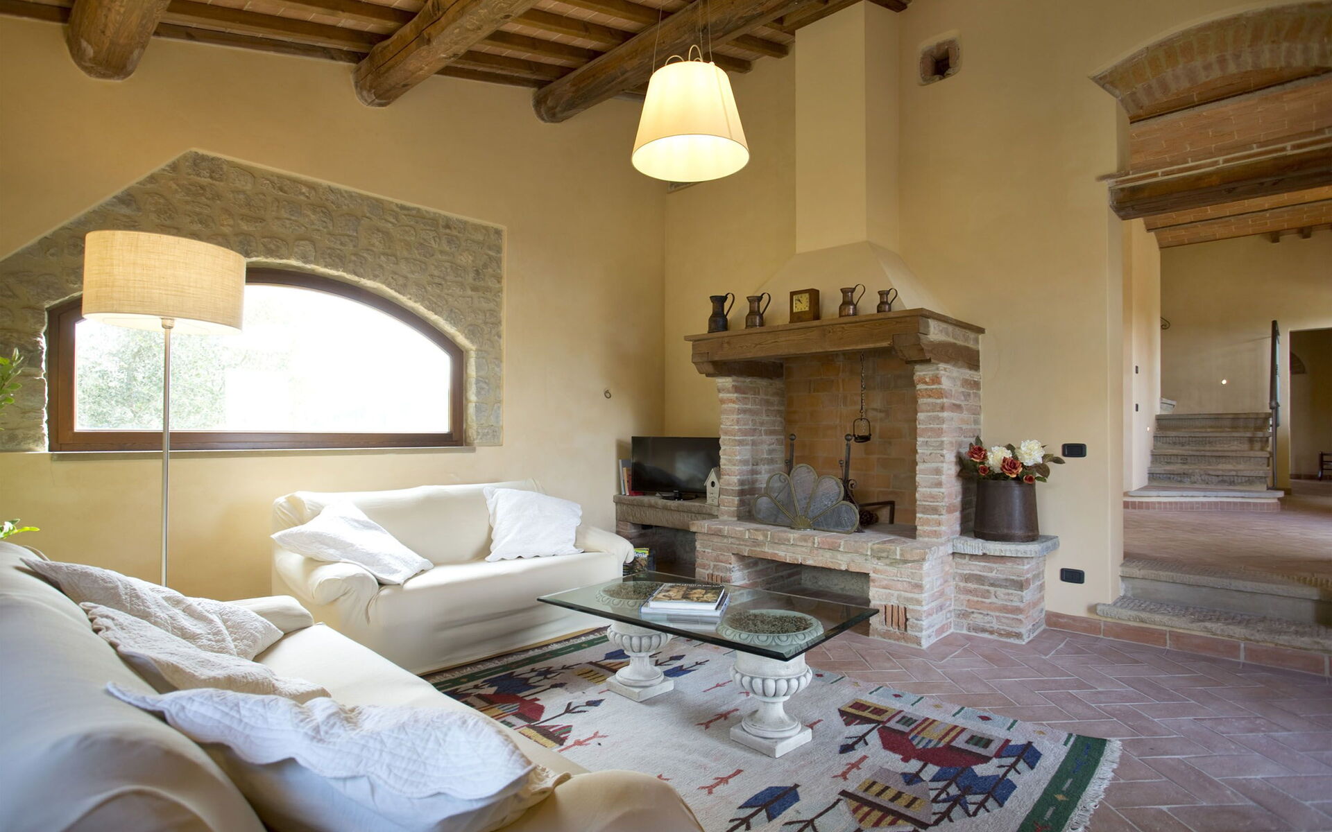 Soggiorno: due divani (persone: 5), caminetto, internet WIFI, tv satellitare, televisione, vcr / dvd, stereo hifi, uscita sul giardino.