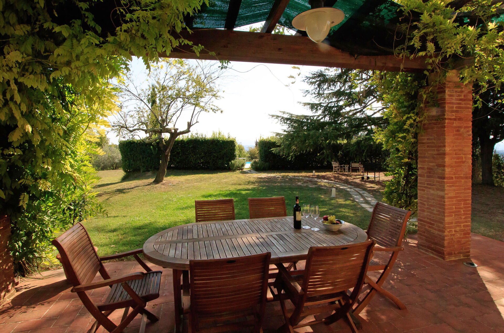 Una volta arrivato a Villa Alice troverai una elegante casa vacanze, pulita e tenuta in ottime condizioni con vista sulle colline, ideale per una tranquilla vacanza in Toscana. A prescindere da come trascorrerai le tue giornate - imbarcandoti in gite fuori porta, visitando i più famosi musei della zona, facendo shopping o semplicemente guidando nell'entroterra, quando arriverai a casa la sera avrai la possibilità di riposarti con famiglia e amici a bordo piscina concludendo in bellezza un altro fantastico giorno di vacanza in Toscana. Avrai a tua disposizione all'aperto anche un patio e un barbecue. Mangiare in compagnia di famiglia e amici è un grosso aspetto della cultura toscana. Approfitta della cucina ben accessoriata per preparare pasti utilizzando prodotti locali freschi e genuini mentre ti trovi in vacanza. La cucina è provvista di macchinetta del caffè, microonde, fornelli e frigorifero, così come un numero sufficiente di stoviglie e posate per un massimo di sei persone. Pranza o cena all'aperto, il patio completamente accessoriato è la cornice ideale per godersi del buon cibo, la compagnia della propria famiglia o gruppo di amici e l'incantevole clima toscano.