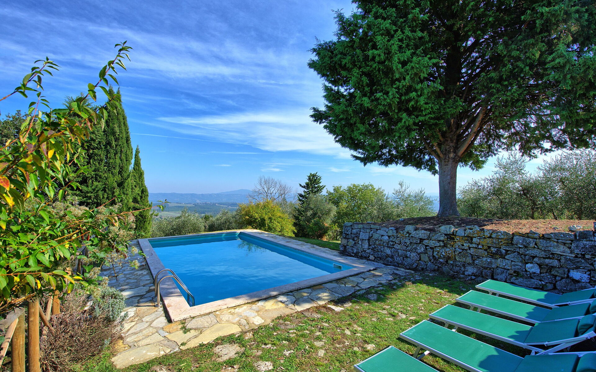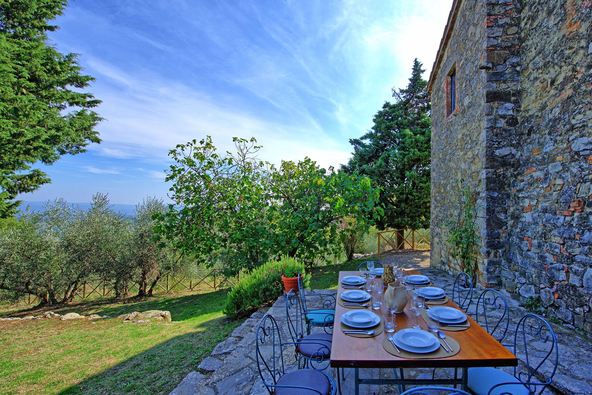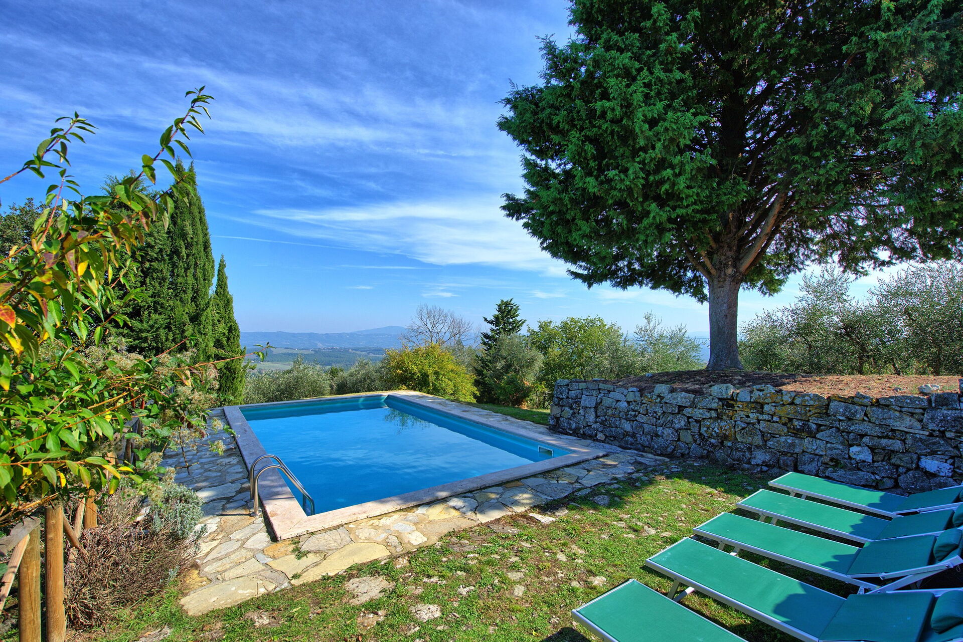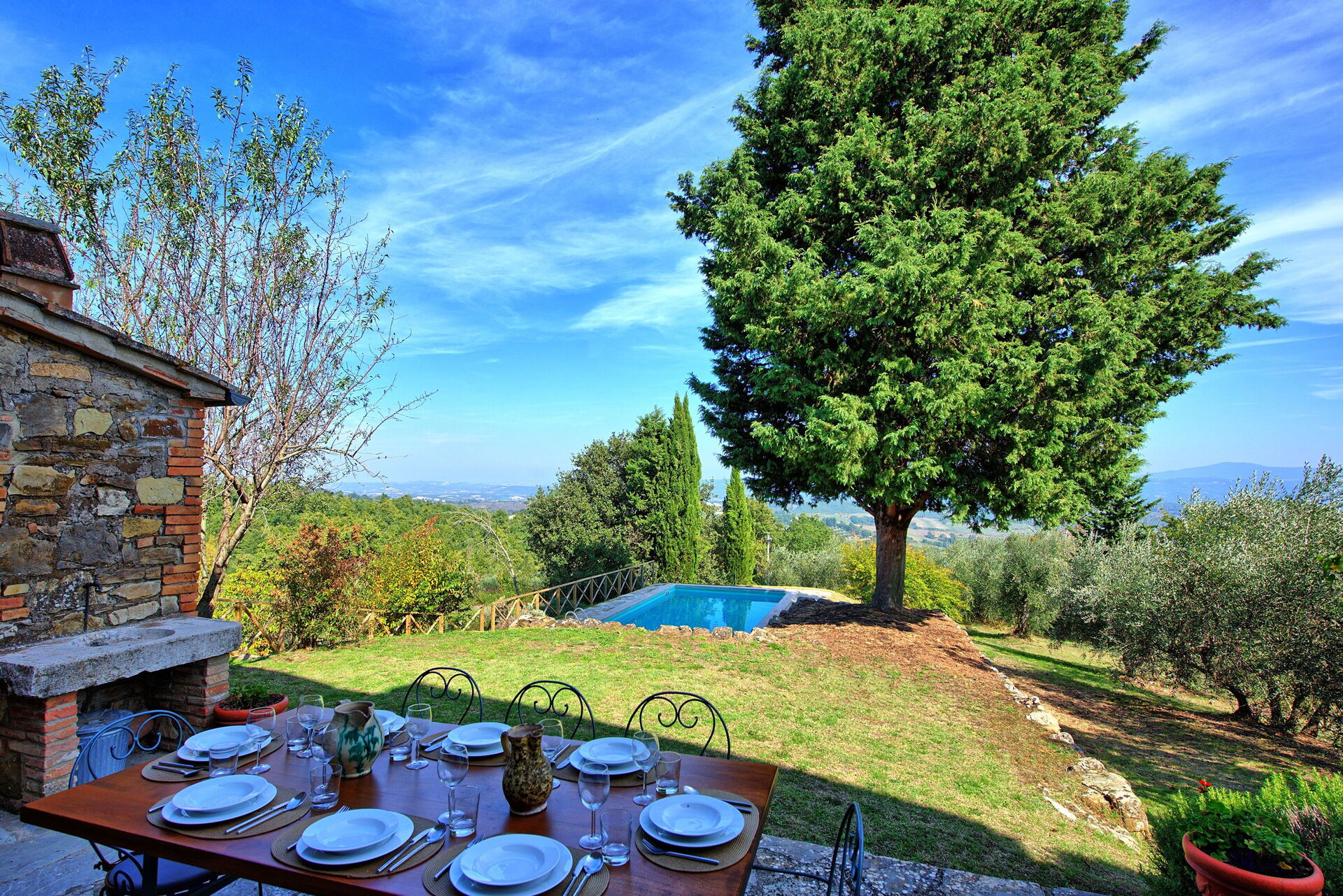 Esternamente, vi è un'area pranzo attrezzata. perfetta per mangiare all'aperto e dotata di tavoli, sedie e barbecue. Il giardino ospita una bellissima e panoramica piscina privata circondata da un solarium con lettini per rilassarsi sotto il sole della Toscana durante le calde giornate estive.