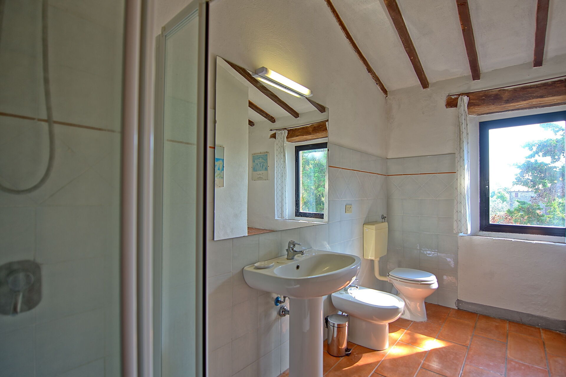 Primo piano: camera matrimoniale (aria condizionata), bagno con doccia, soggiorno con camino e accesso sull' esterno, piccolo angolo cottura, camera matrimoniale (aria condizionata) con bagno privato con doccia, camera matrimoniale (aria condizionata) con bagno privato con vasca, camera con due letti singoli (aria condizionata), camera matrimoniale (aria condizionata) con bagno privato con doccia.