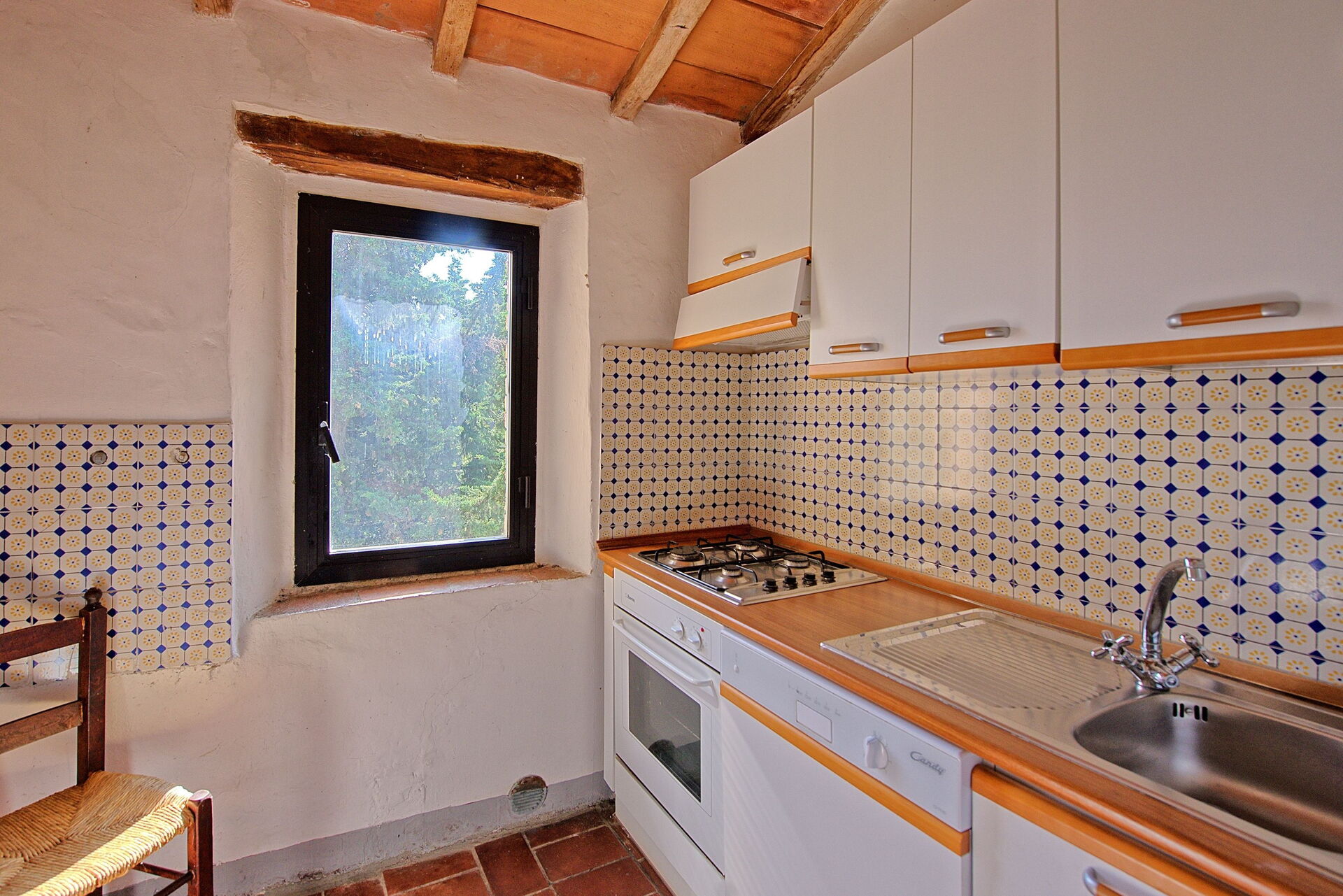 Piano terreno: zona giorno con soggiorno con camino (TV), zona pranzo, camera con letto singolo con WC privato e accesso sull'esterno, cucina (forno, lavastoviglie, freezer, frullatore, barbecue) con accesso sull' esterno.