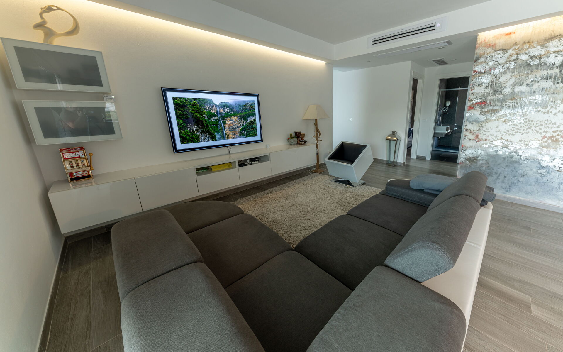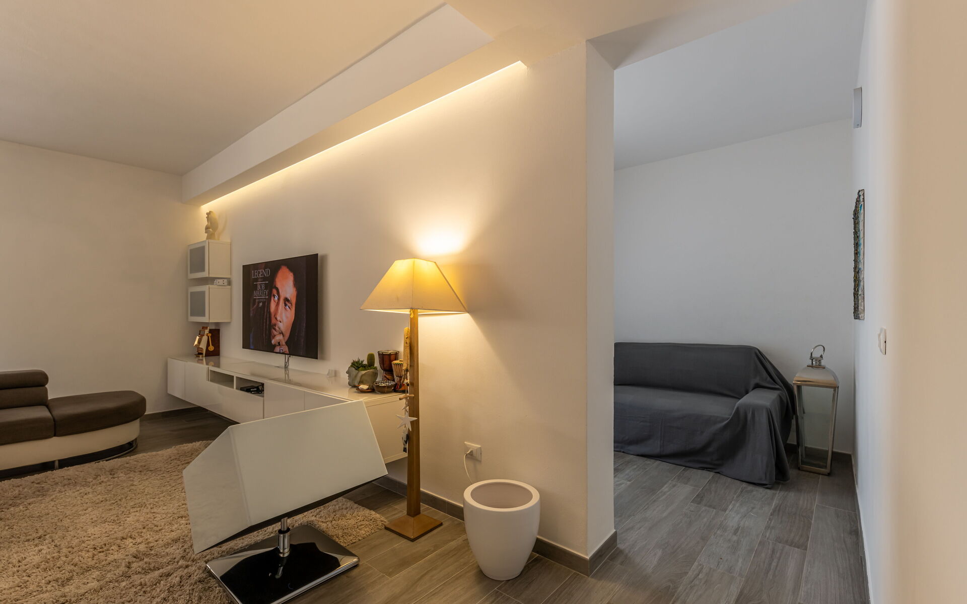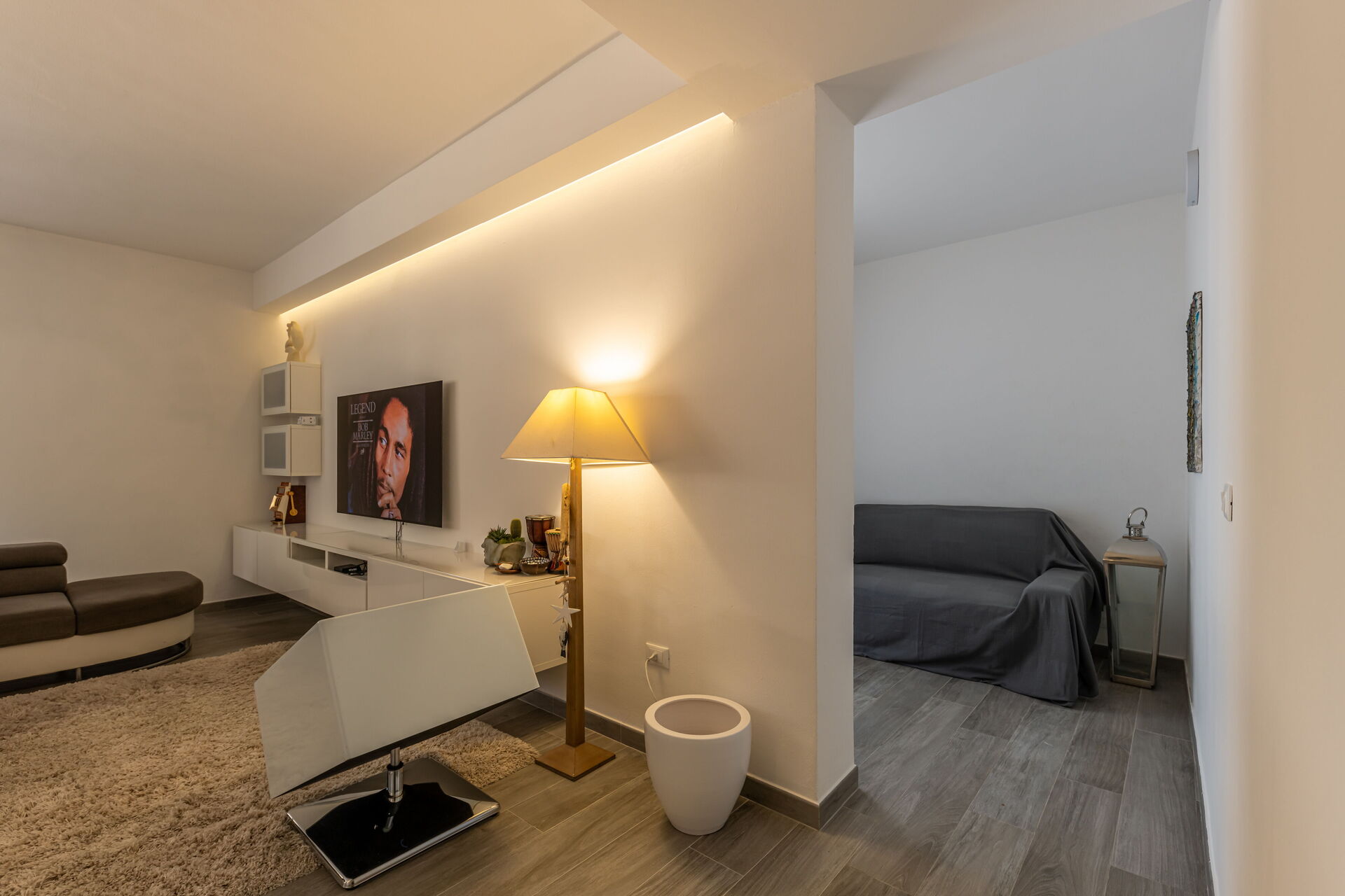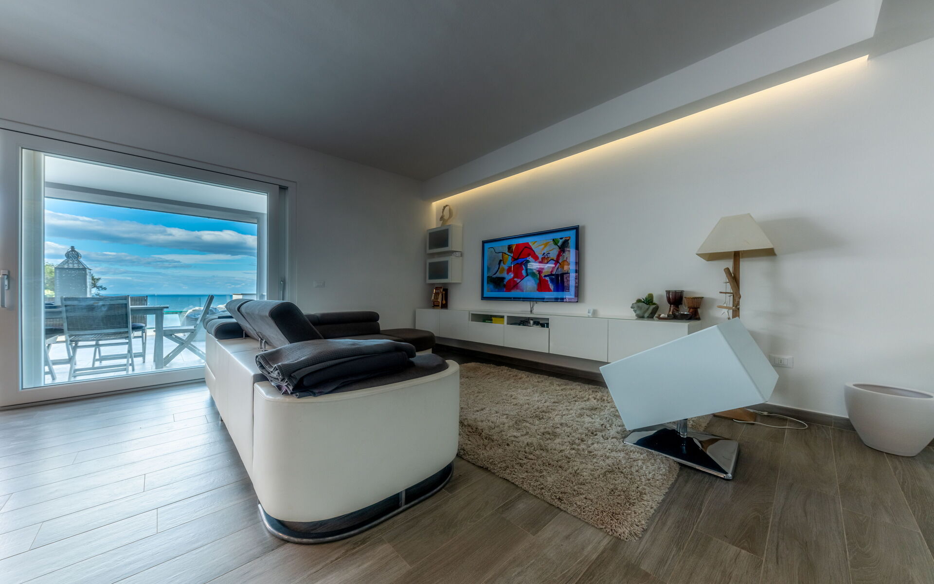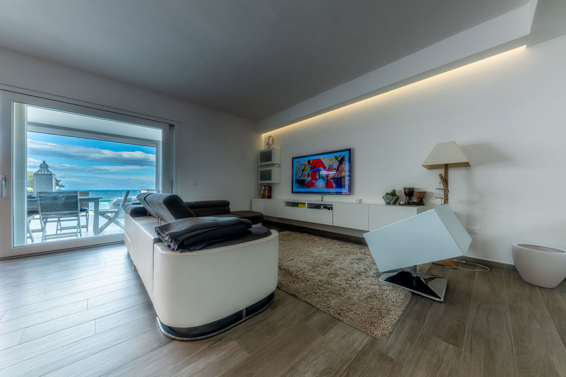 Soggiorno: divano, internet WIFI, aria condizionata, tv satellitare, zanzariere, uscita sul balcone, uscita sul giardino, uscita sulla terrazza.