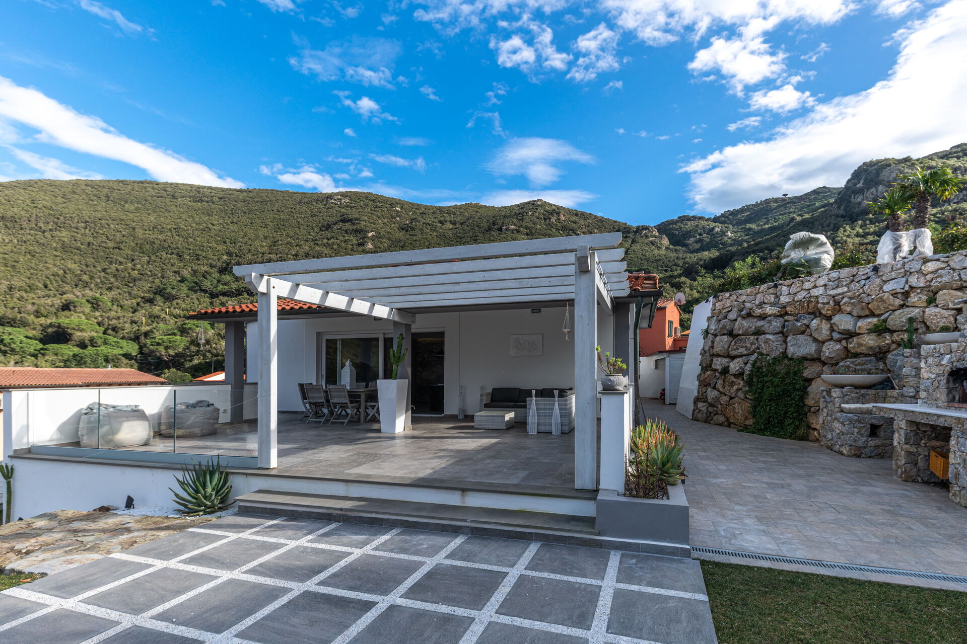 A completamento dello spazio esterno potrete usufruire di barbecue e forno per le pizze interamente realizzato in pietra da un’ artigiano locale con tecnica a scaglia.
