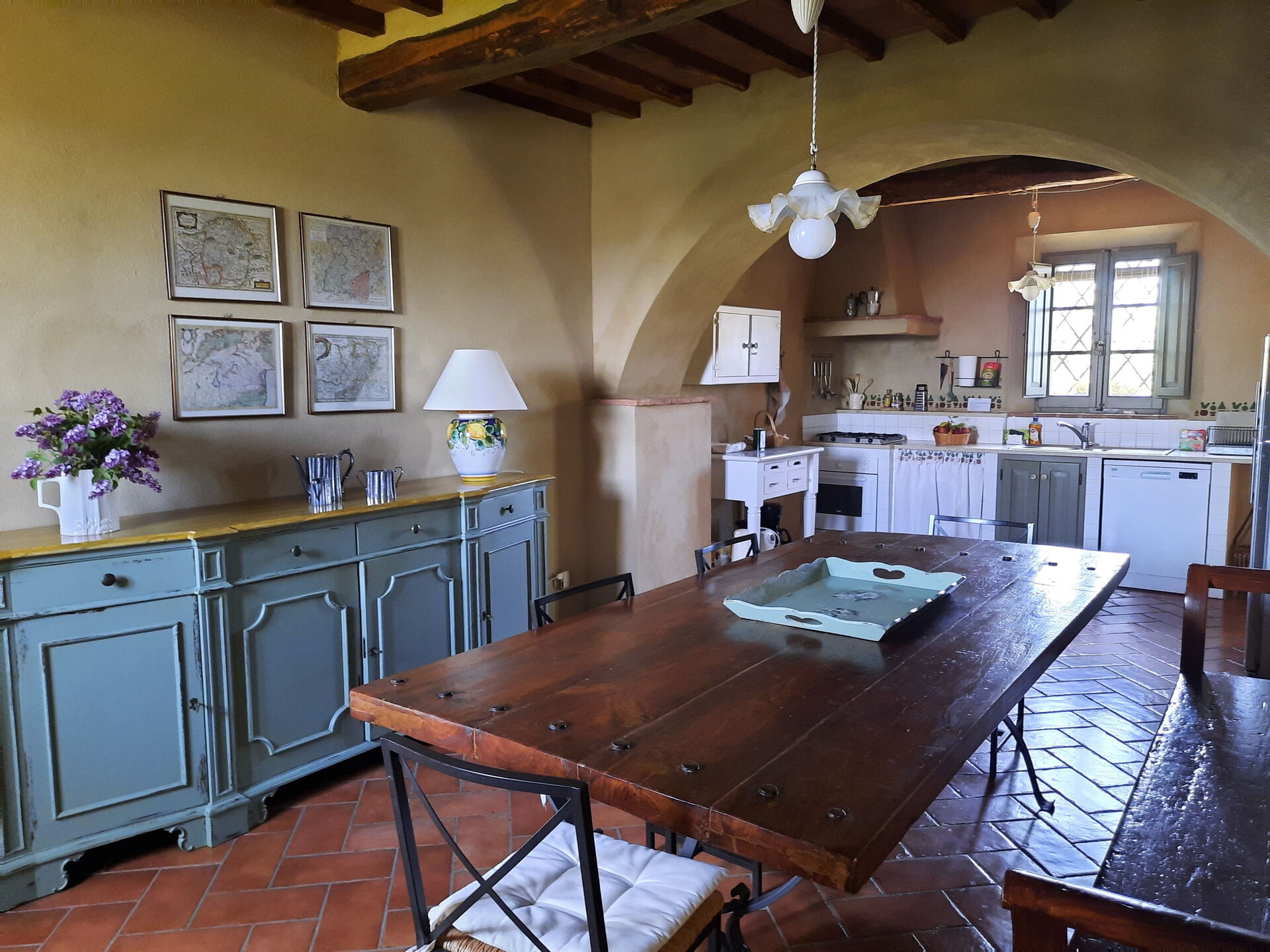 Una volta arrivato troverai una incantevole casa vacanze pulita e in ottime condizioni con vista sulle colline, perfetta per una rilassante vacanza in Toscana. A prescindere da come trascorrerai le tue giornate - visitando i più famosi musei della zona, imbarcandoti in gite fuori porta, facendo shopping o semplicemente guidando nell'entroterra, quando arriverai a casa la sera avrai la possibilità di riposarti con famiglia e amici a bordo piscina concludendo in bellezza un altro fantastico giorno di vacanza in Toscana. All'aperto avrai a tua disposizione anche un patio e un barbecue. Mangiare in compagnia di famiglia e amici è un importante aspetto della cultura toscana. Approfitta della cucina ben accessoriata per preparare pasti utilizzando prodotti locali freschi e genuini mentre ti trovi in vacanza. La cucina è provvista di macchinetta del caffè, microonde, tostapane, fornelli e frigorifero, così come un numero sufficiente di stoviglie e posate per un massimo di dieci persone. Pranza o cena all'aperto, la veranda completamente accessoriata è la cornice perfetta per godersi del buon cibo, la compagnia della propria famiglia o gruppo di amici e il bellissimo clima toscano.