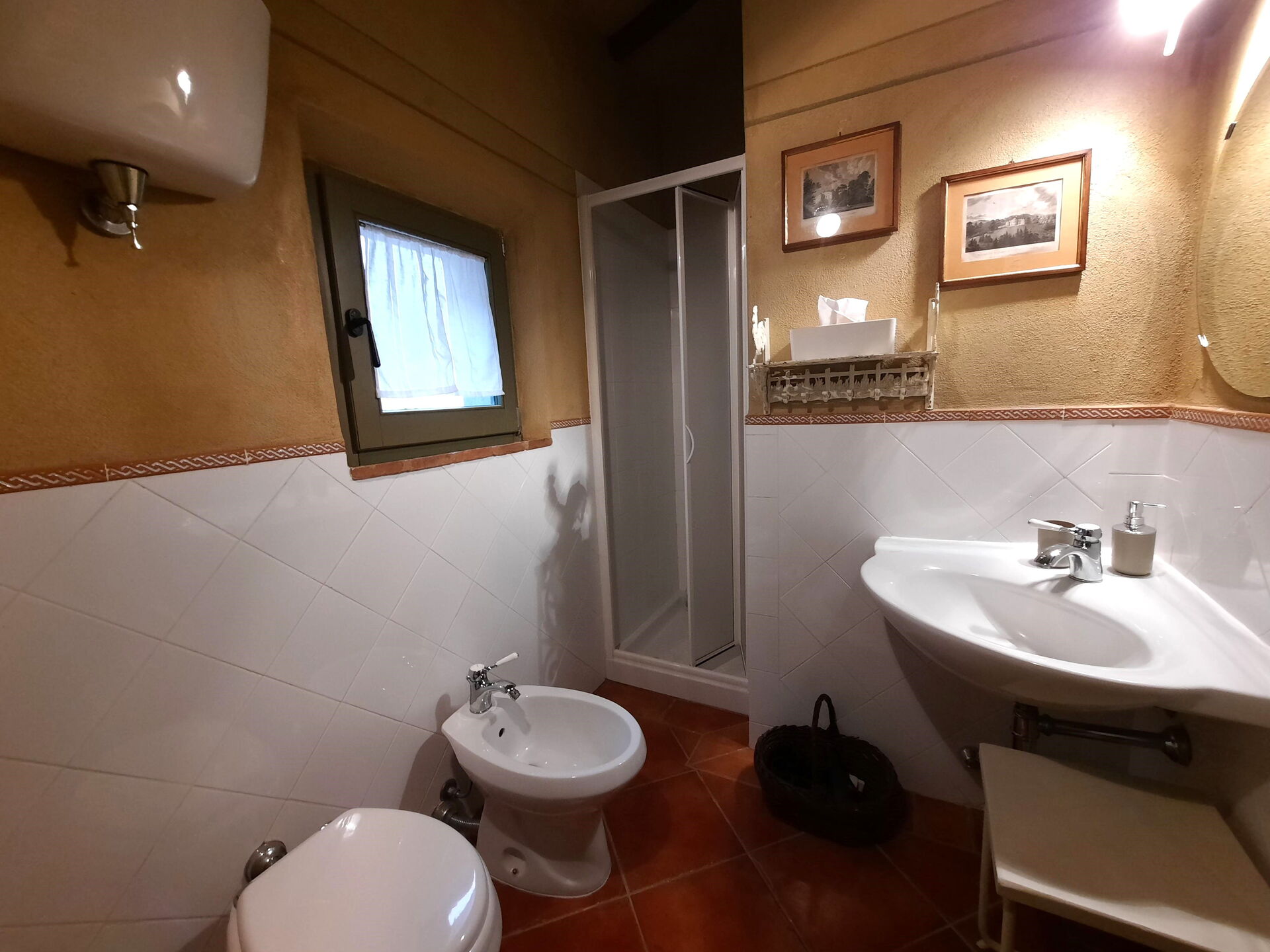 Bagno 2: lavandino, wc, bidet, doccia, asciugacapelli.