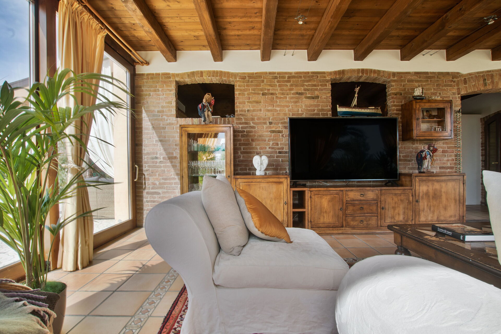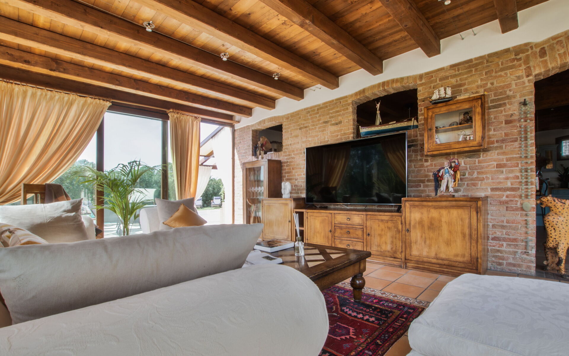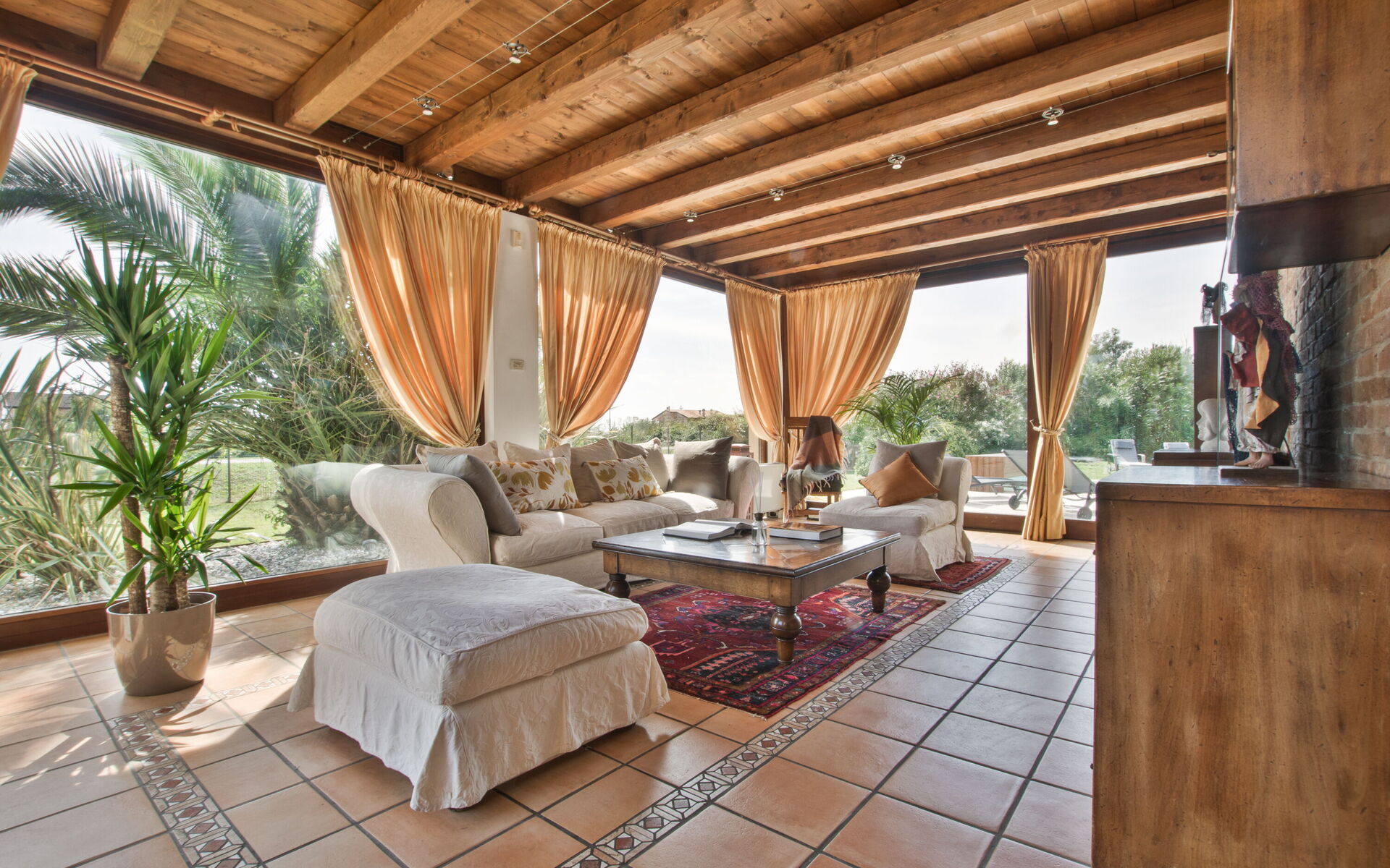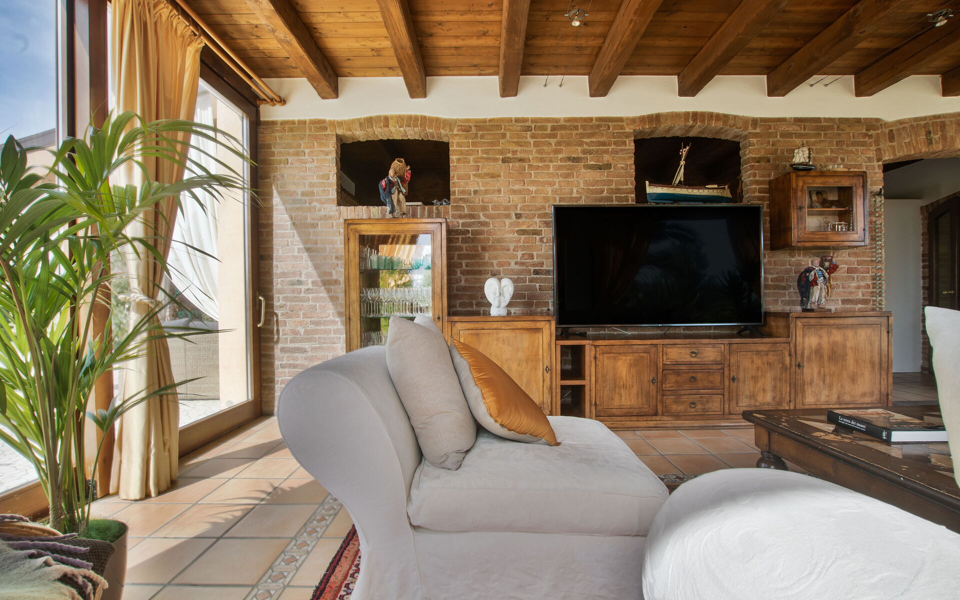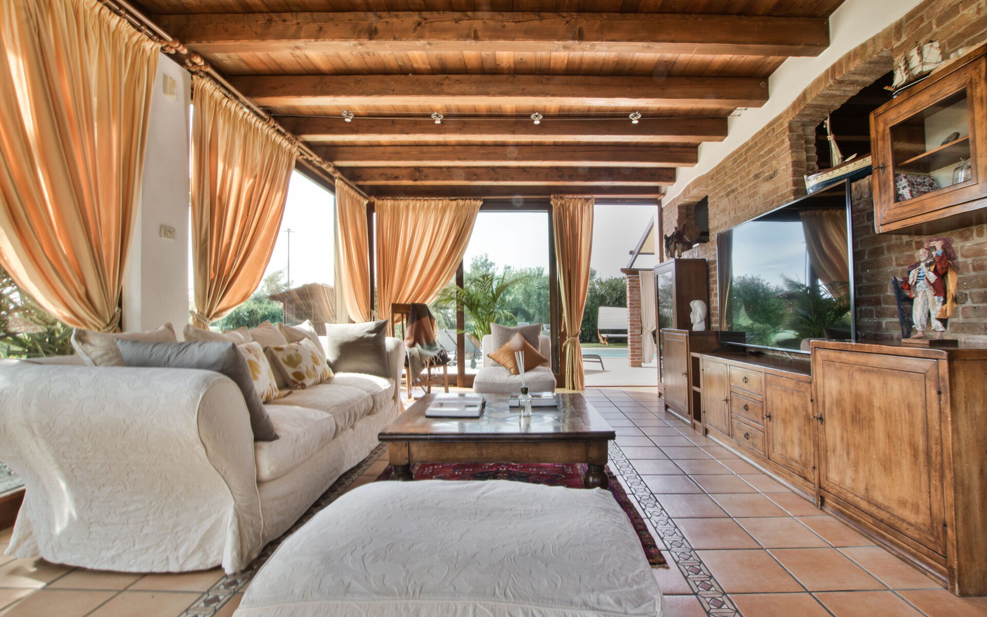 Soggiorno: divano, poltrona, internet WIFI, aria condizionata, televisione, uscita sul giardino.