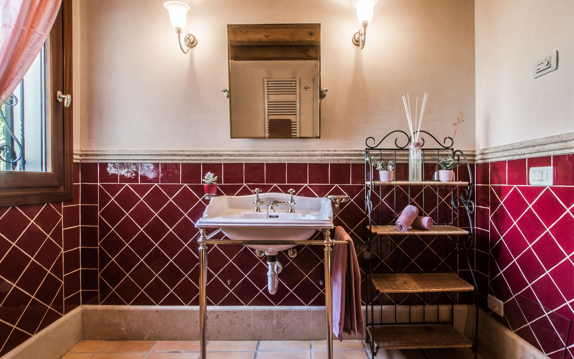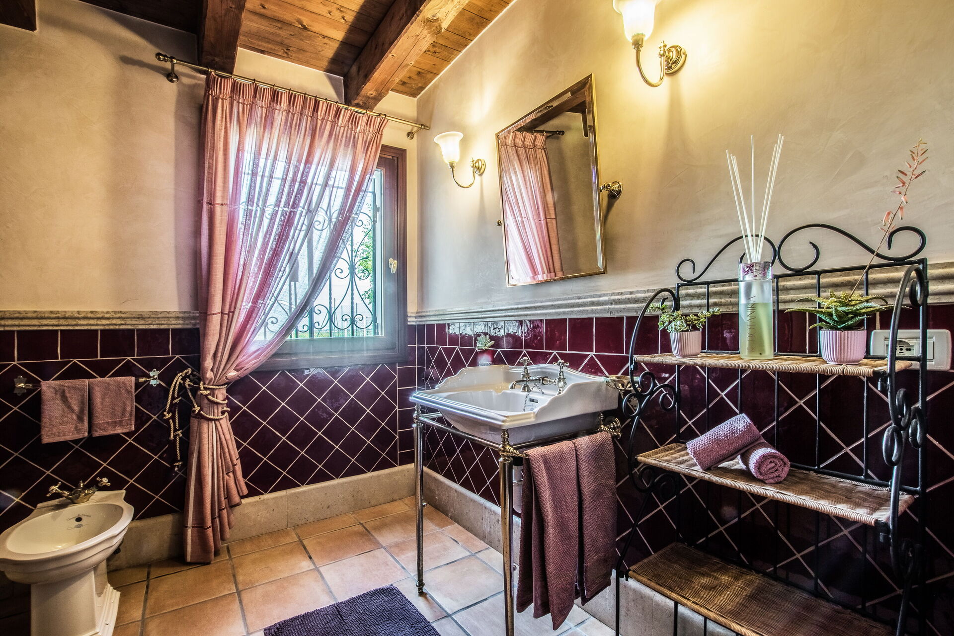 Camera da letto con bagno: letto matrimoniale, internet WIFI, aria condizionata, vasca da bagno idromassaggio, lavandino, bidet, asciugacapelli.