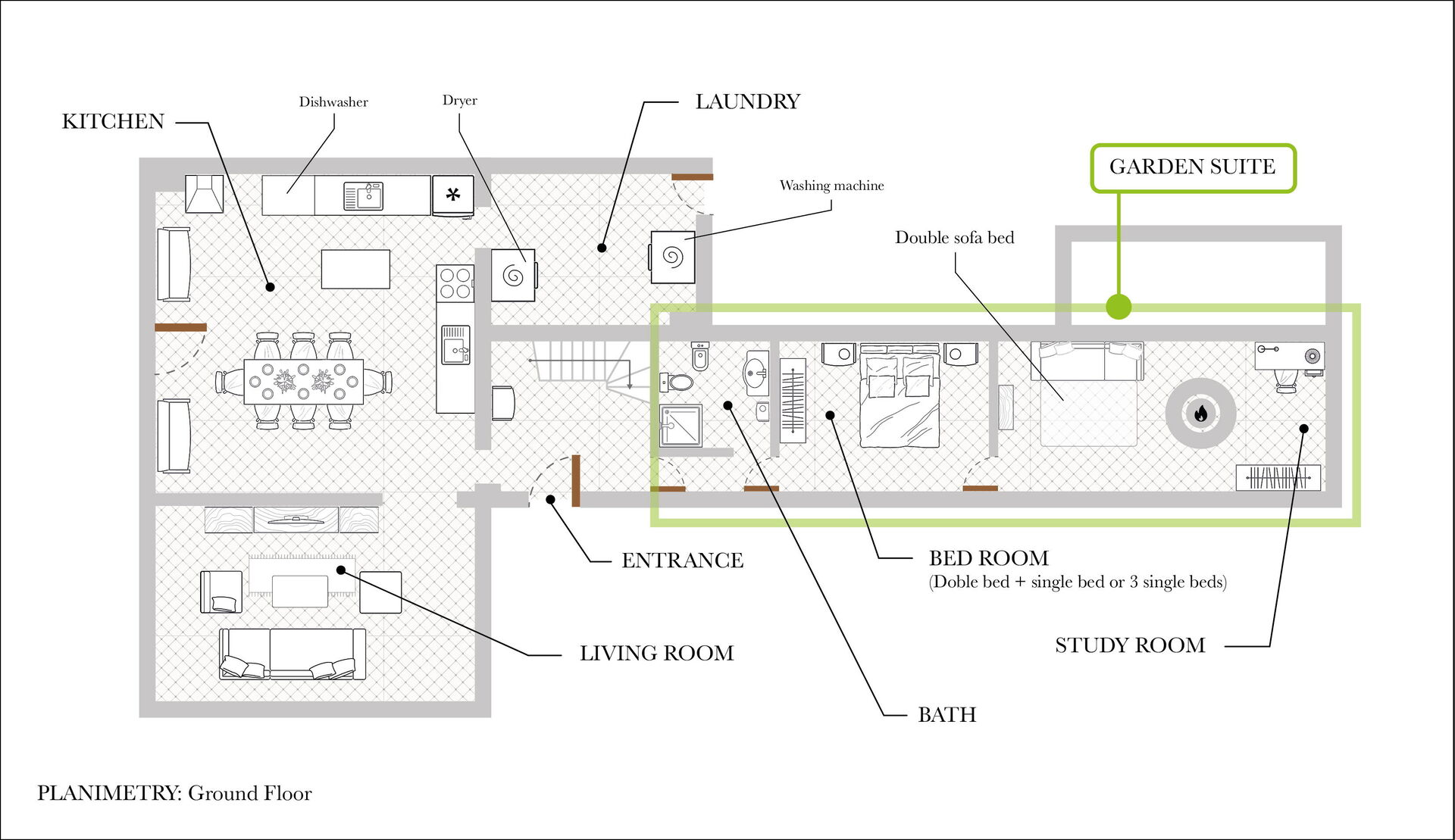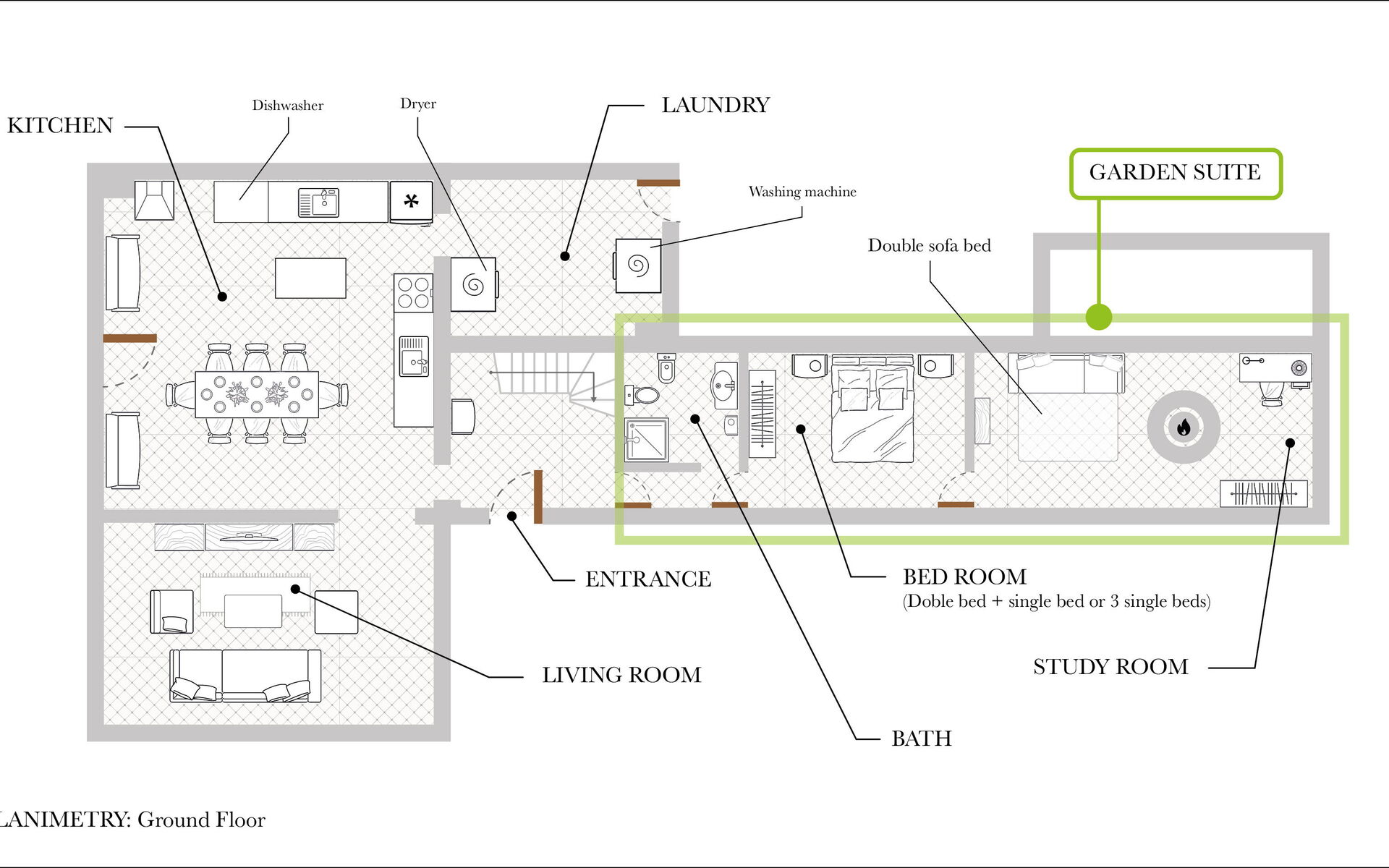Comprende: camera da letto con bagno, 3 camere da letto, bagno.