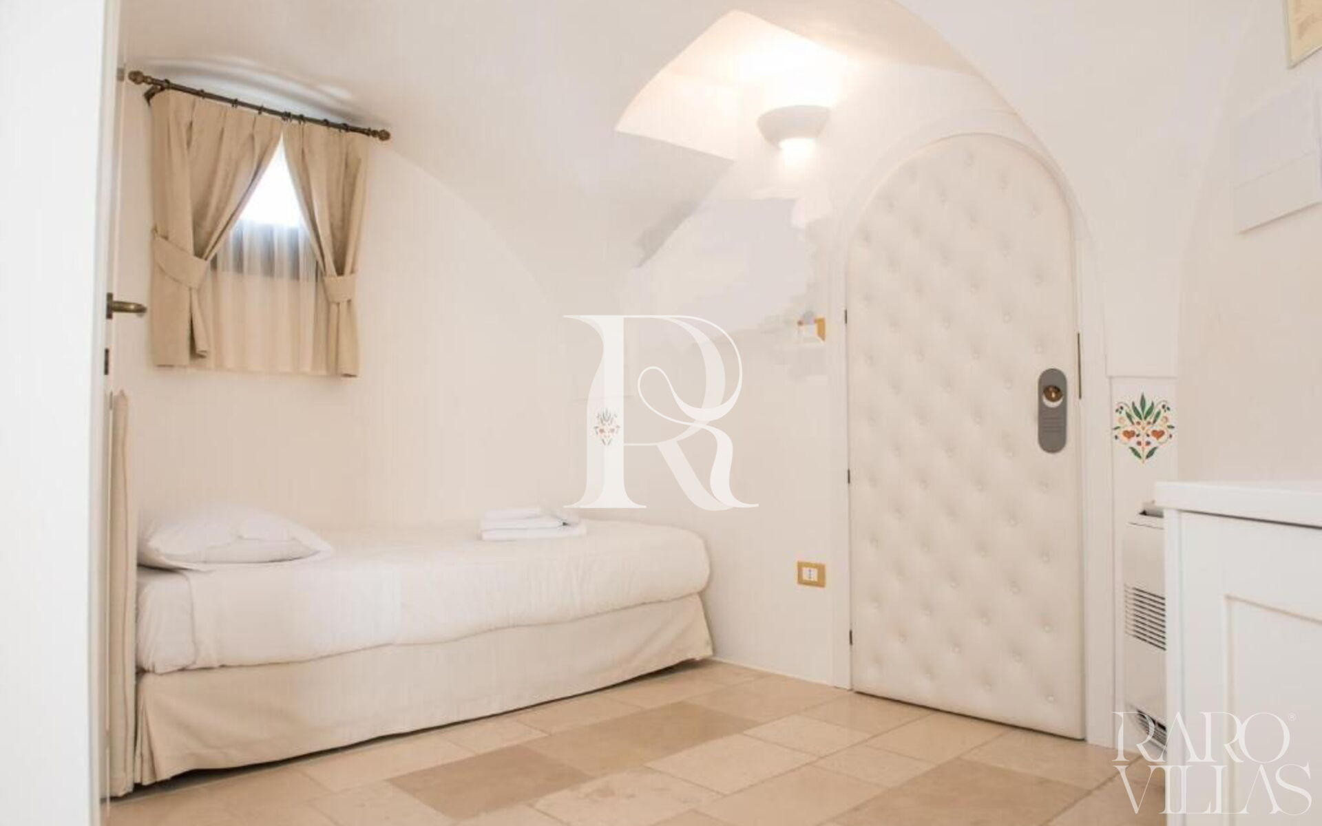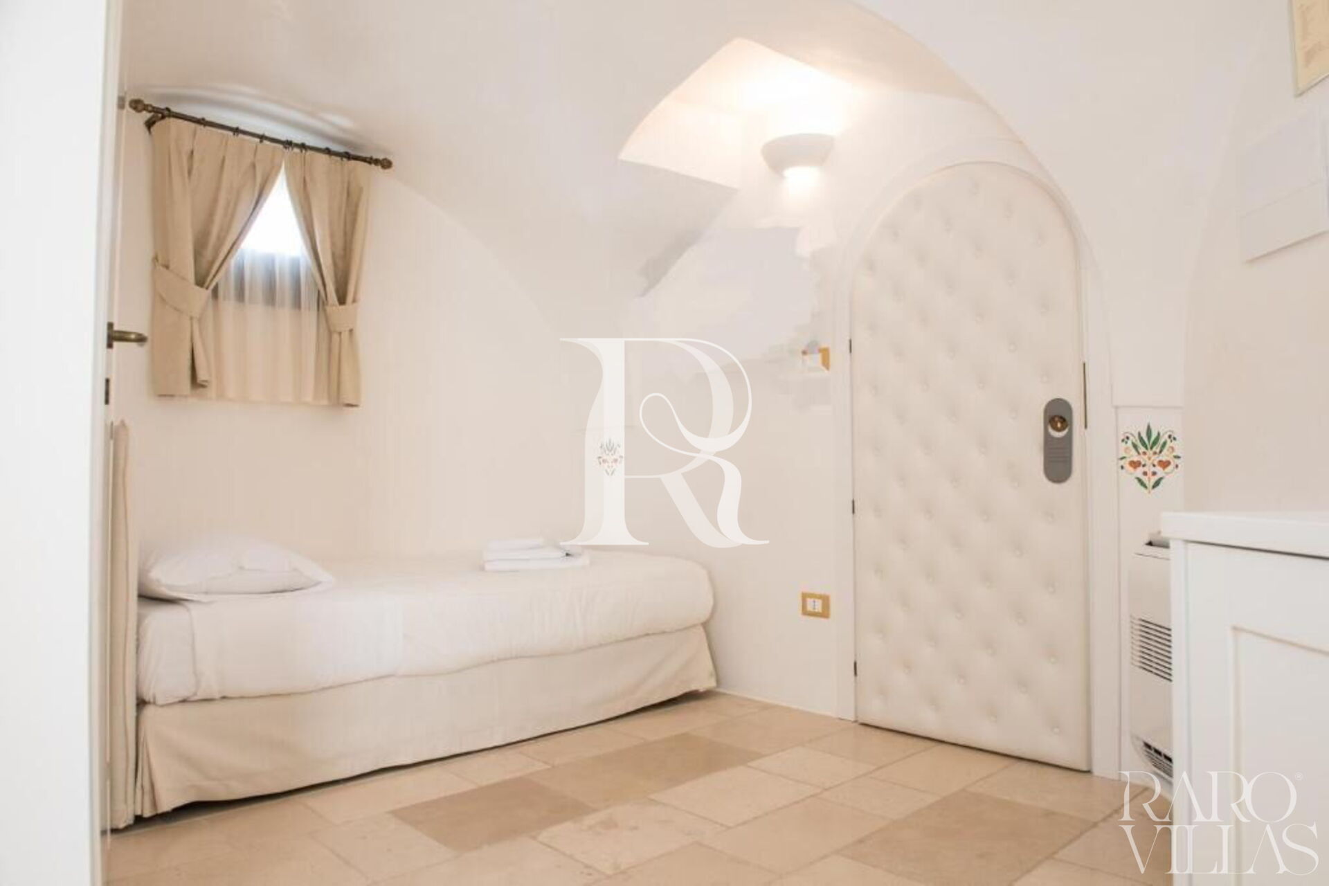 The 4 bedroom with bathroom (12sqm) is an elegant single bedroom with bathroom, exit to the terrace and stone vaults inside the Palazzo Dimora dell'Osanna.
