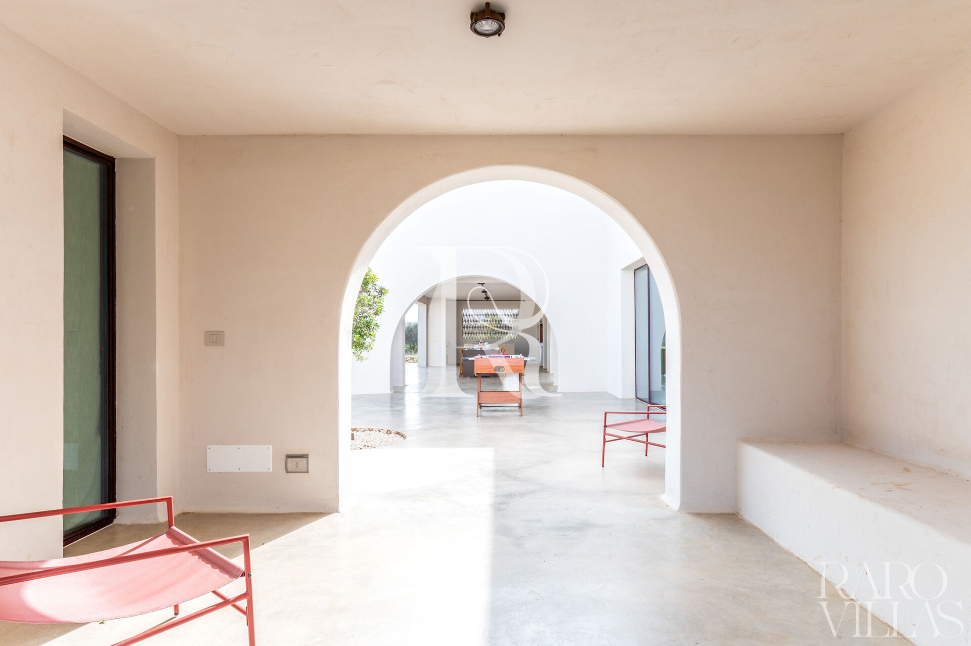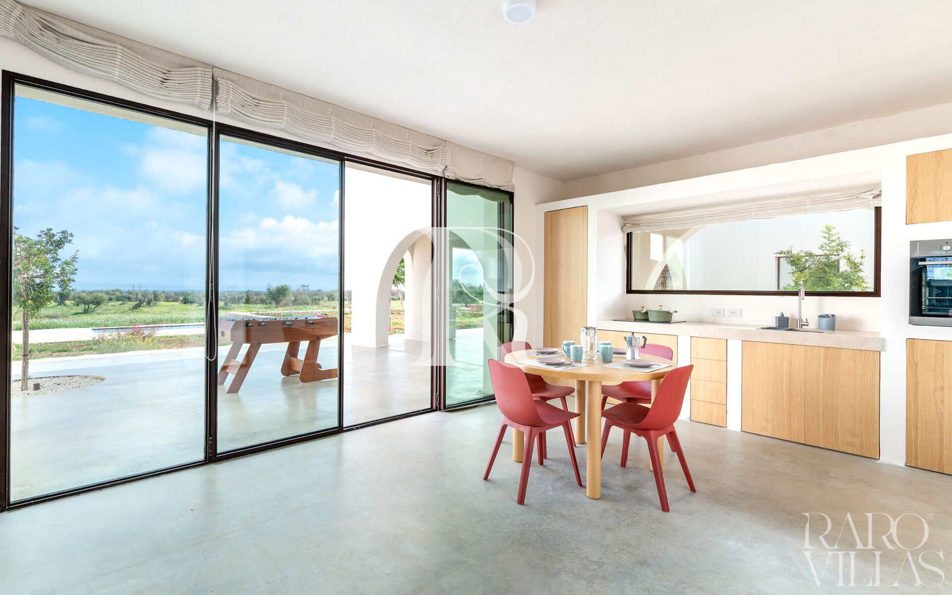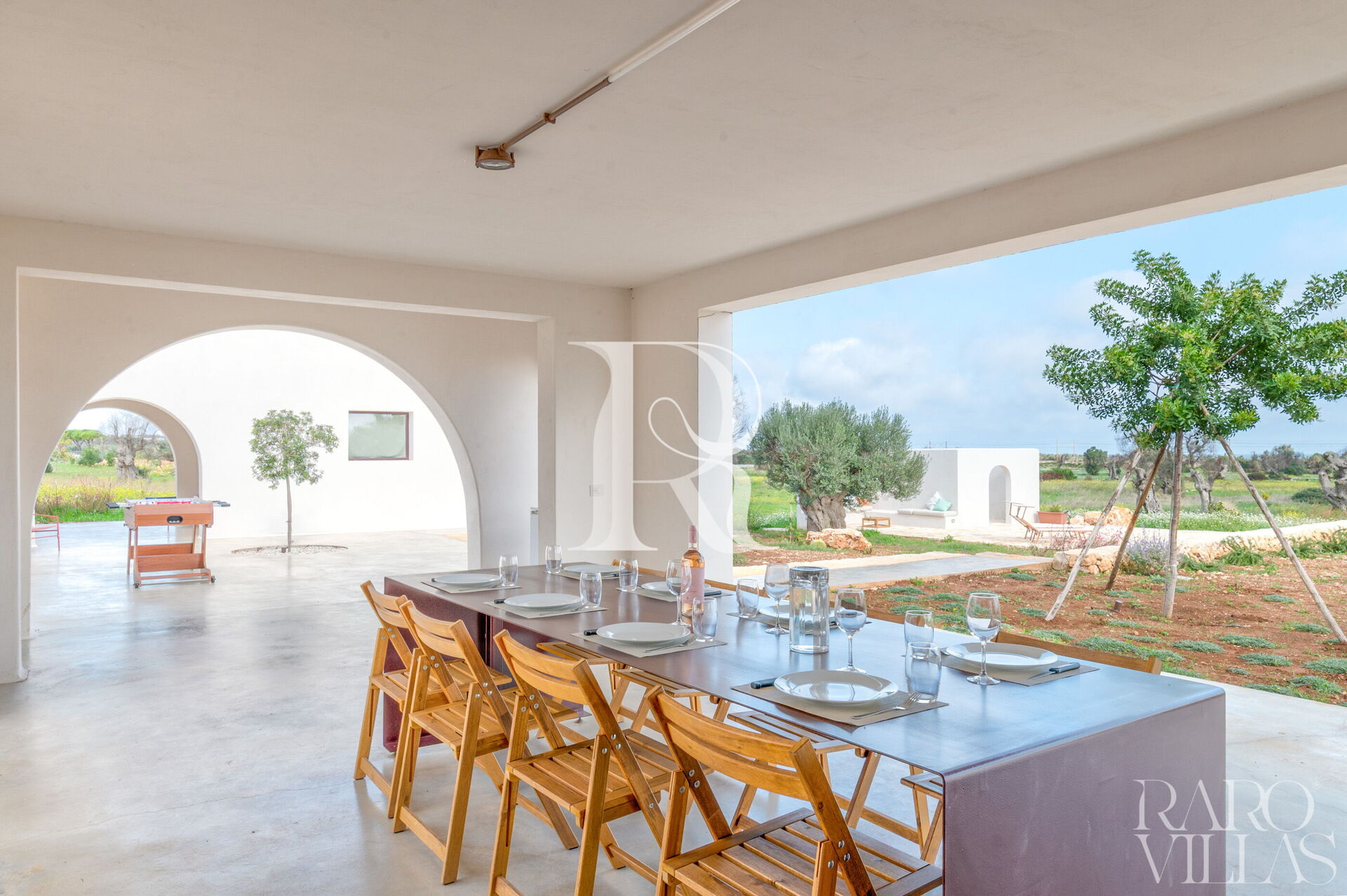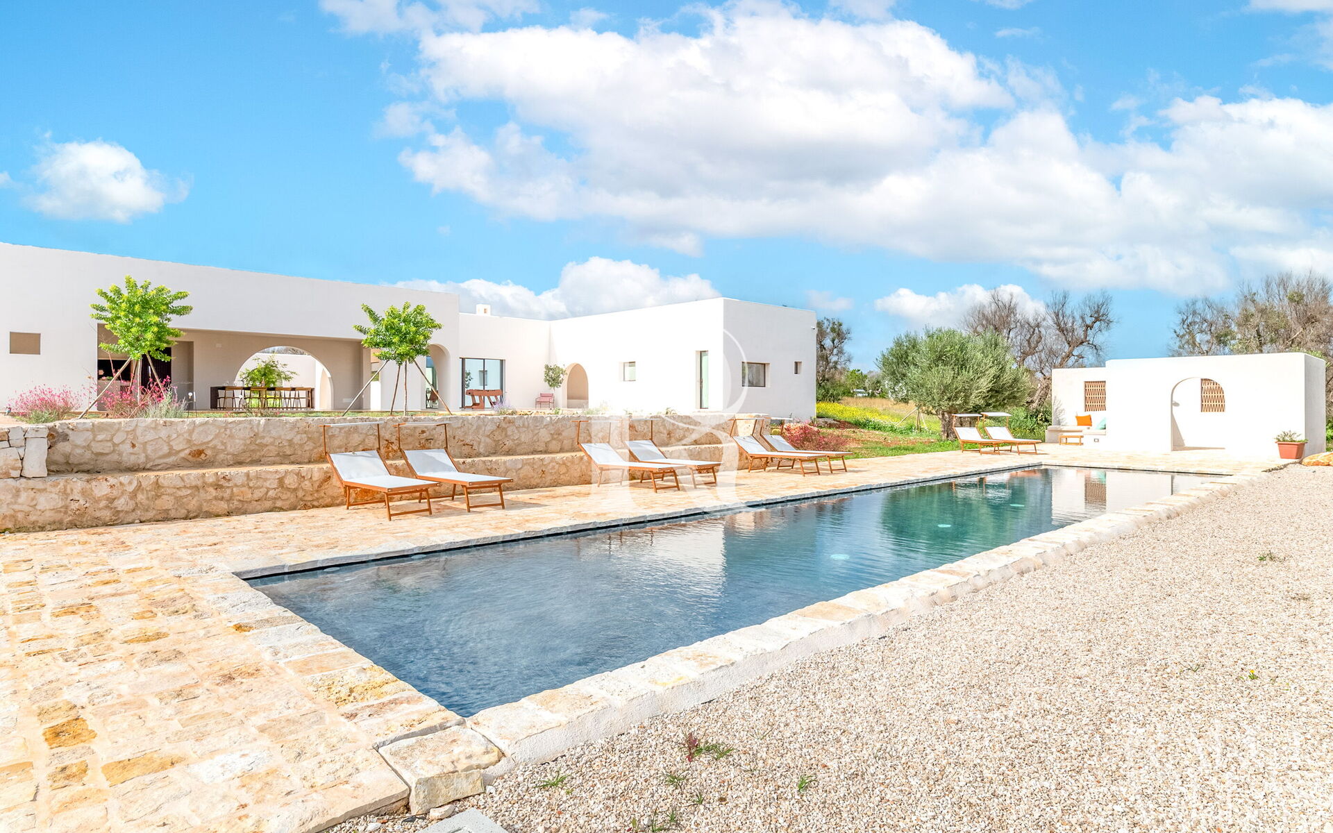 If you dream of an Apulian getaway where contemporary design meets the authentic soul of Salento, Terracorte Villa is your exclusive choice. Located in Serranova (Carovigno), just 3 km from the pristine beaches of the Torre Guaceto Nature Reserve, this villa is a tribute to Apulian tradition reimagined with a minimalist touch. Nestled within an expansive private estate, the property unfolds around a central courtyard, ensuring an experience of absolute privacy and deep connection with nature.