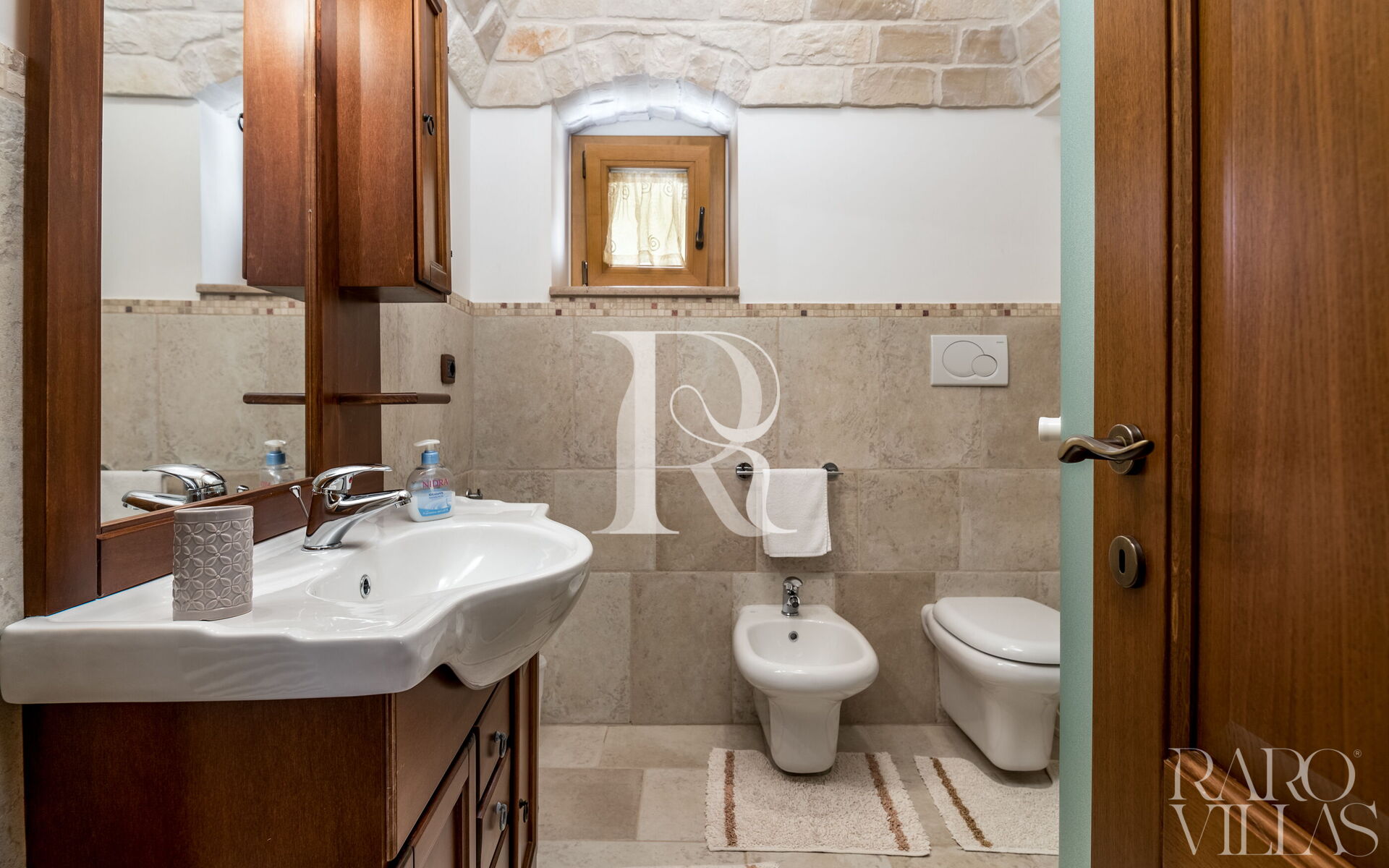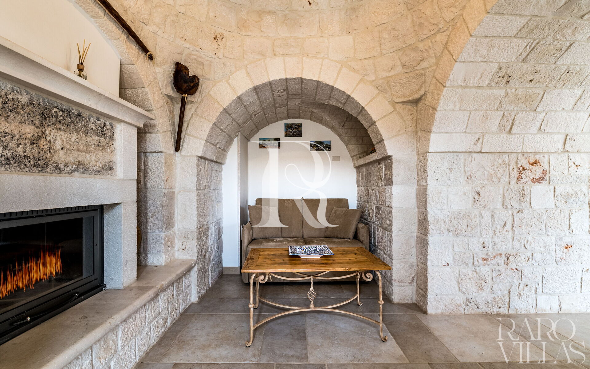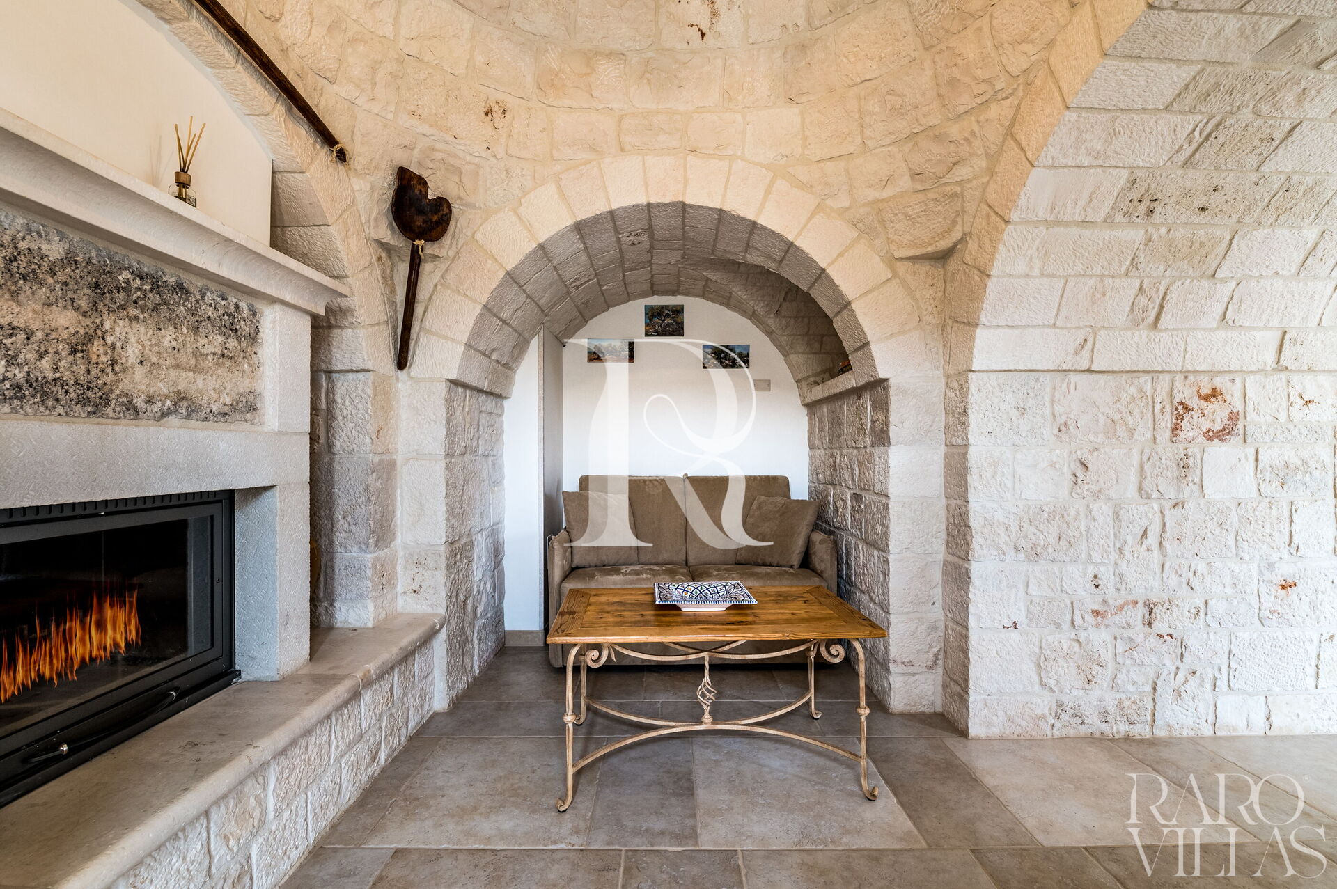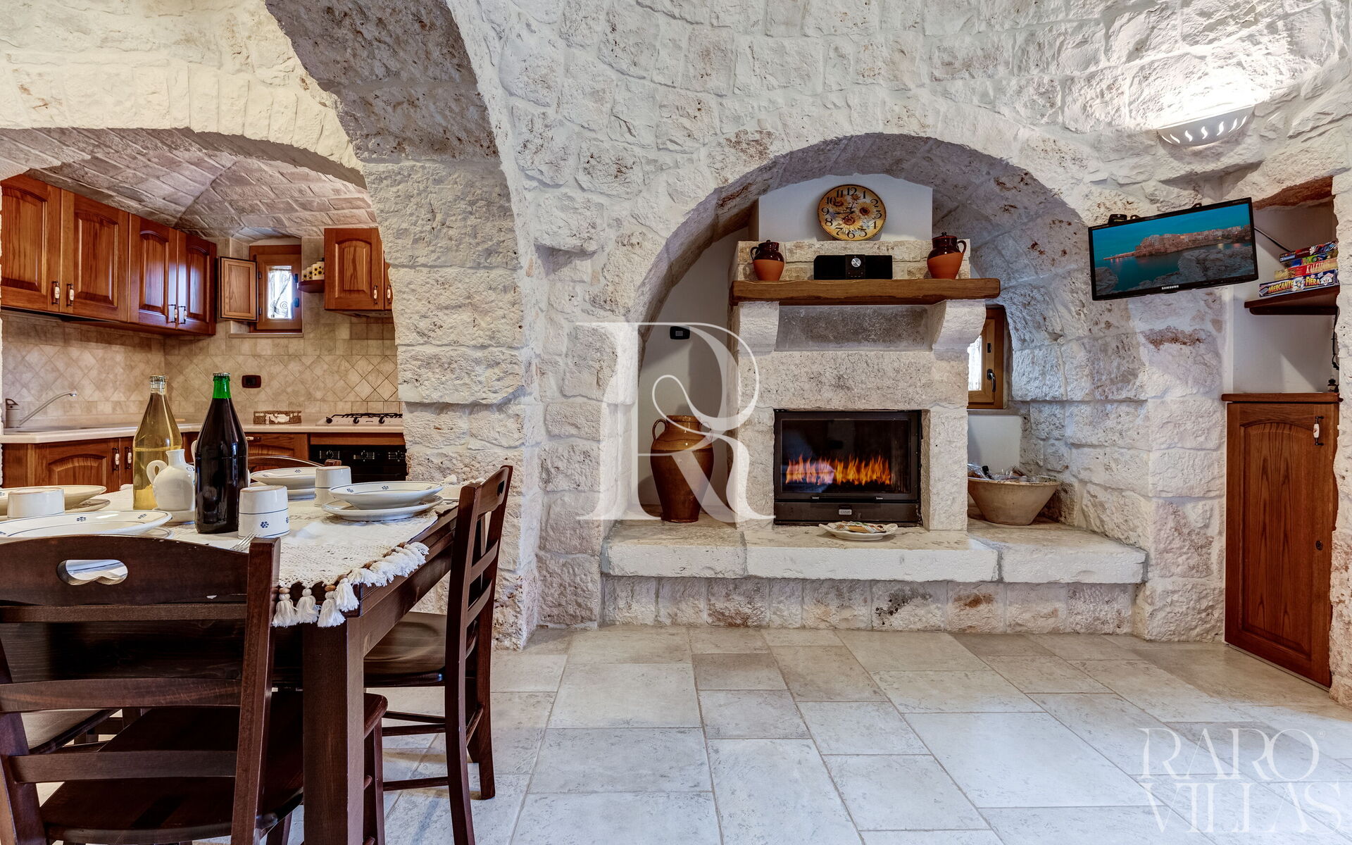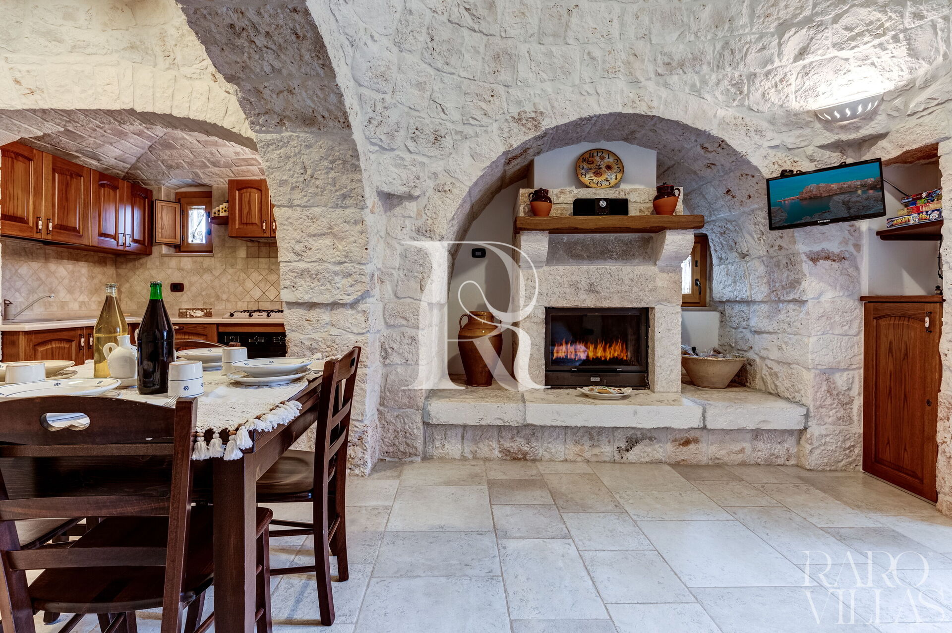 Inside this home you will find the kitchen with dining room, the trullo living room with fireplace, two bathrooms, a bedroom with a double bed and another with two single beds, which can be joined together on request. Thanks to the queen-size sofa bed it will be possible to accommodate up to six people.
