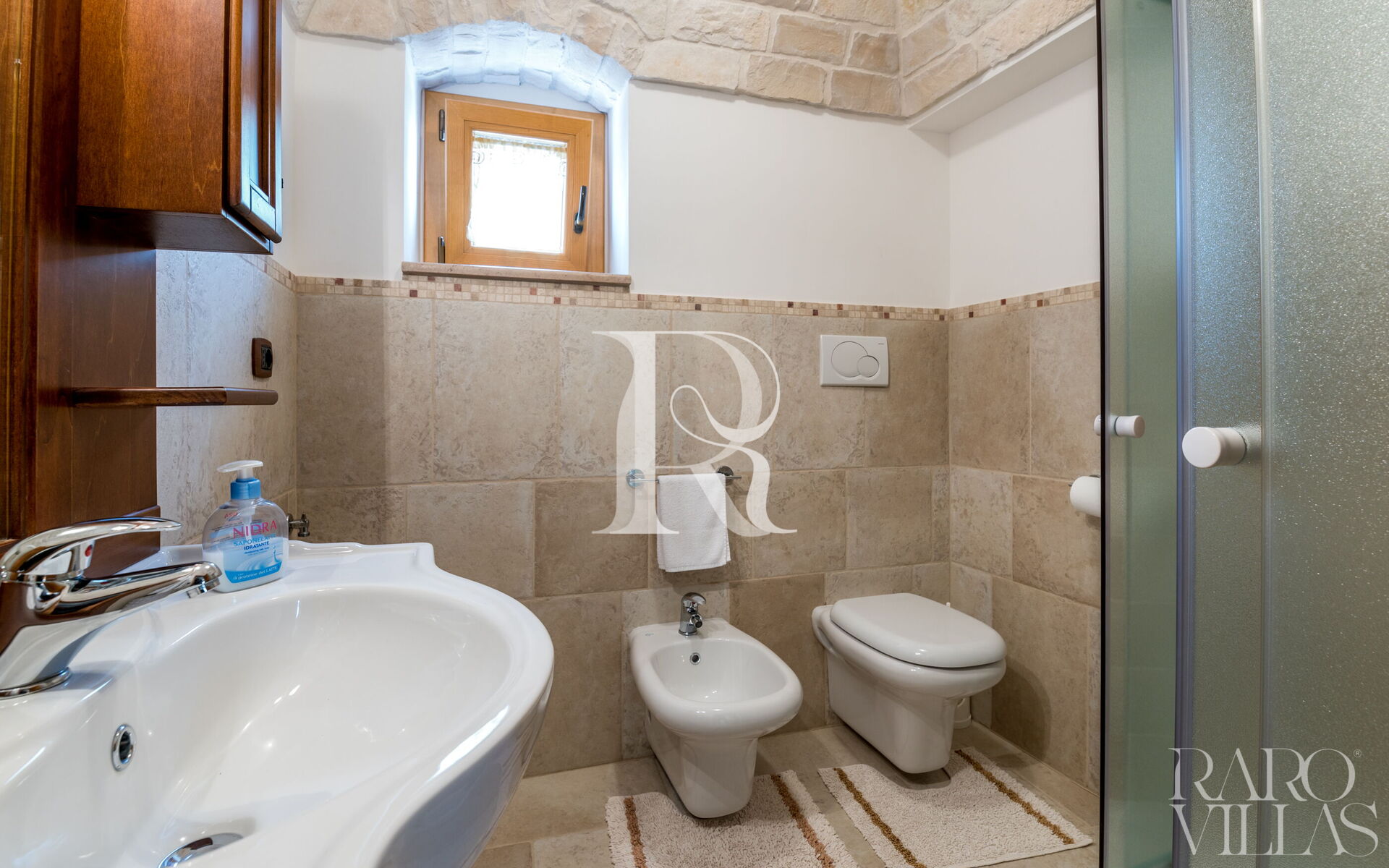 The trullo, surrounded by a large olive grove garden, is equipped with a kitchen, dining room, a bathroom and two spacious bedrooms: a double bed and two singles, which can be joined together at the guests' request. Furthermore, thanks to the single sofa bed, it will be possible to comfortably accommodate up to five people.